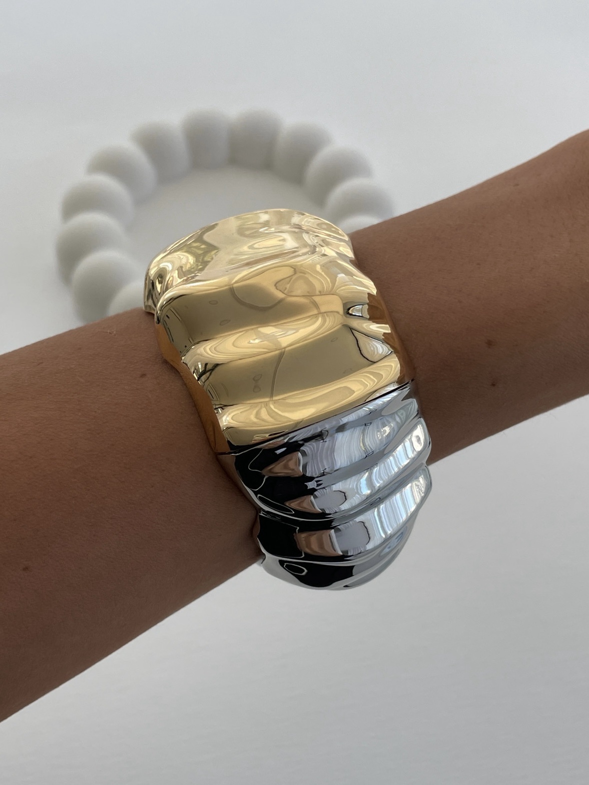 Özel Seri Gold & Gümüş Geometrik Tasarım Kelepçe Bileklik