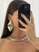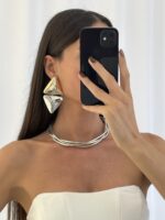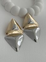 Özel Seri Gold & Gümüş İkili Üçgen Tasarım Maksi Boy Küpe