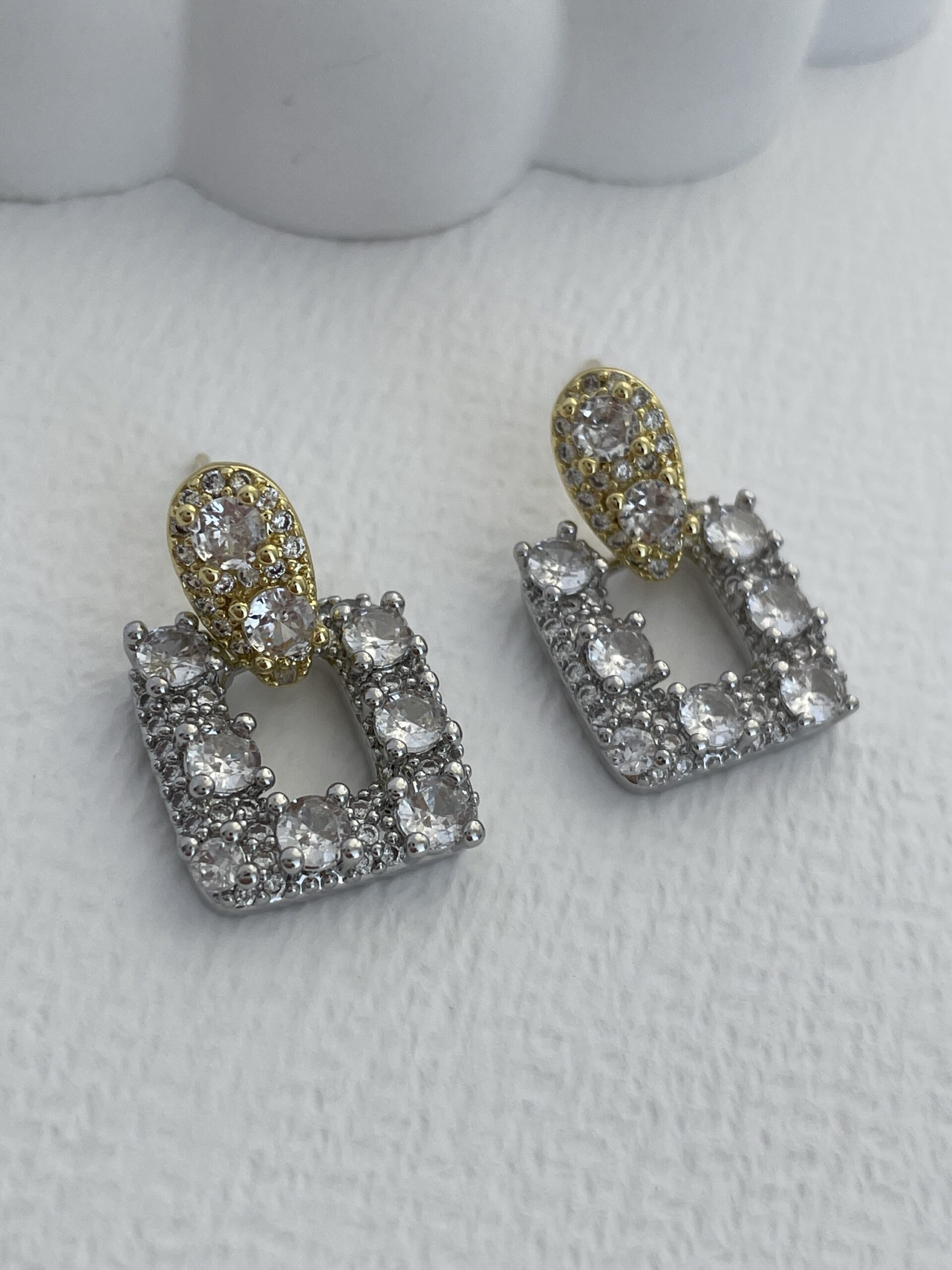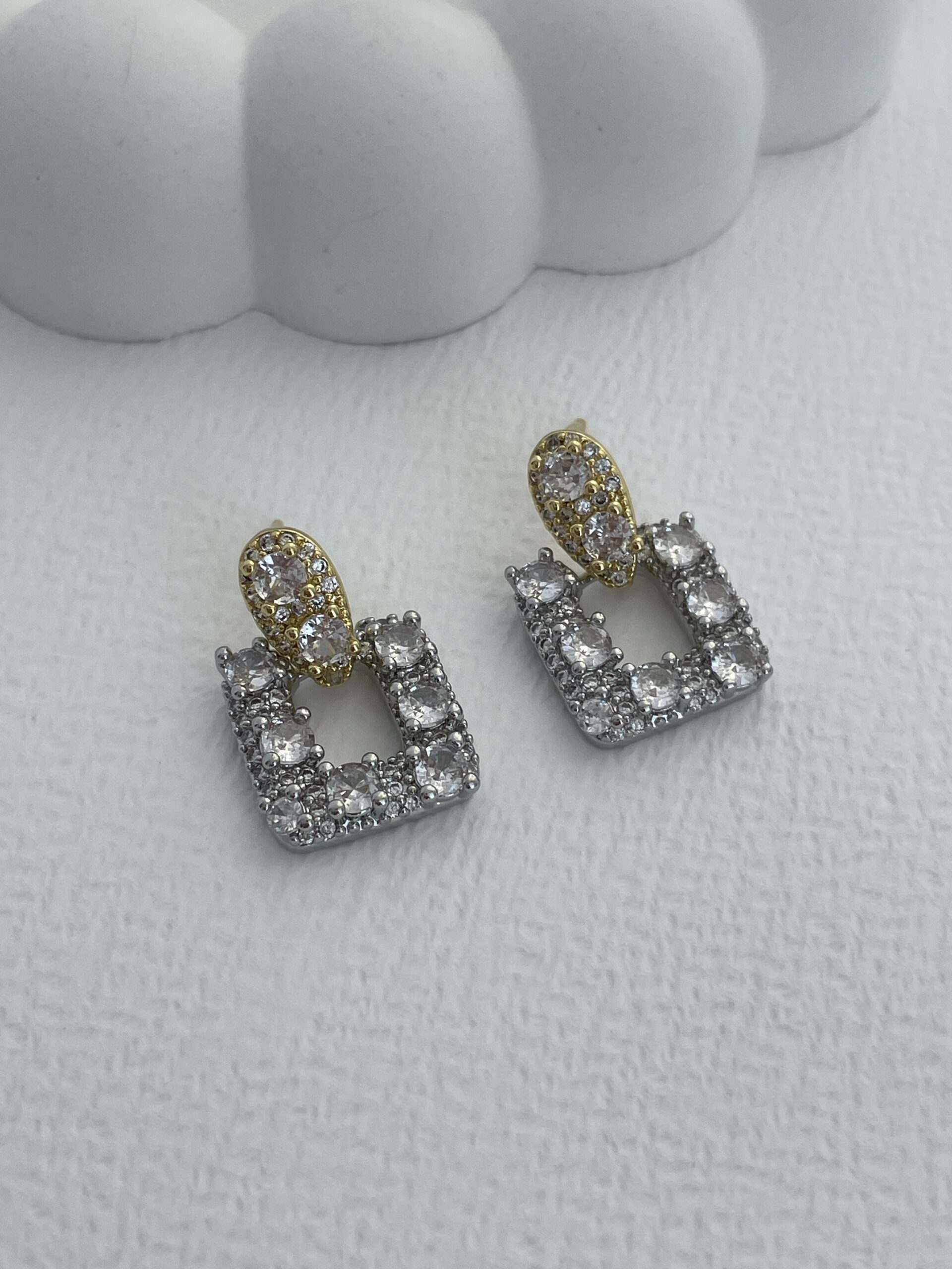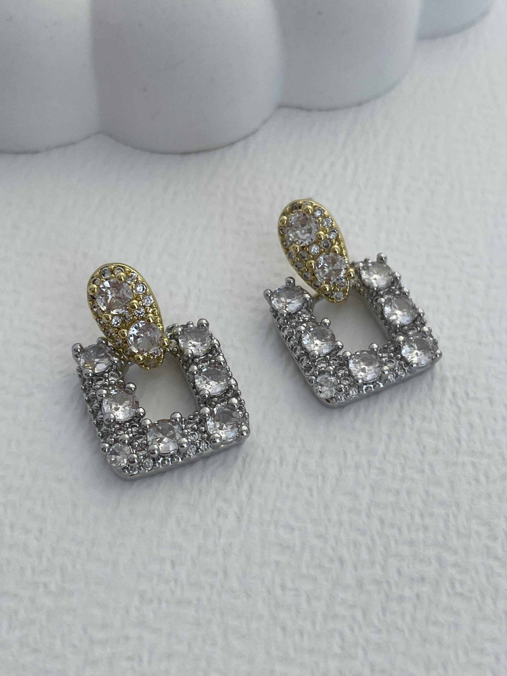Özel Seri Gold & Gümüş Kare Tasarım Taşlı Küpe