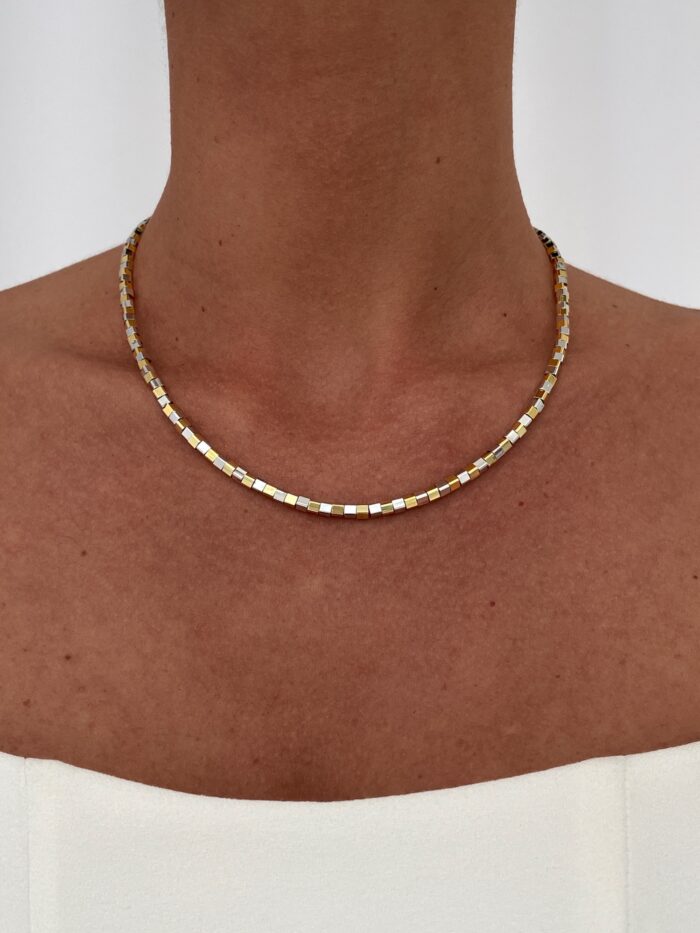 Özel Seri Gold & Gümüş Küp Tasarım Kolye