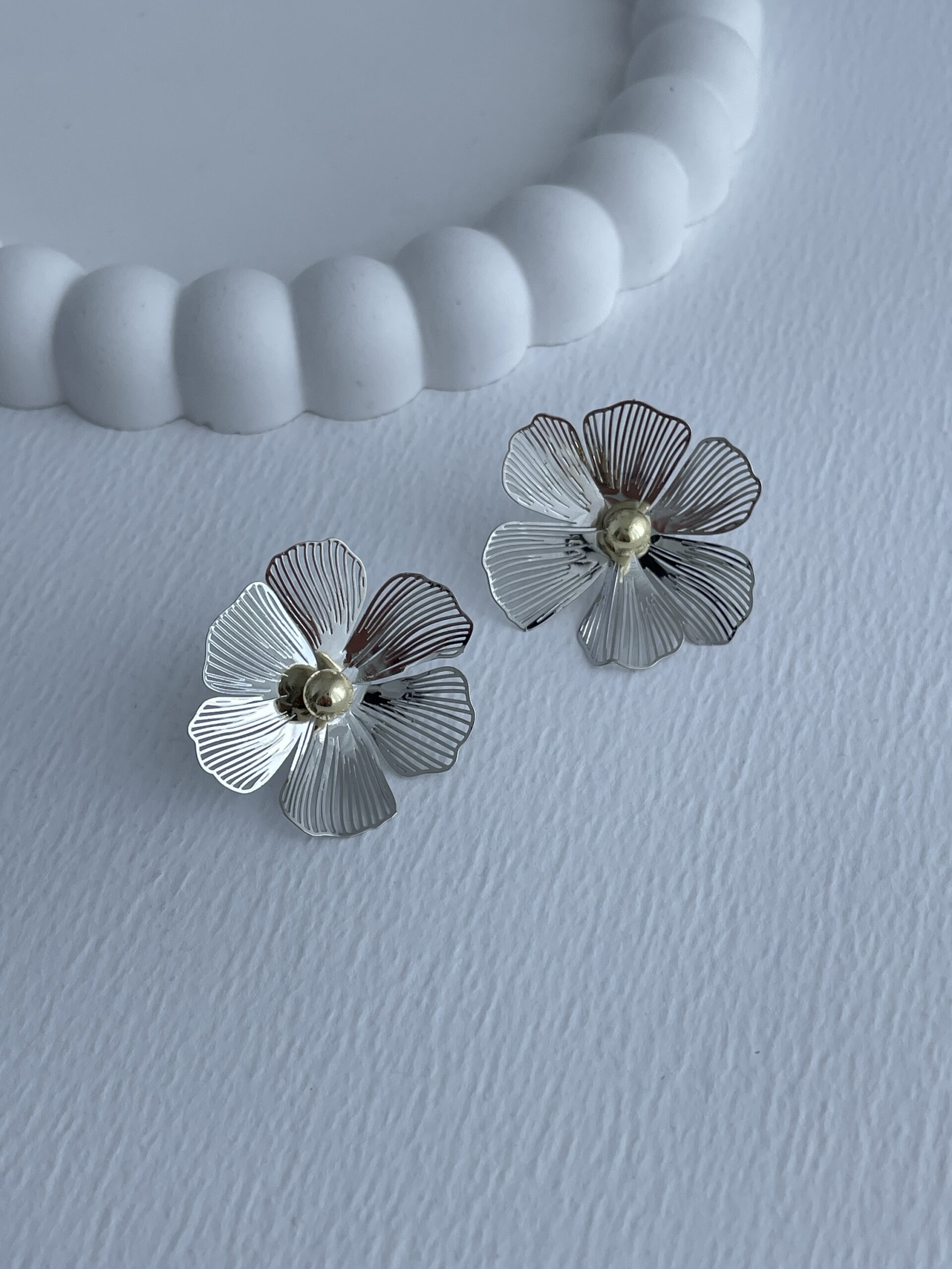 Özel Seri Gold & Gümüş Tel Çiçek Küpe 3cm
