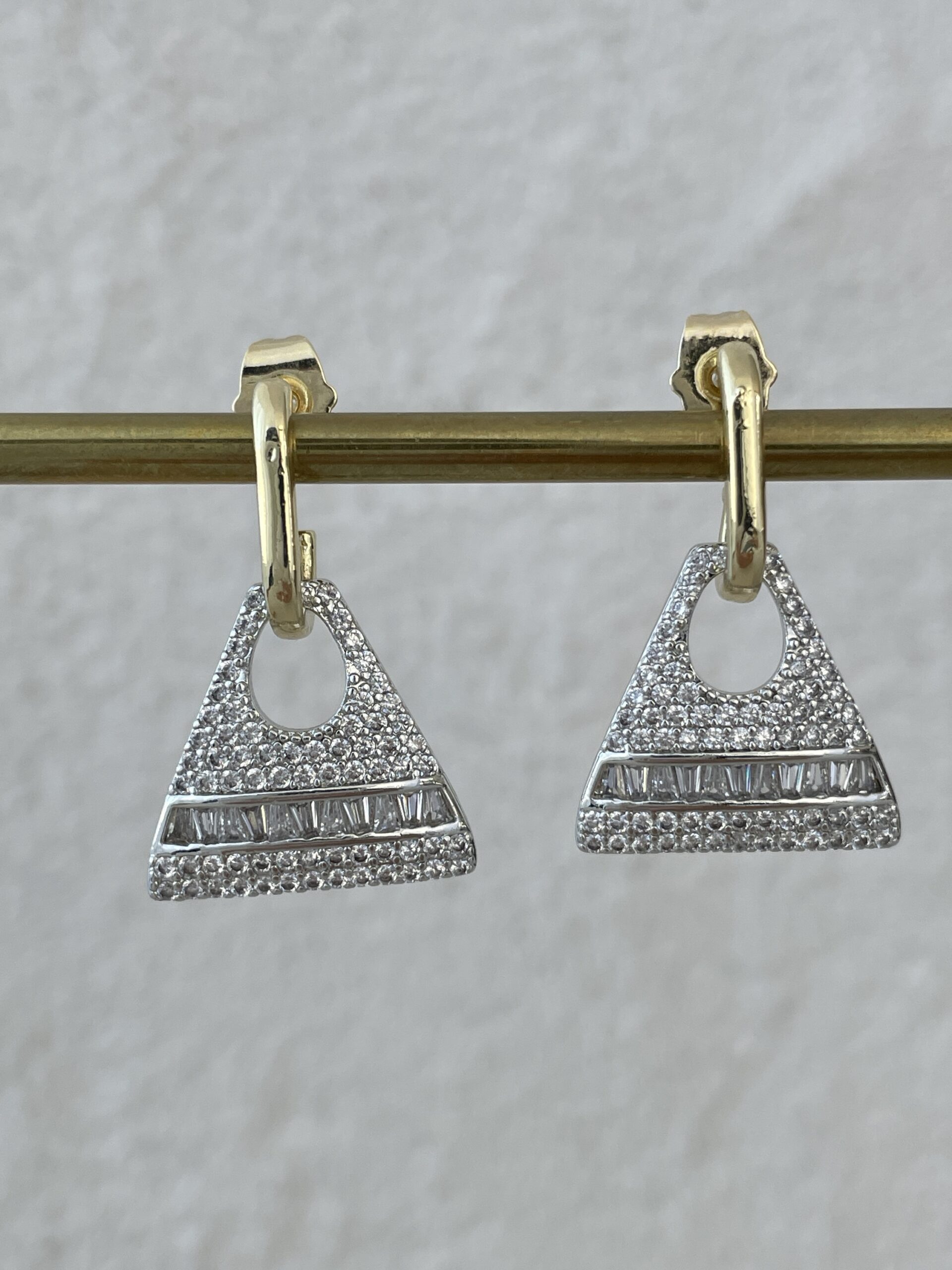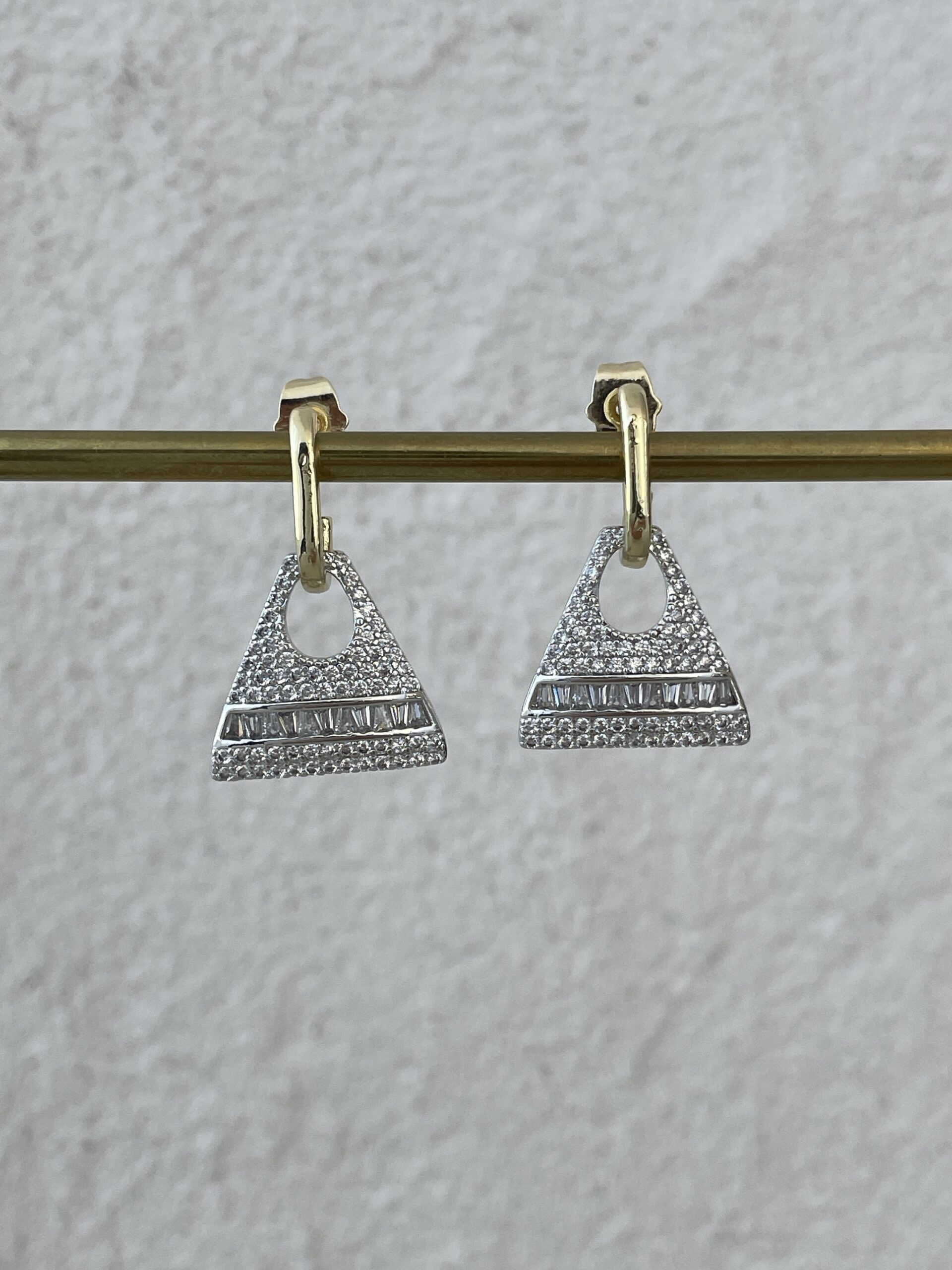 Özel Seri Gold & Gümüş Üçgen Tasarım Taşlı Küpe