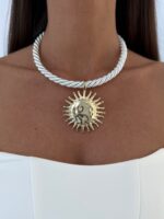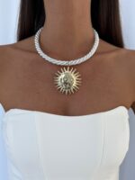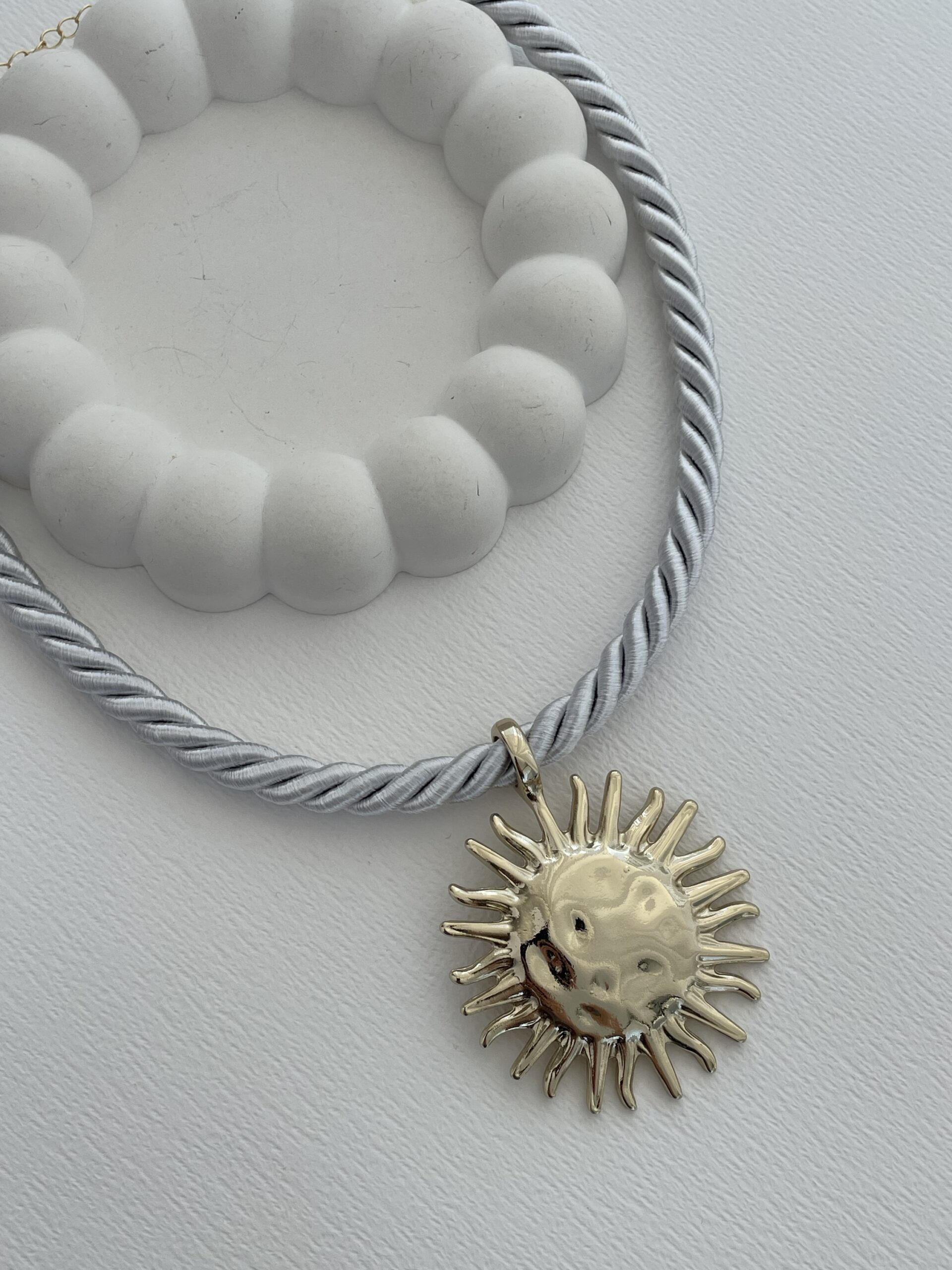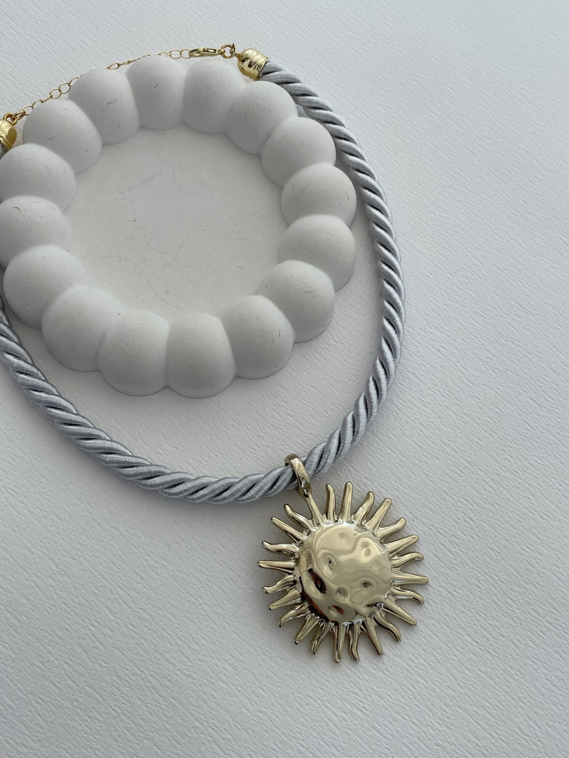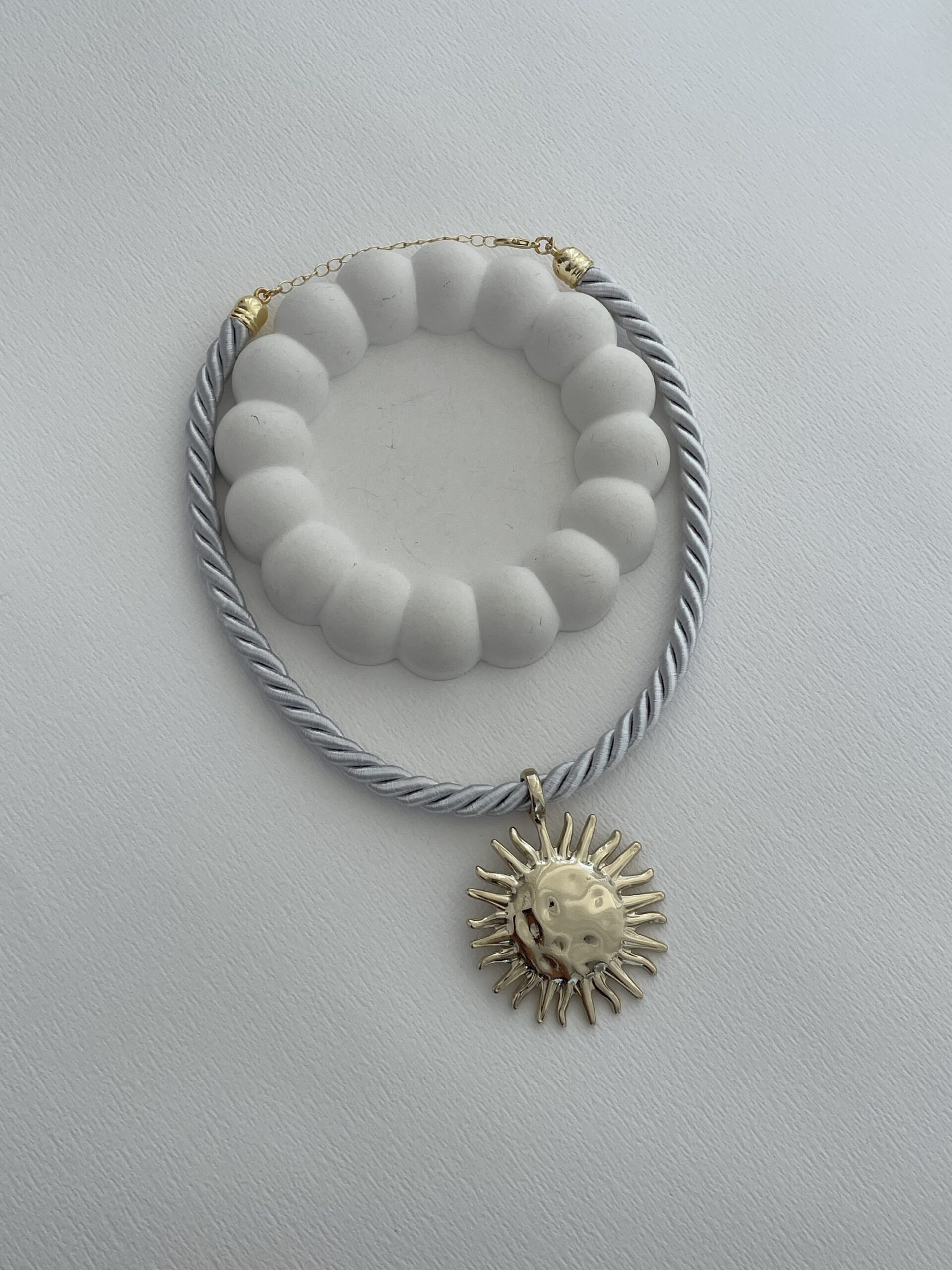 Özel Seri Gold Güneş Tasarım Kırık Beyaz Halat Kolye