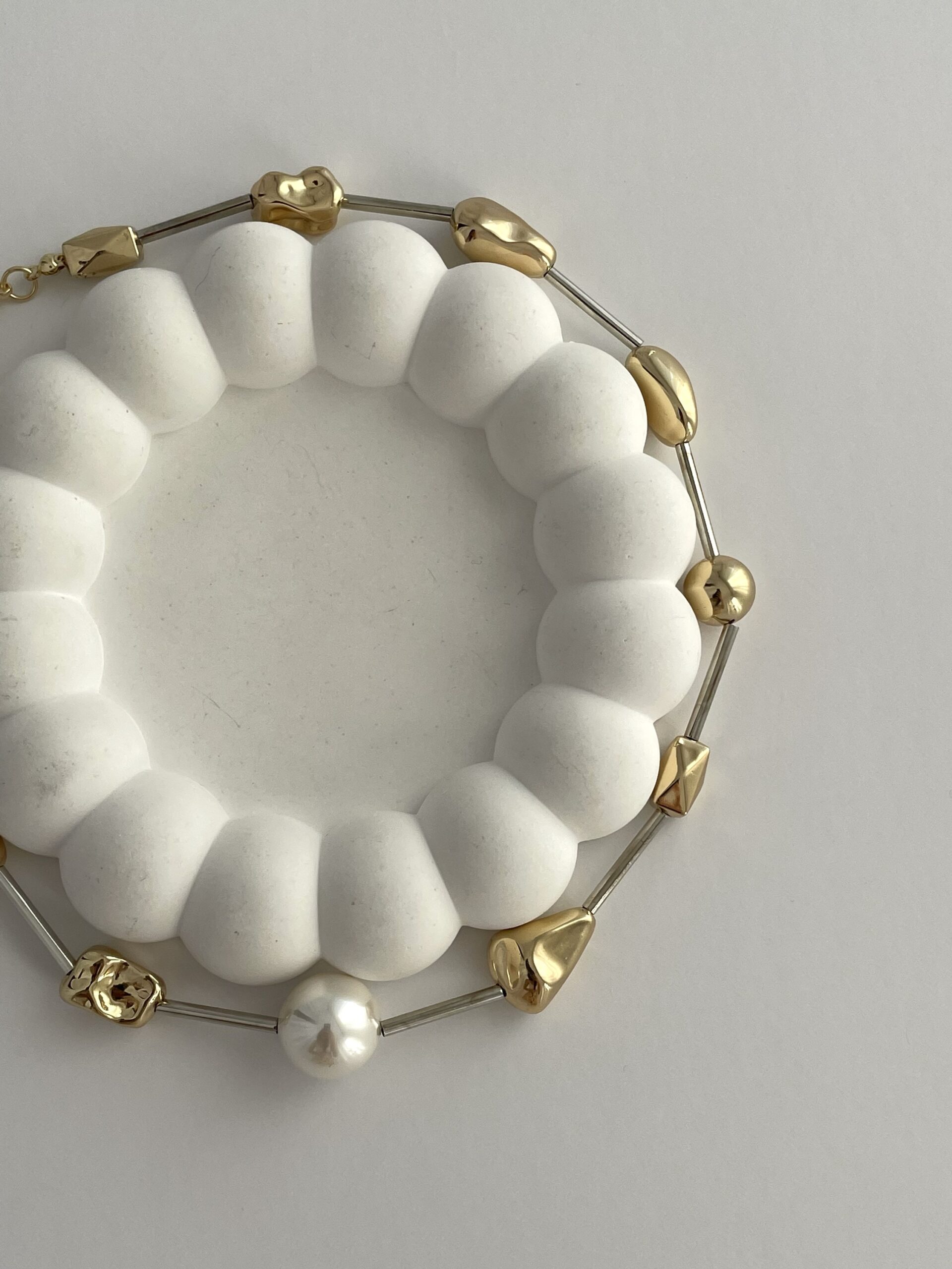Özel Seri Geometrik Desen Gold İnci Ezme Kolye