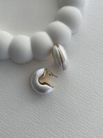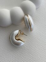 Özel Seri Gold Şerit Detay İnci Kalın Halka Küpe