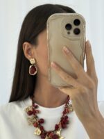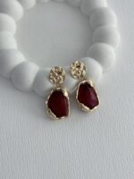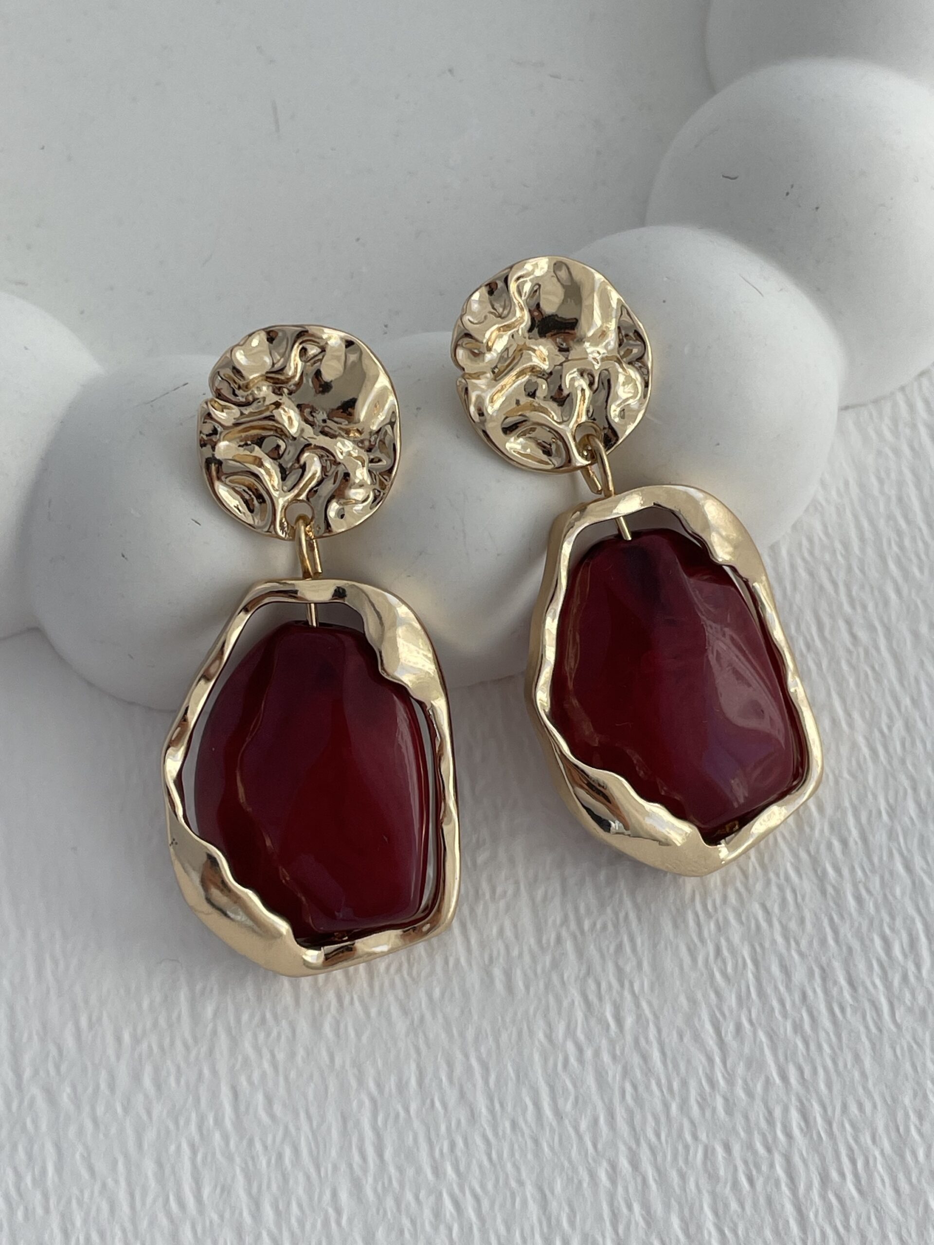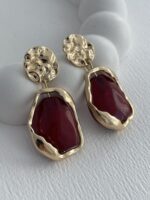 Özel Seri Gold Soyut Tasarım Bordo Küpe