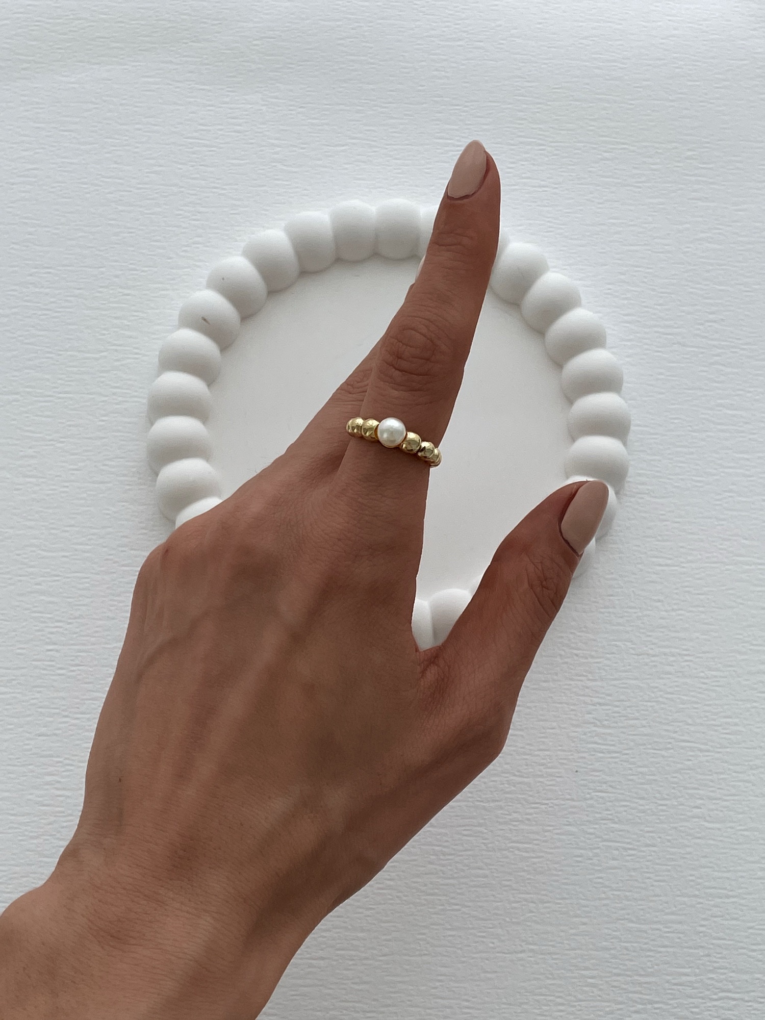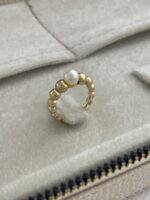 Özel Seri Ayarlanabilir Gold Tek Taş İnci Yüzük