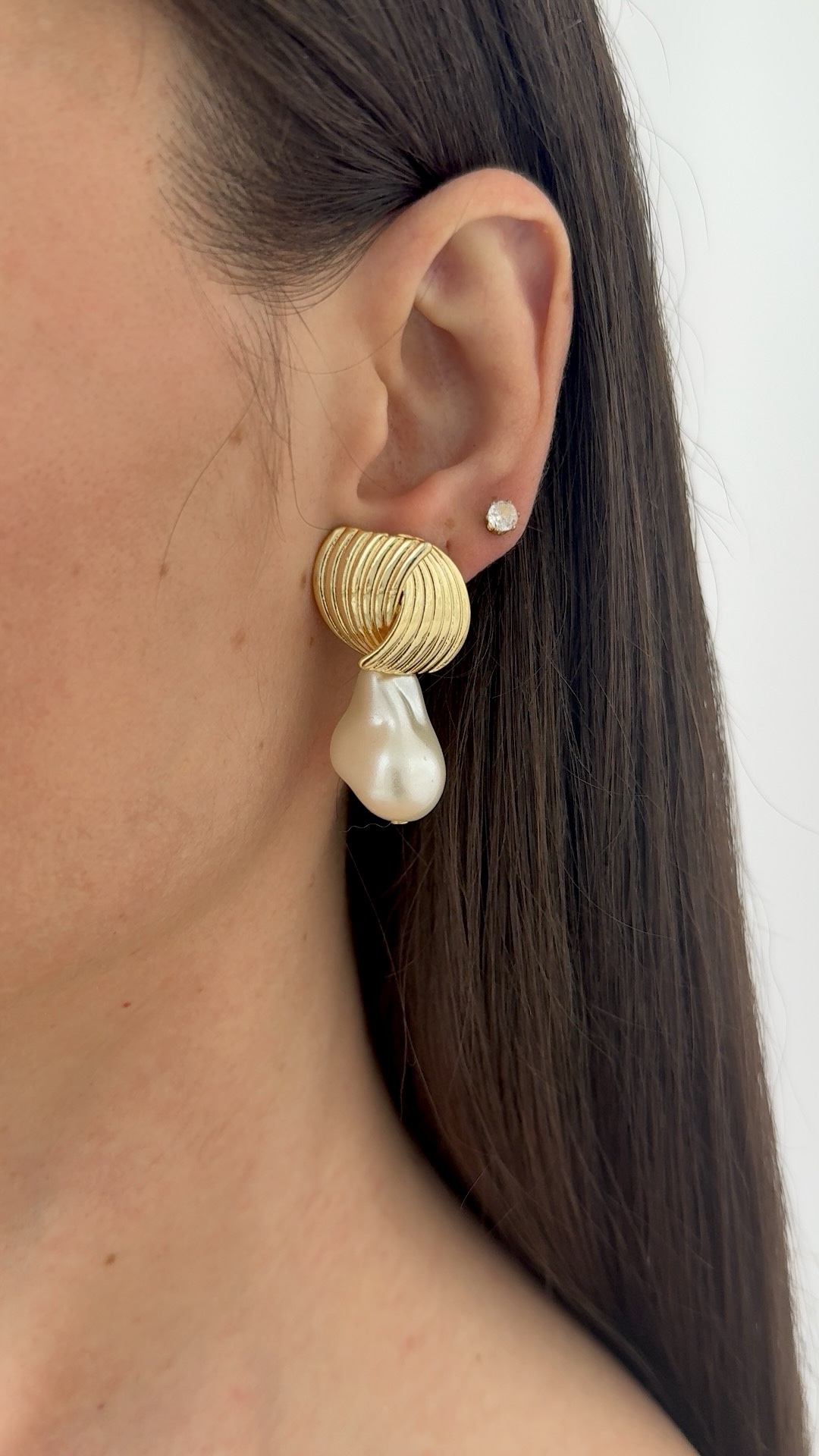 Özel Seri Gold Tırtık Detay Damla İnci Küpe