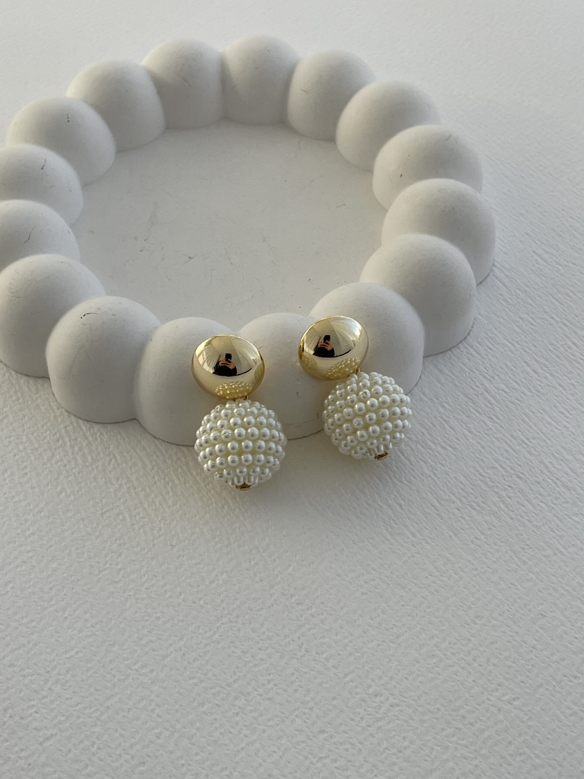 Özel Seri Gold Yuvarlak Model Böğürtlen İnci Top Küpe