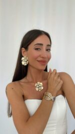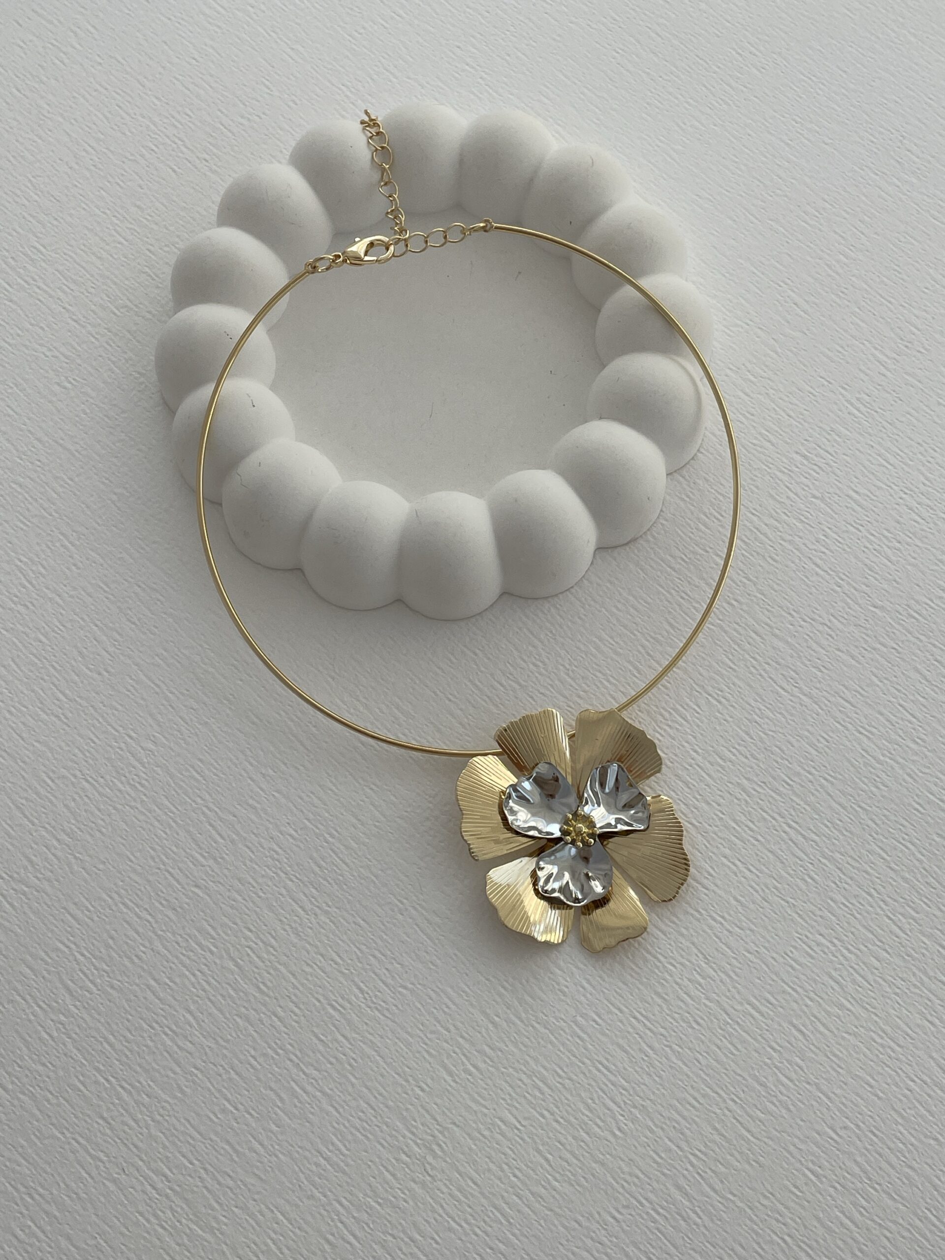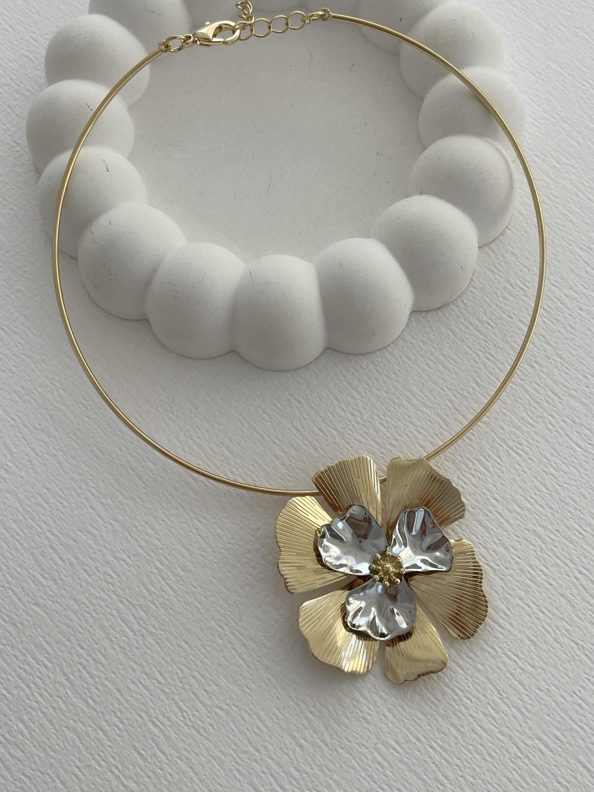 Özel Seri Gold&Gümüş Çiçek Tasarım Choker Kolye