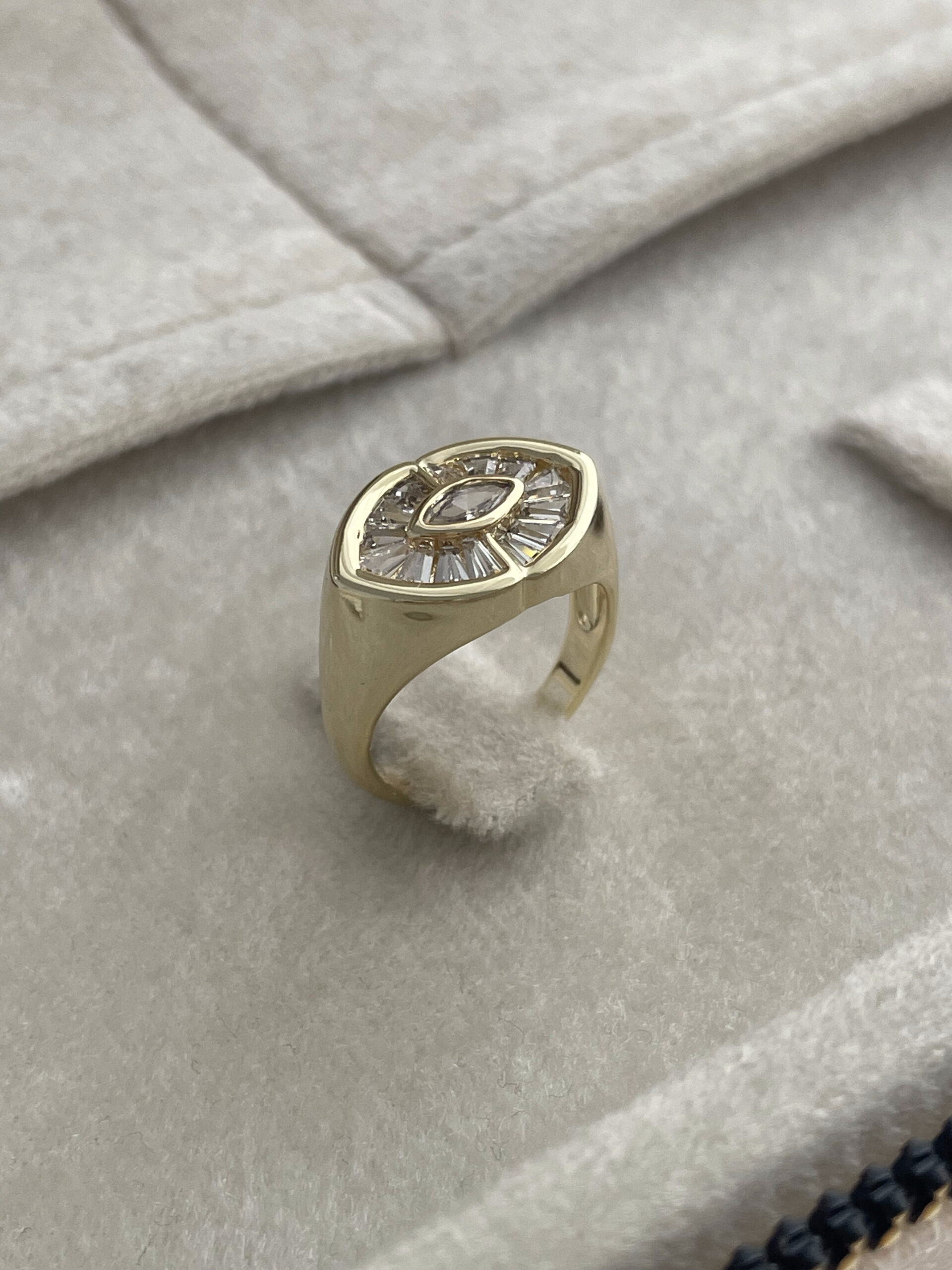 Özel Seri Göz Tasarım Baget Taşlı Ayarlanabilir Gold Yüzük