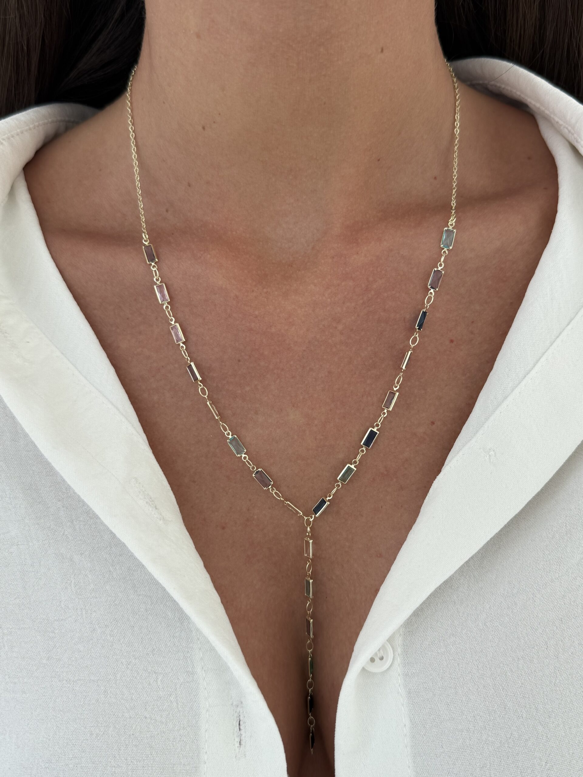 Özel Seri Mor & Mavi Baget Taş Gold Y Kolye