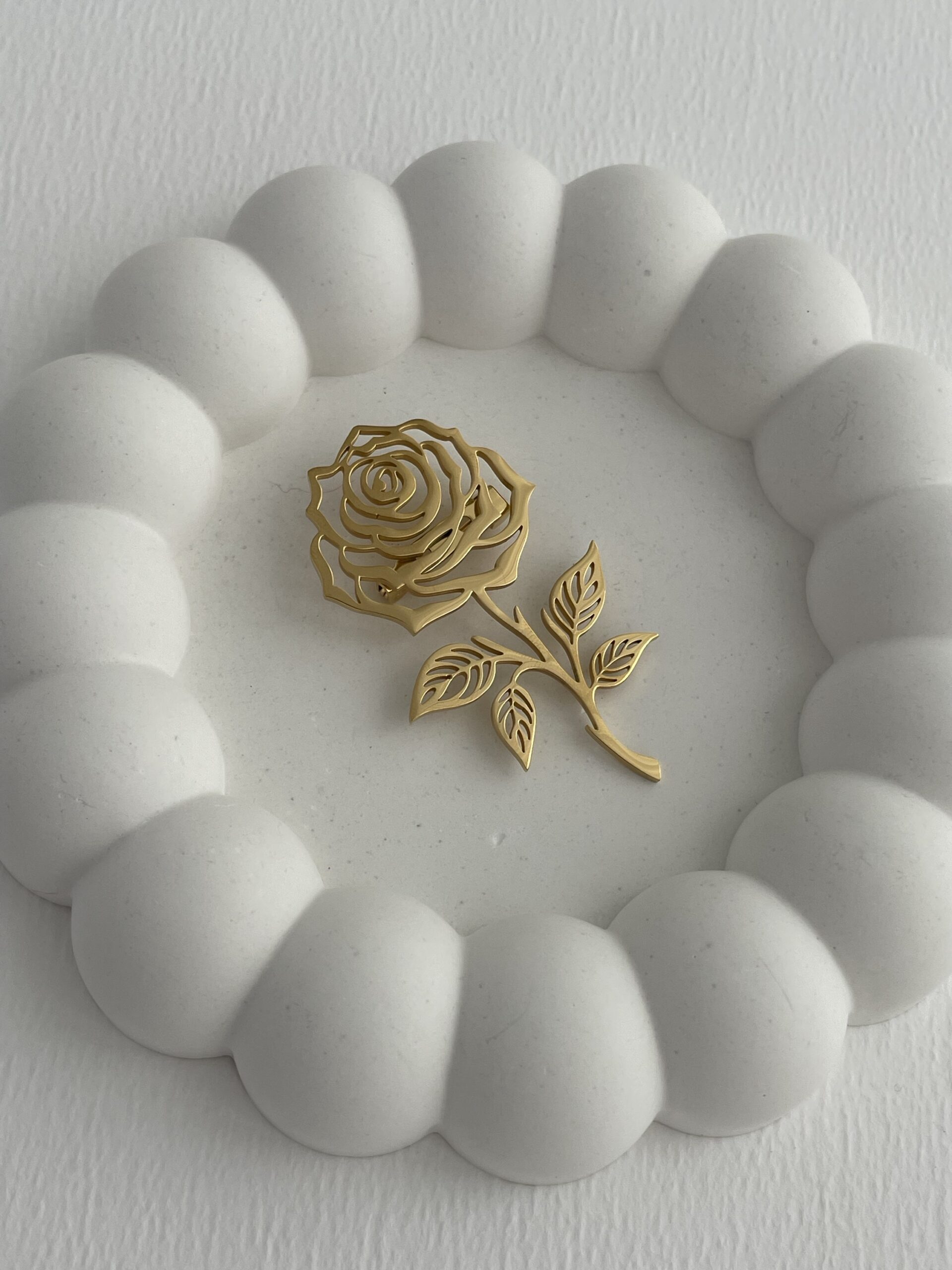 Özel Seri Gül Tasarım Gold Plaka Broş