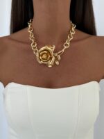 Özel Seri Gül Tasarım Kalın Figaro Zincir Gold Marka Kolye