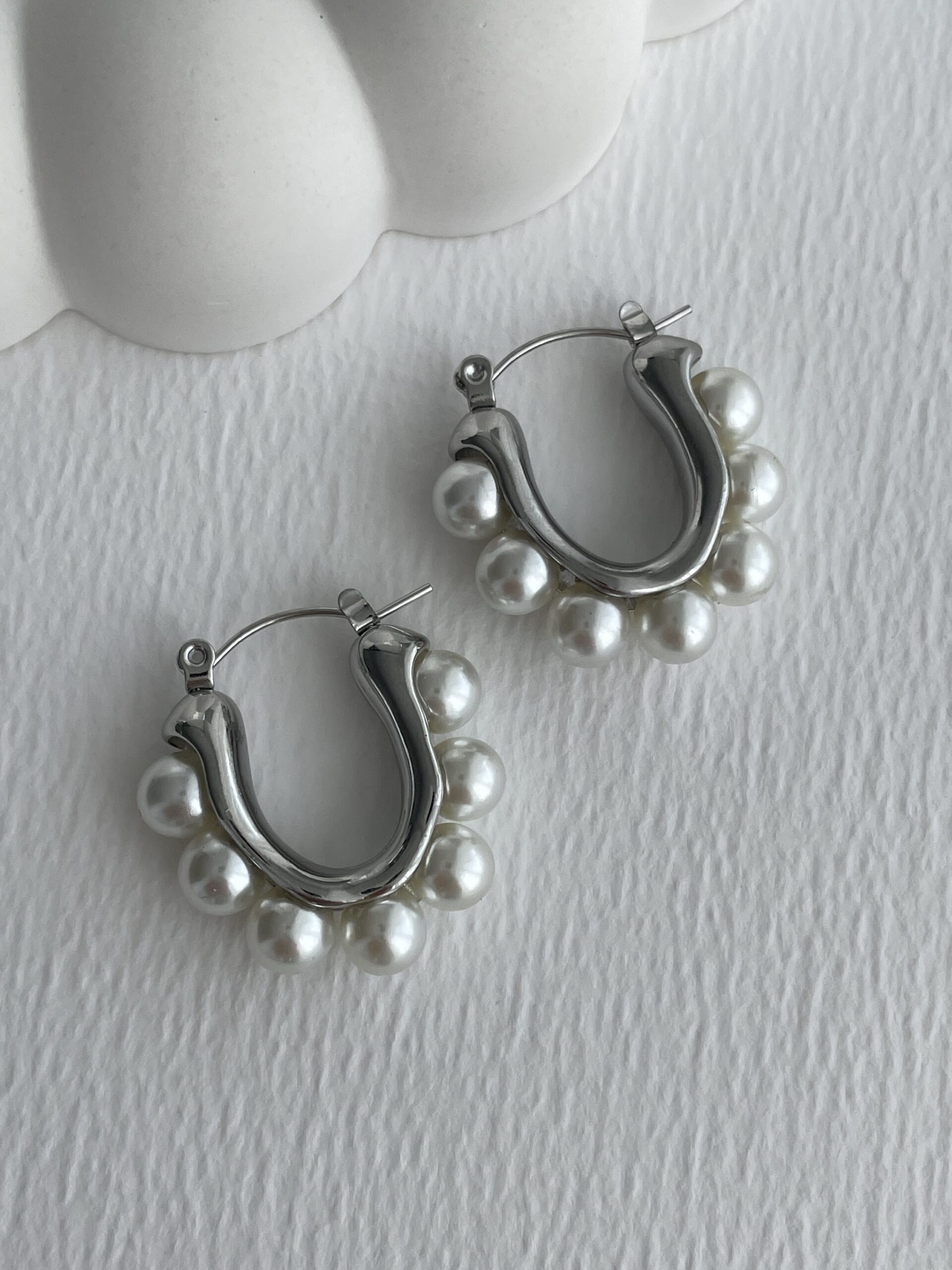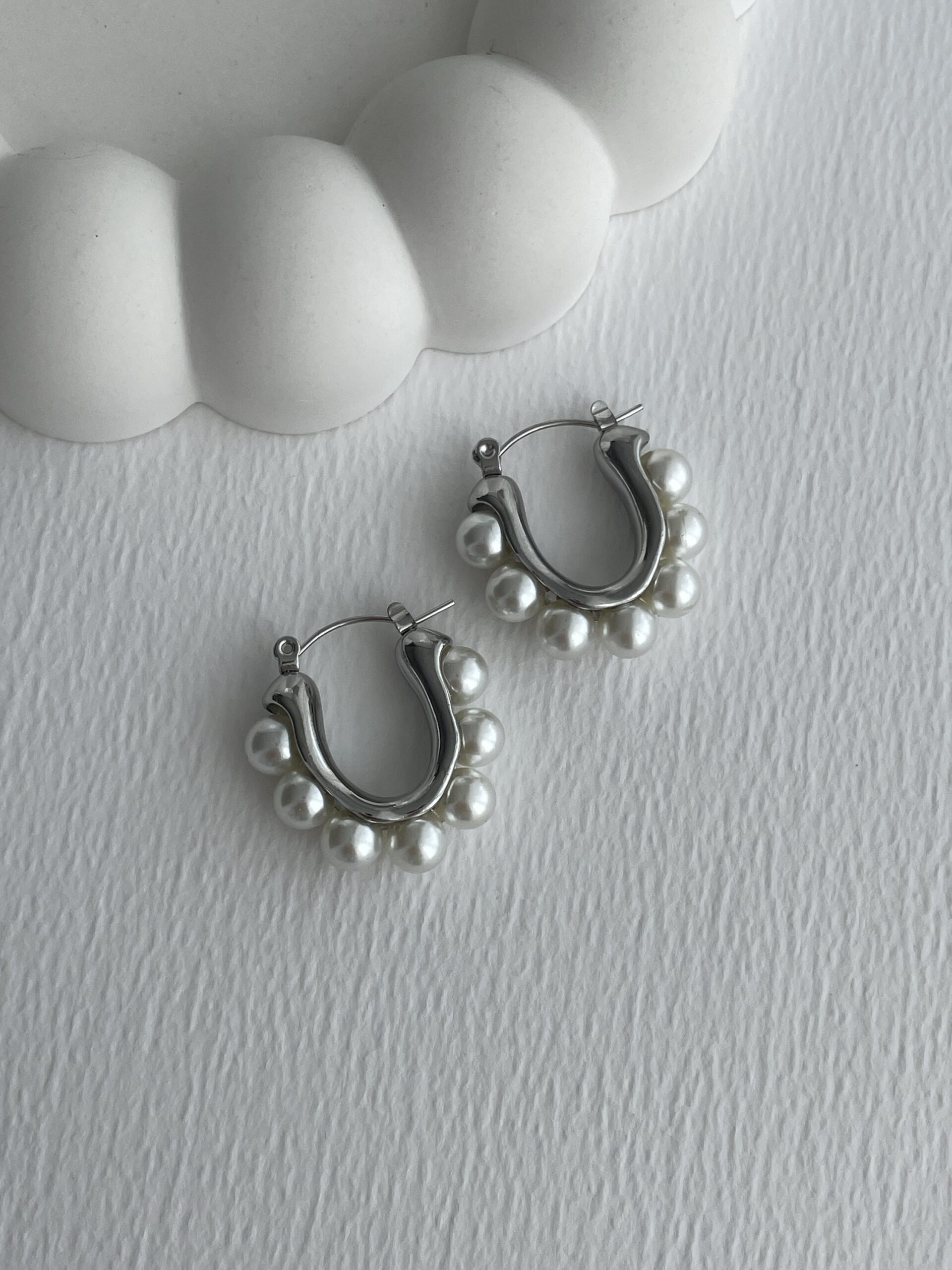 Özel Seri Gümüş İnci Tasarım Halka Küpe