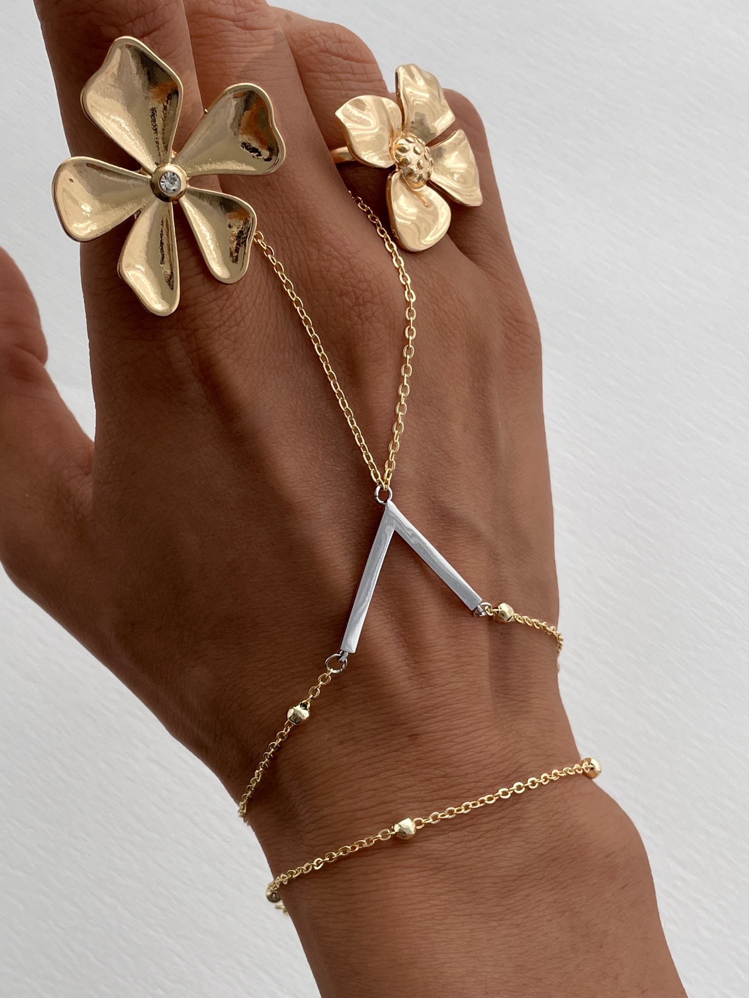 Özel Seri Gümüş V Tasarım Gold Top Zincir Şahmeran