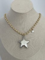 Özel Seri Gümüş Yıldız Tasarım Gold Top Zincir Kolye