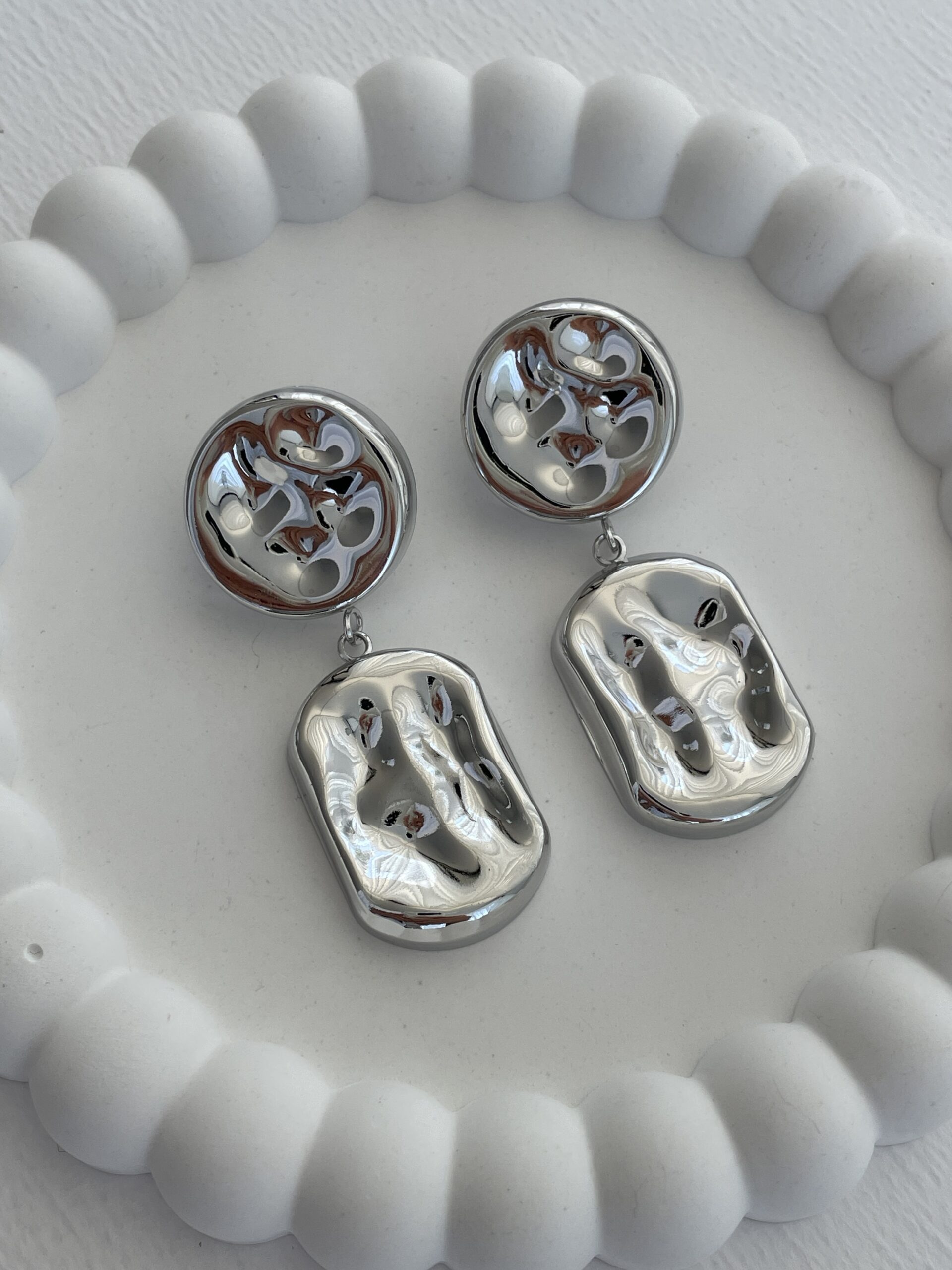 Özel Seri Gümüş Yuvarlak Dikdörtgen Soyut Küpe
