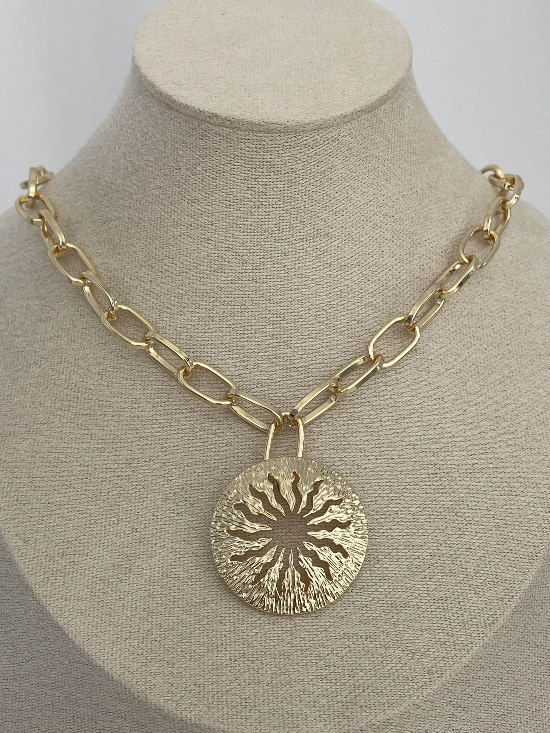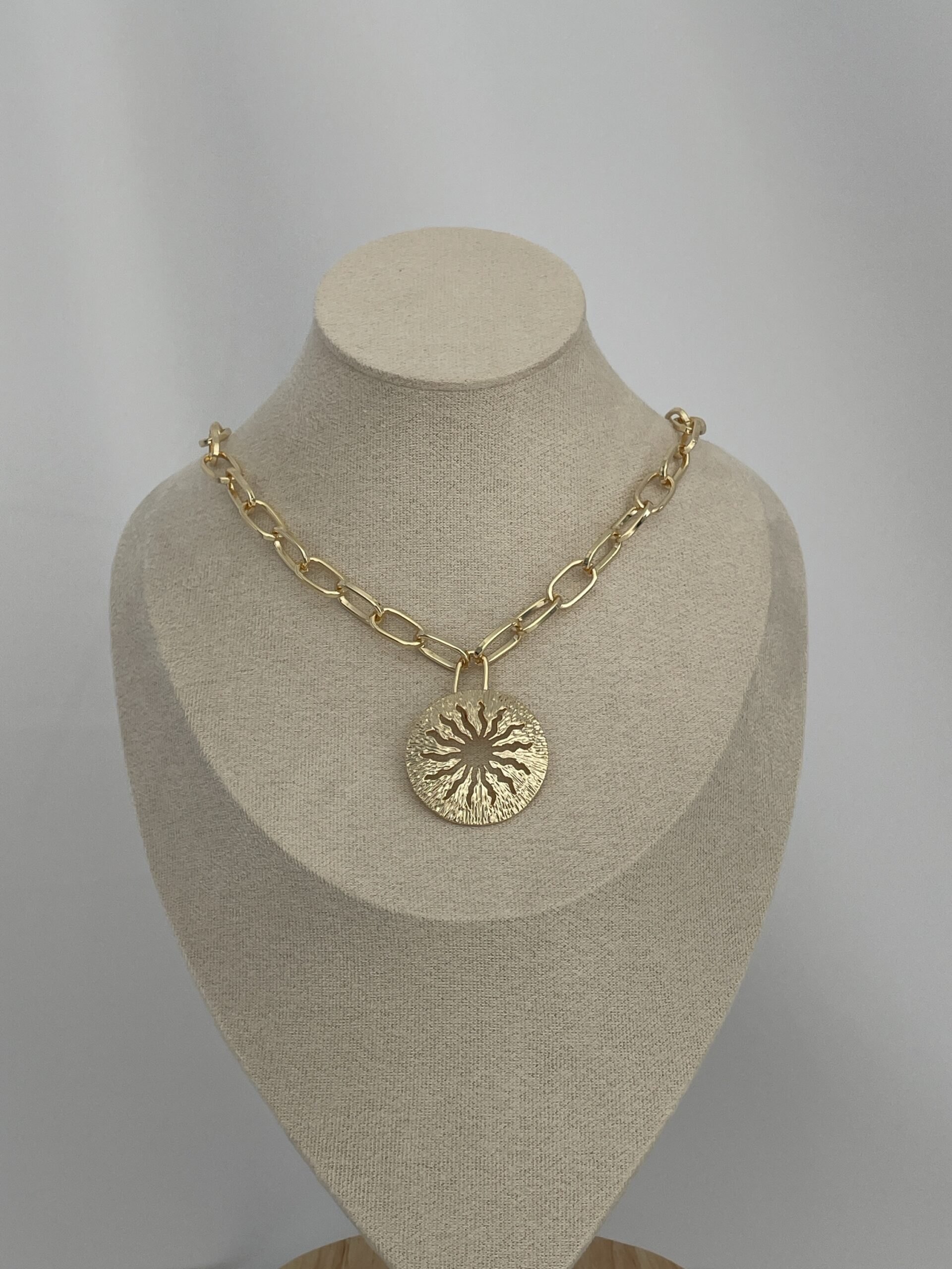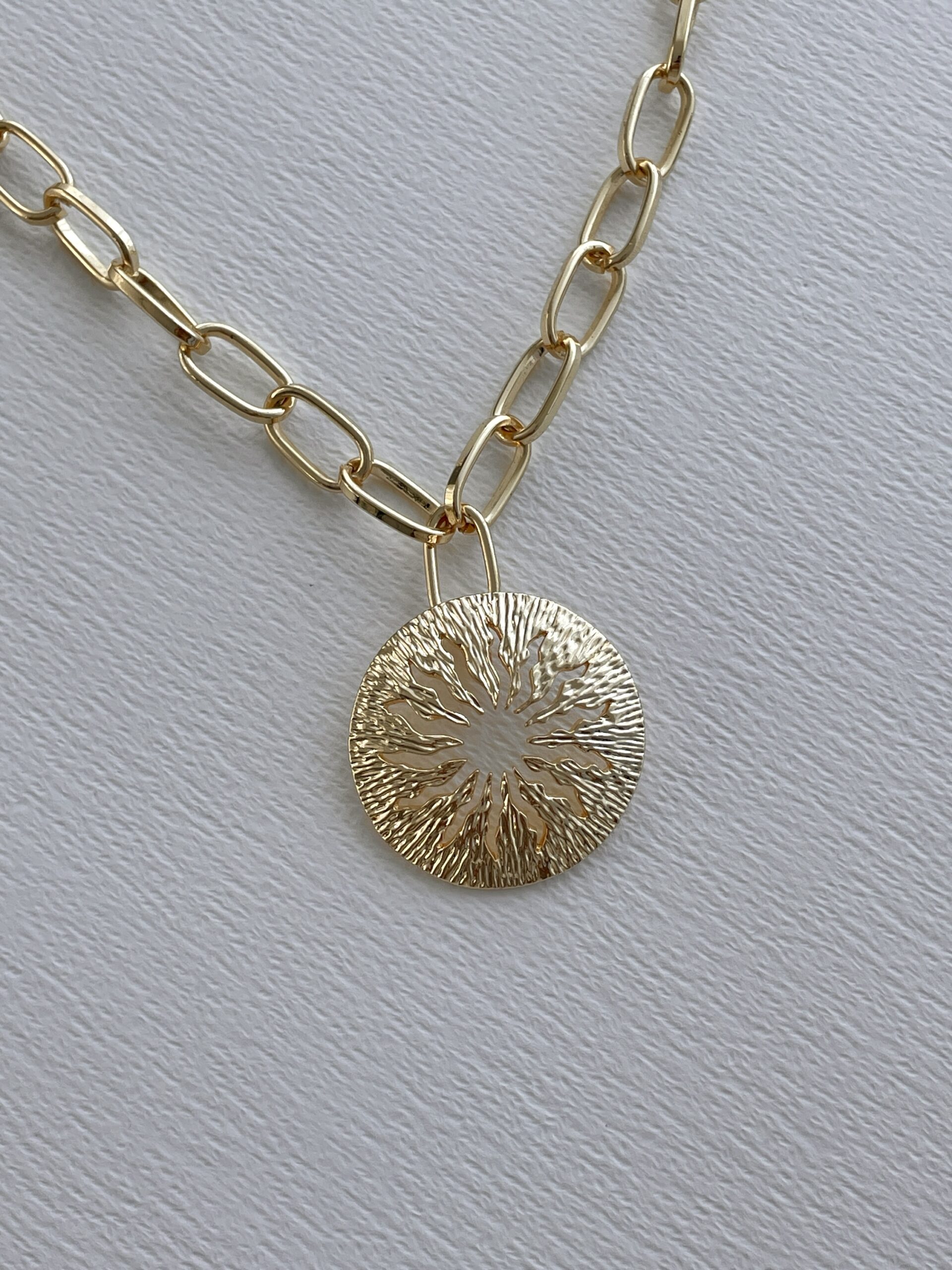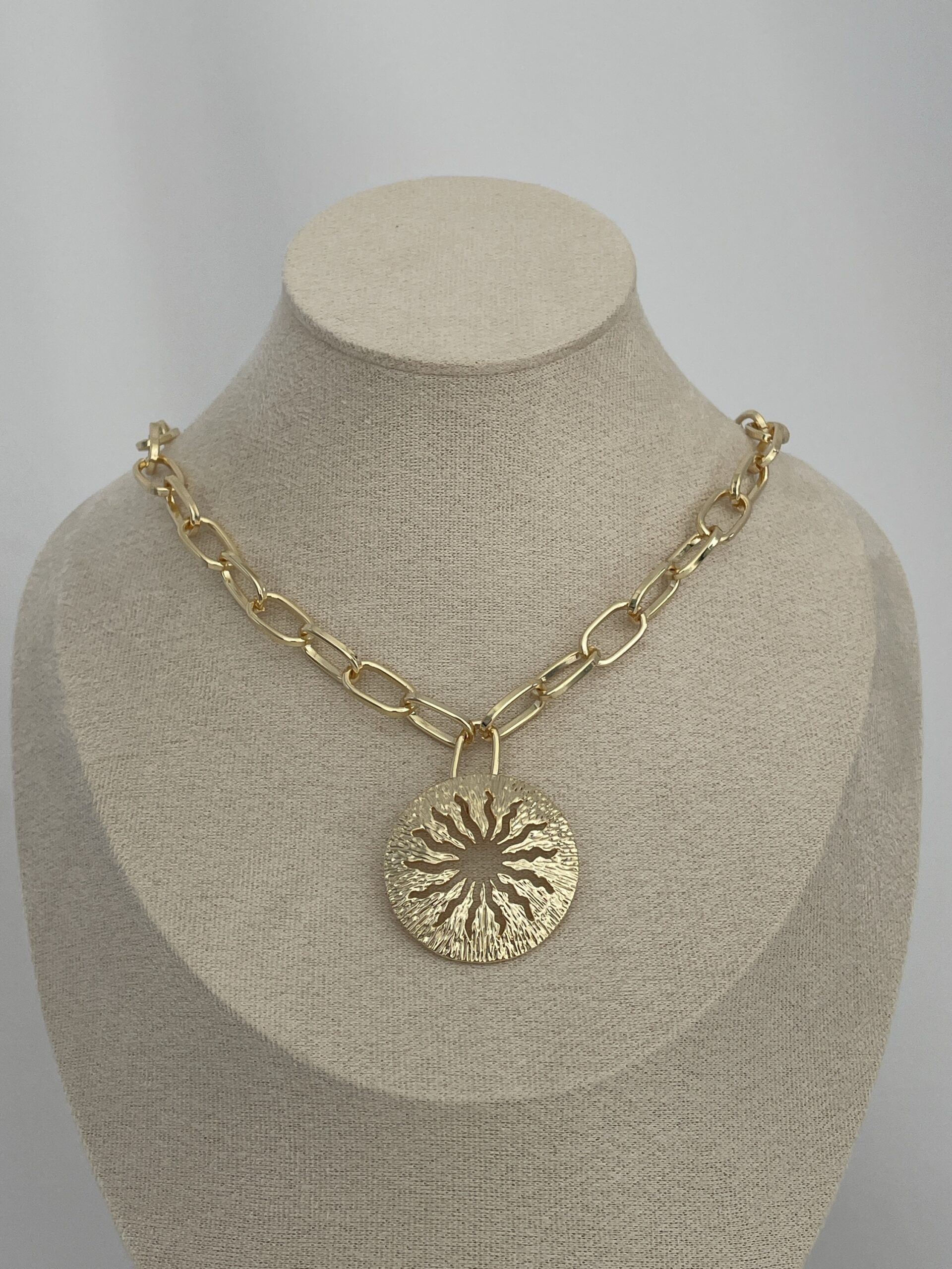Özel Seri Güneş Tasarım Gold Figaro Zincir Kolye