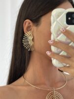 Özel Seri Yarım Güneş Tasarım Gold Küpe