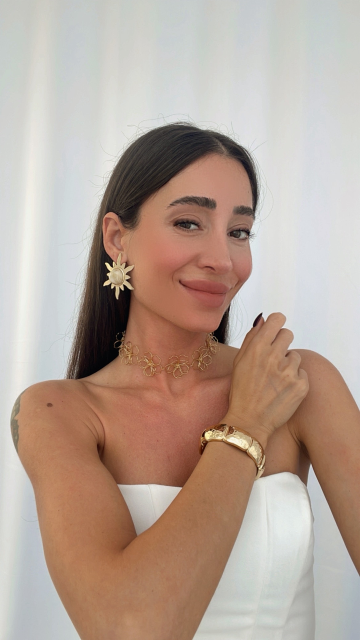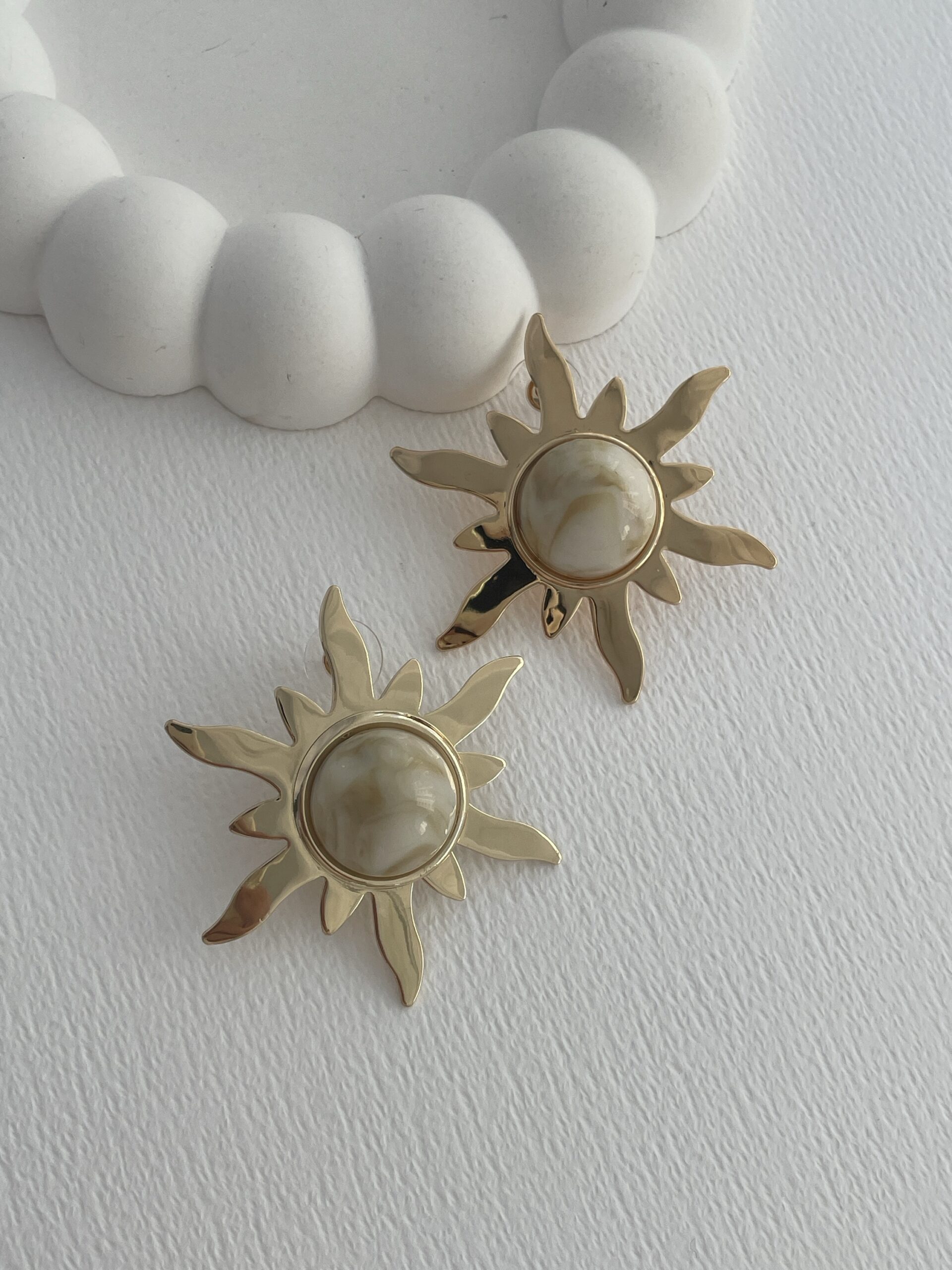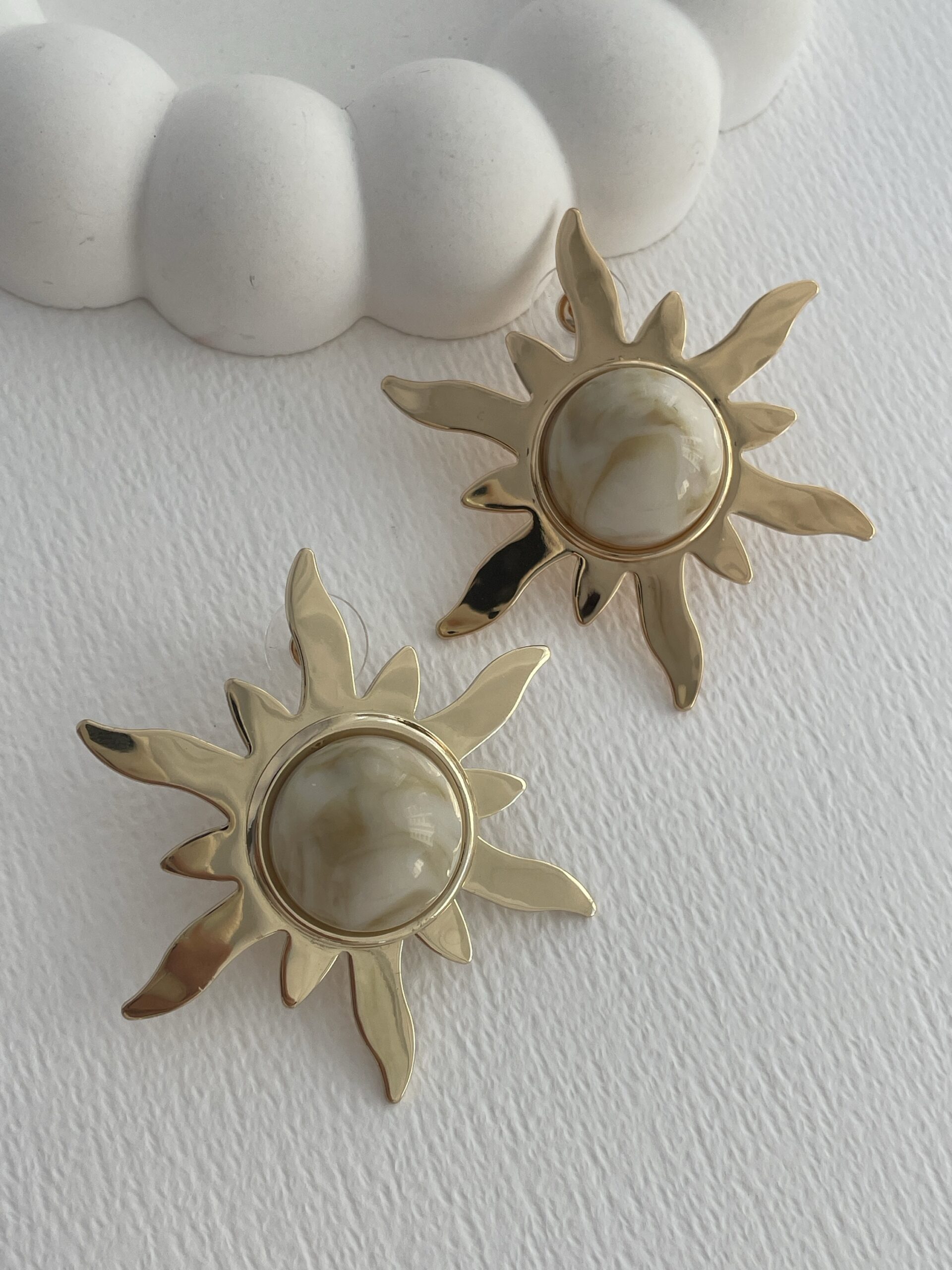 Özel Seri Güneş Tasarım Sedefli Gold Detay Küpe