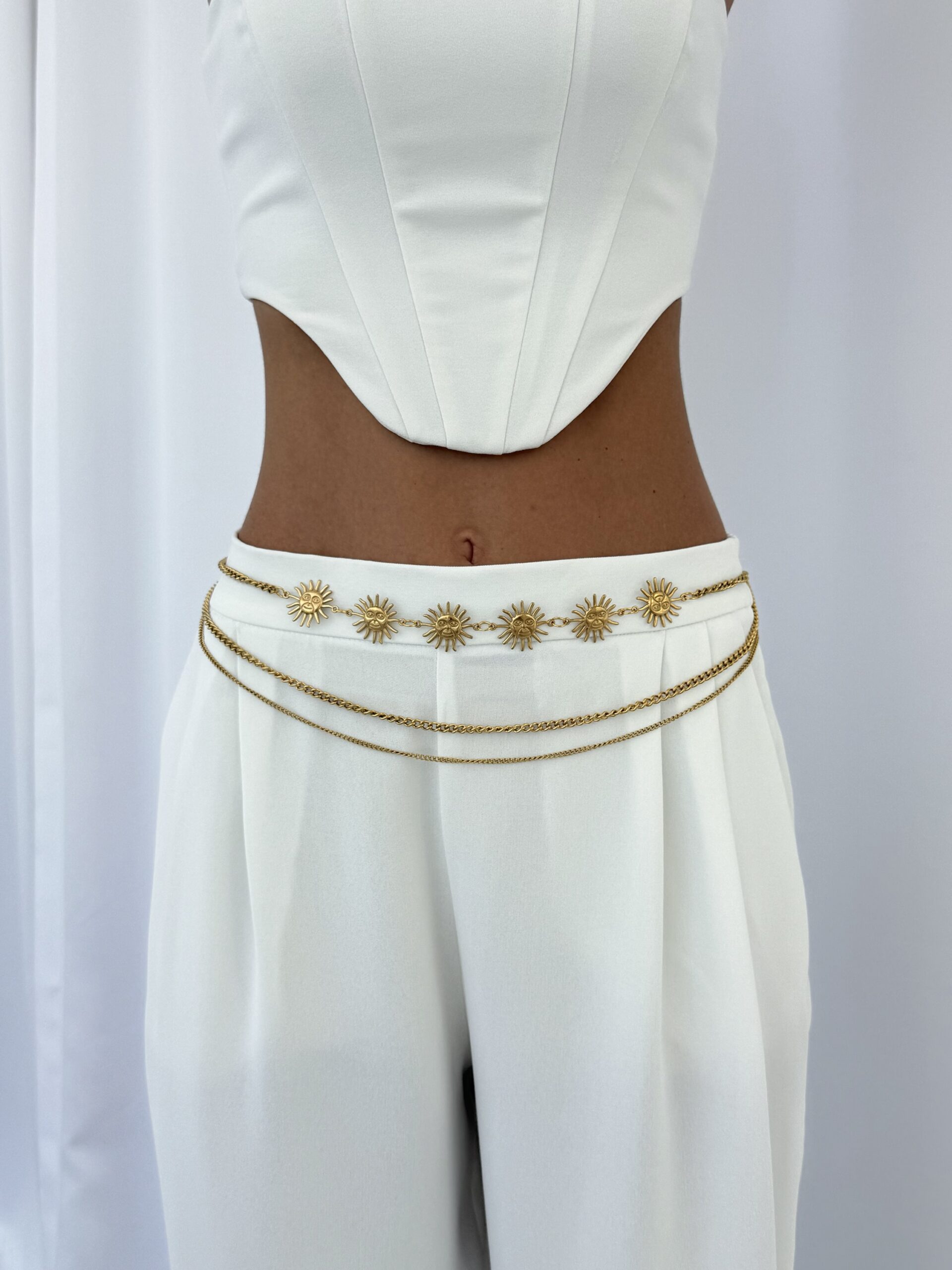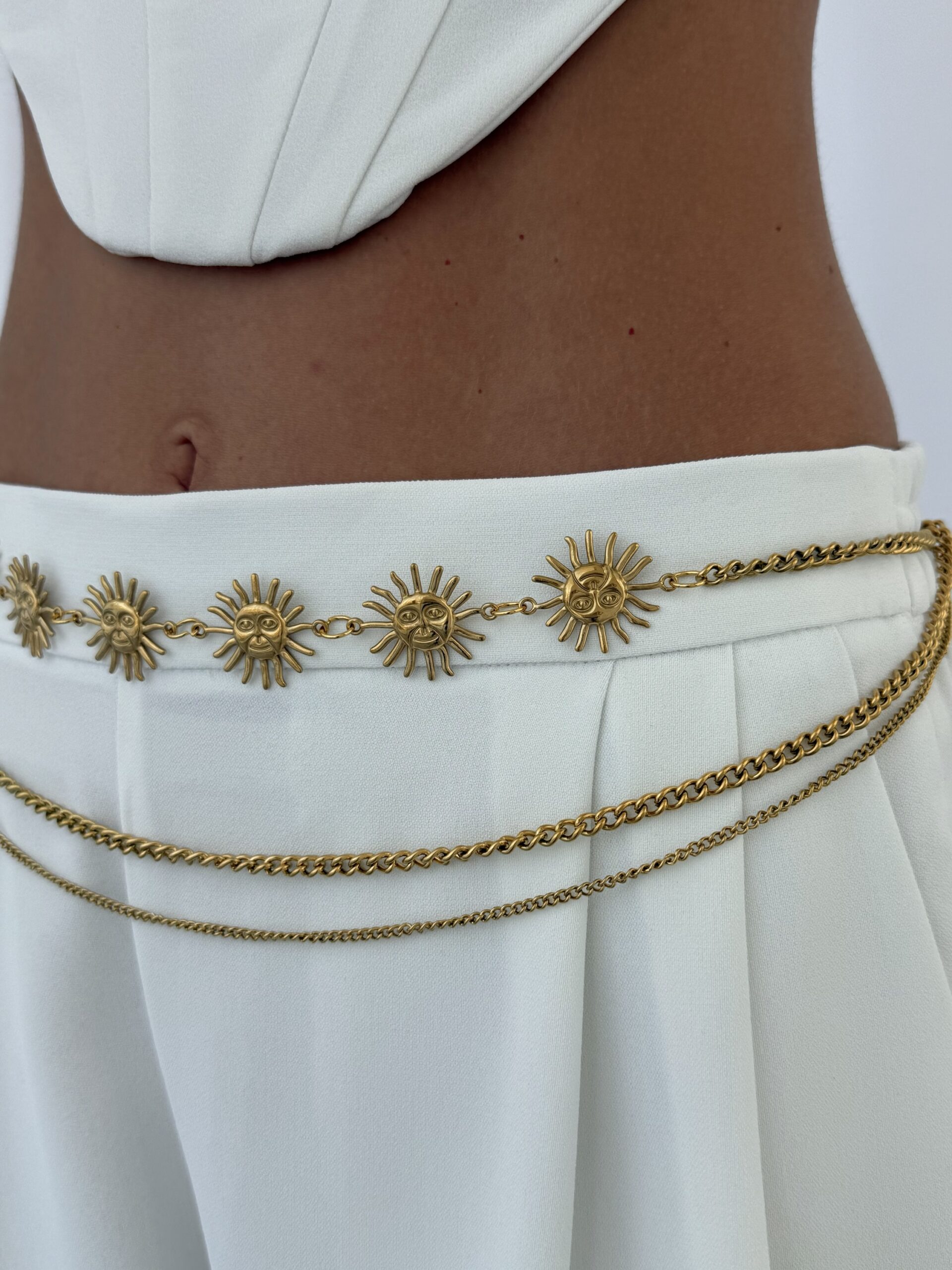 Özel Seri Güneş Tasarım Üçlü Zincir Gold Bel Kemeri