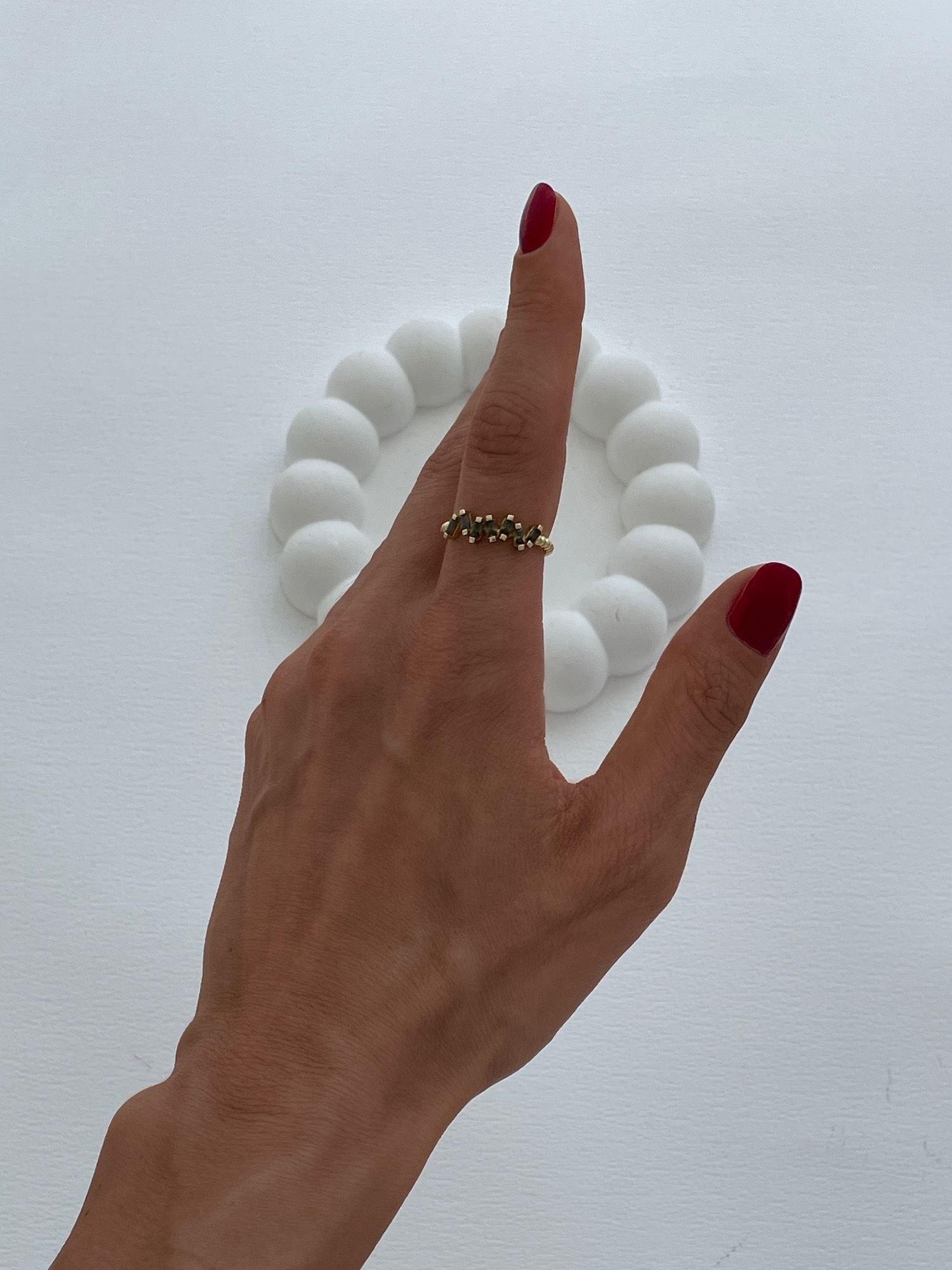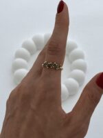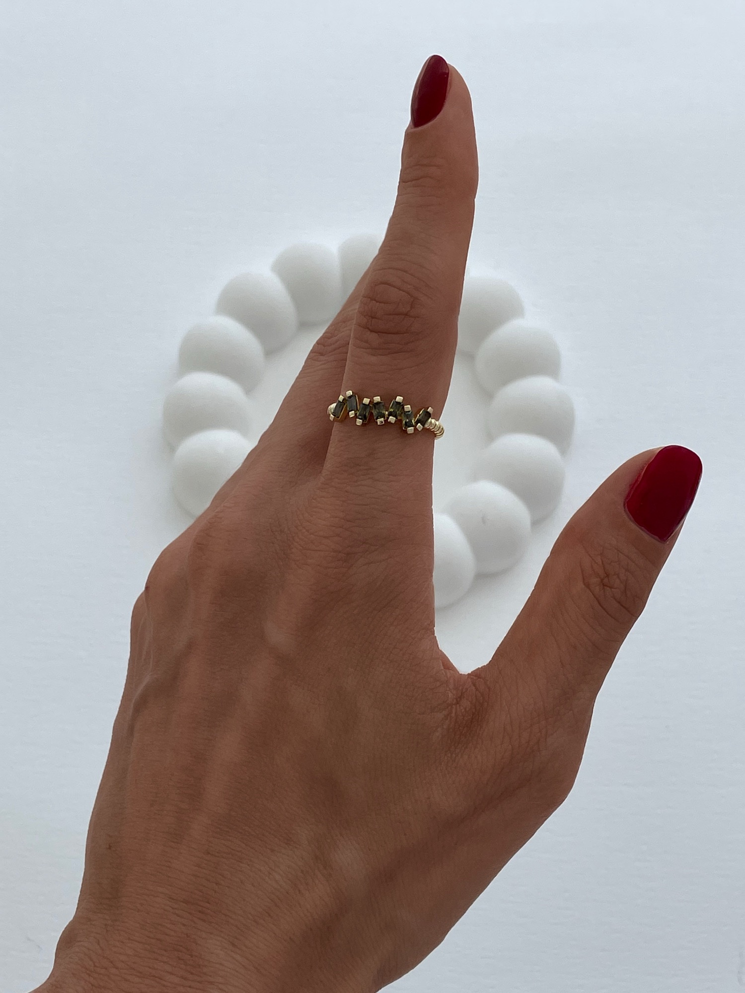 Özel Seri Haki Baget Taş Zikzak Gold Ayarlanabilir Yüzük