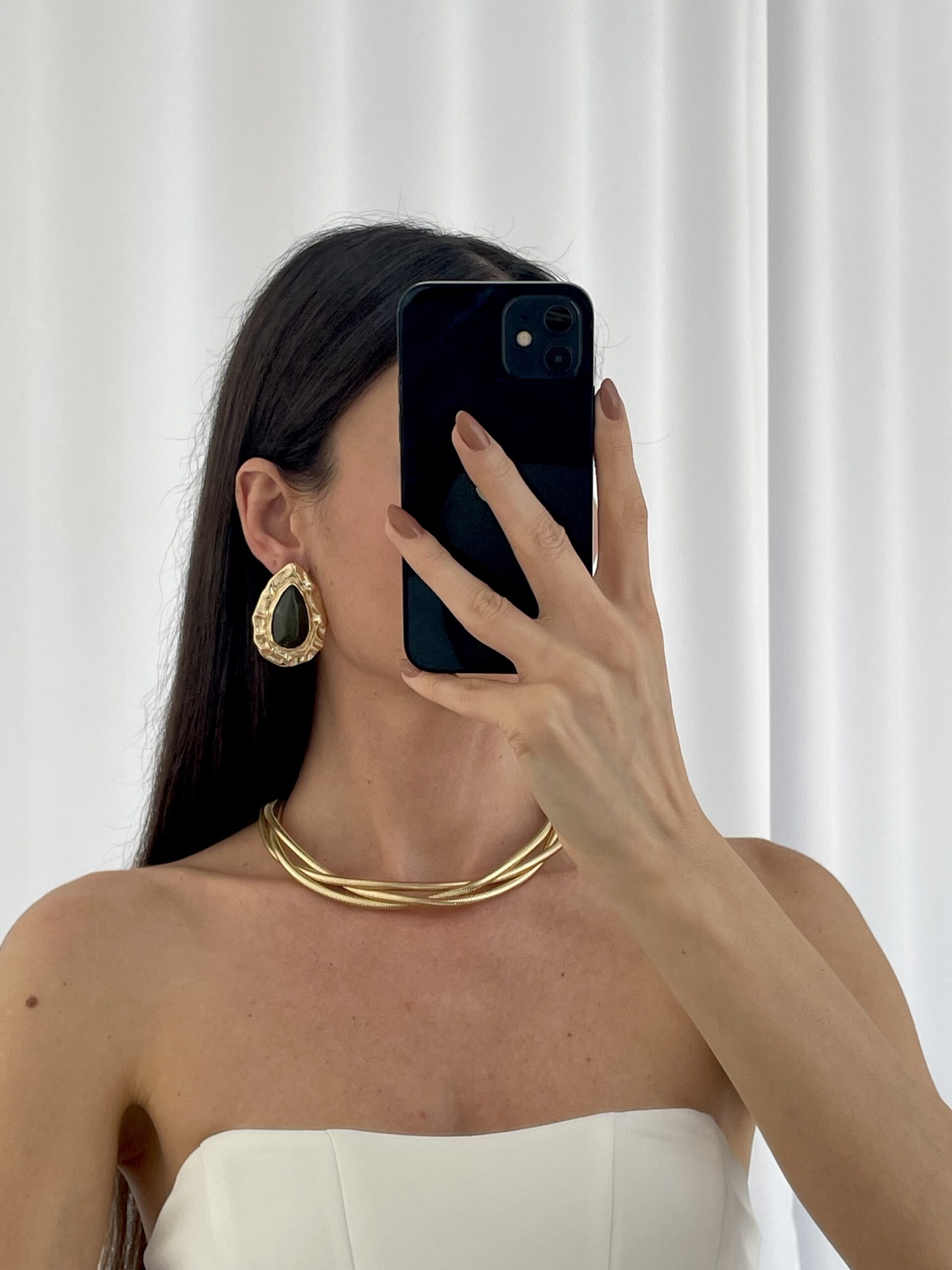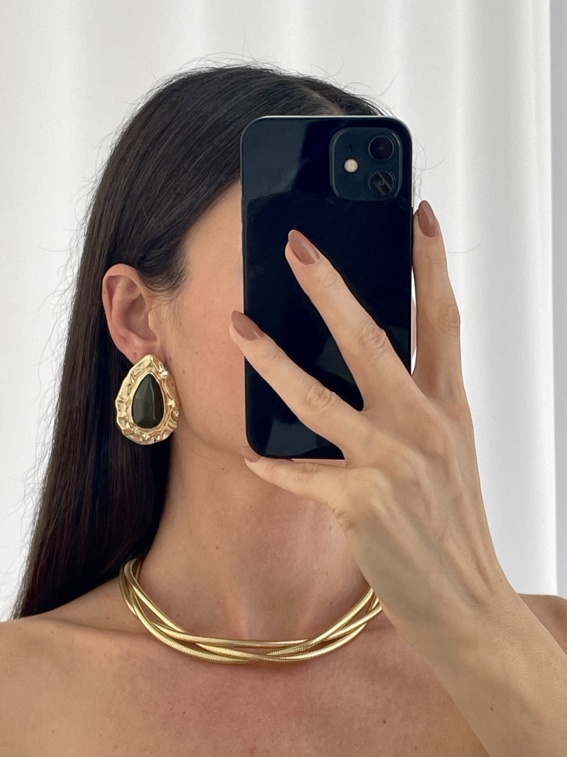 Özel Seri Haki Kemik Soyut Damla Tasarım Gold Küpe