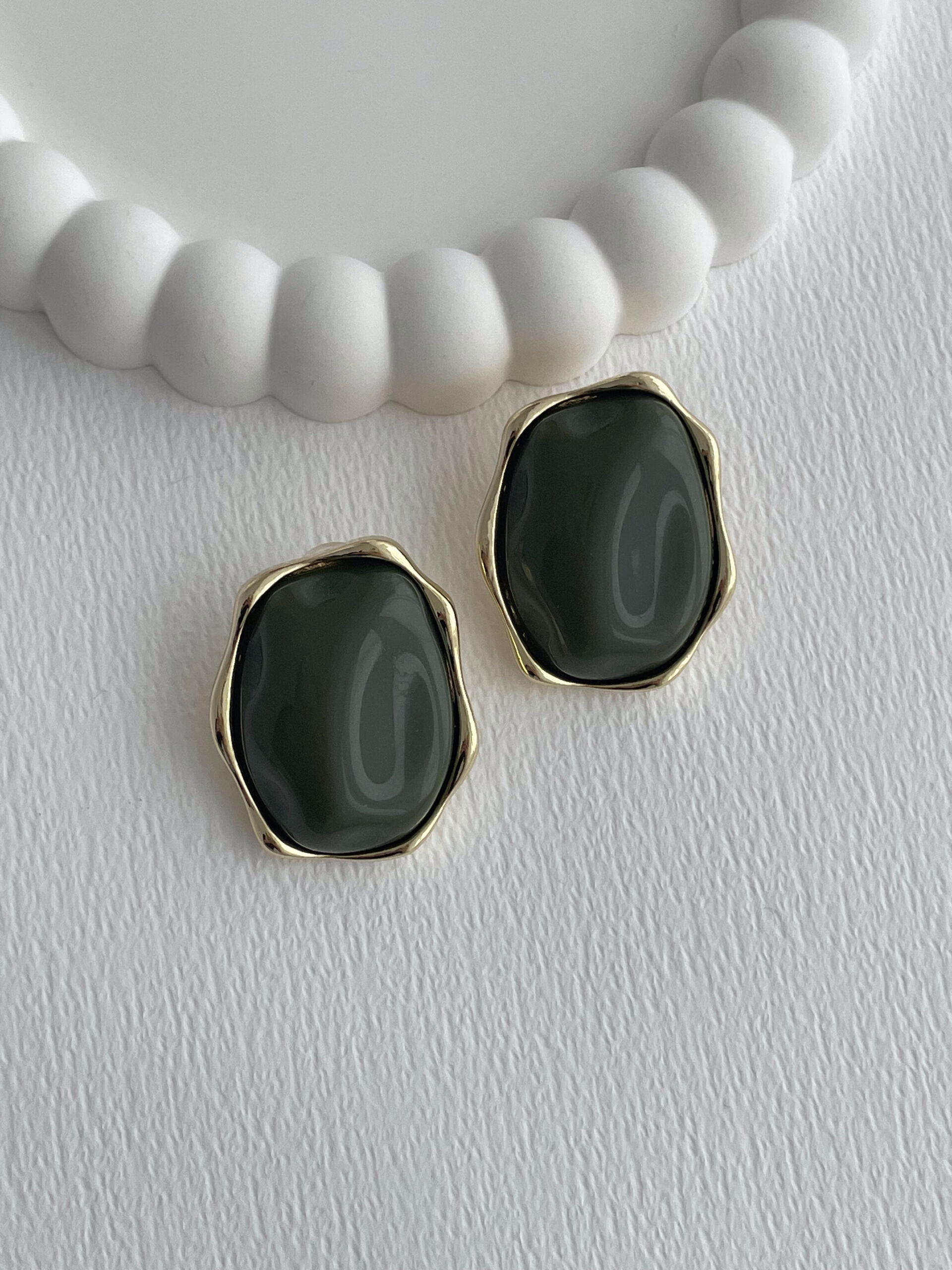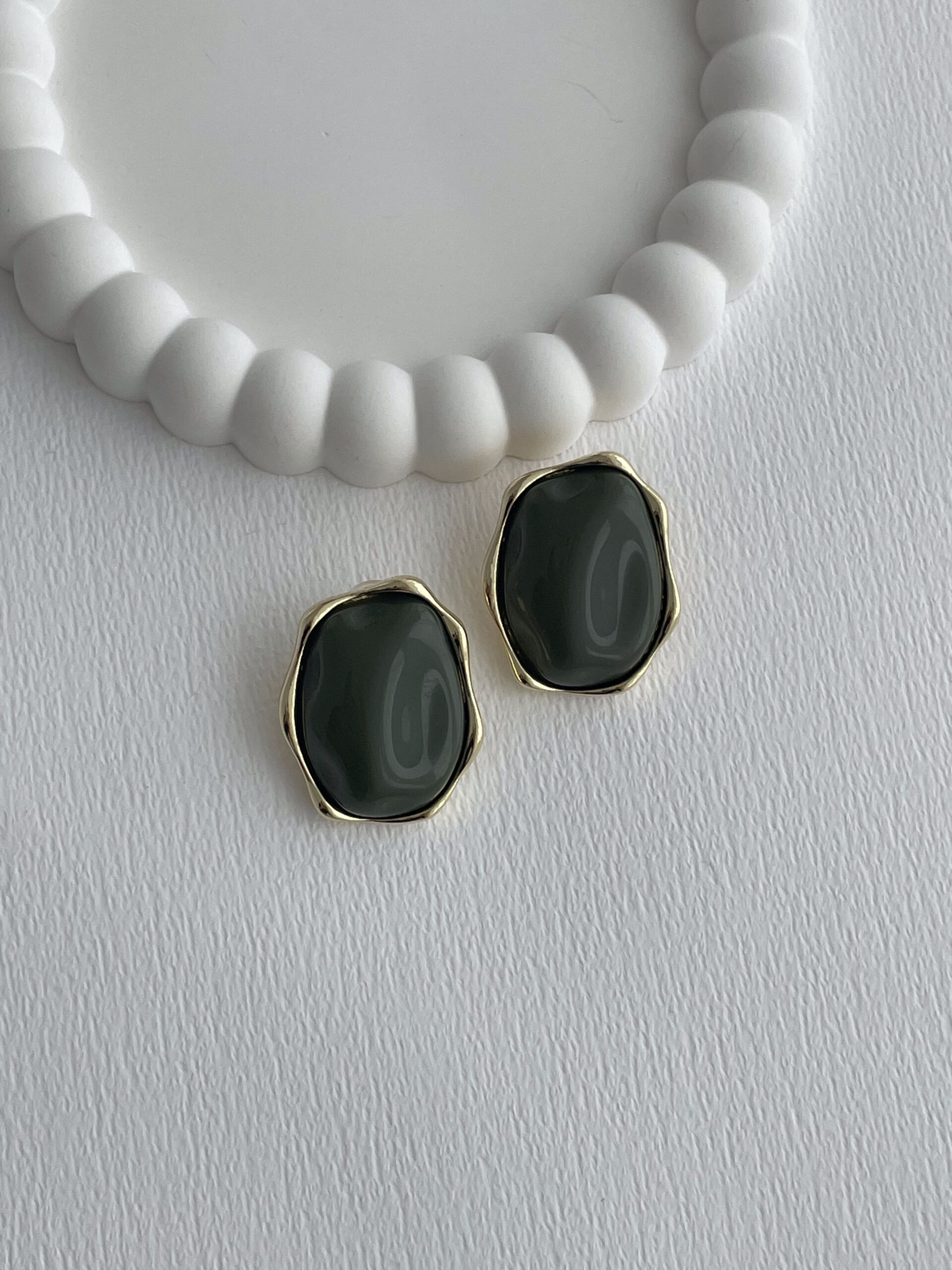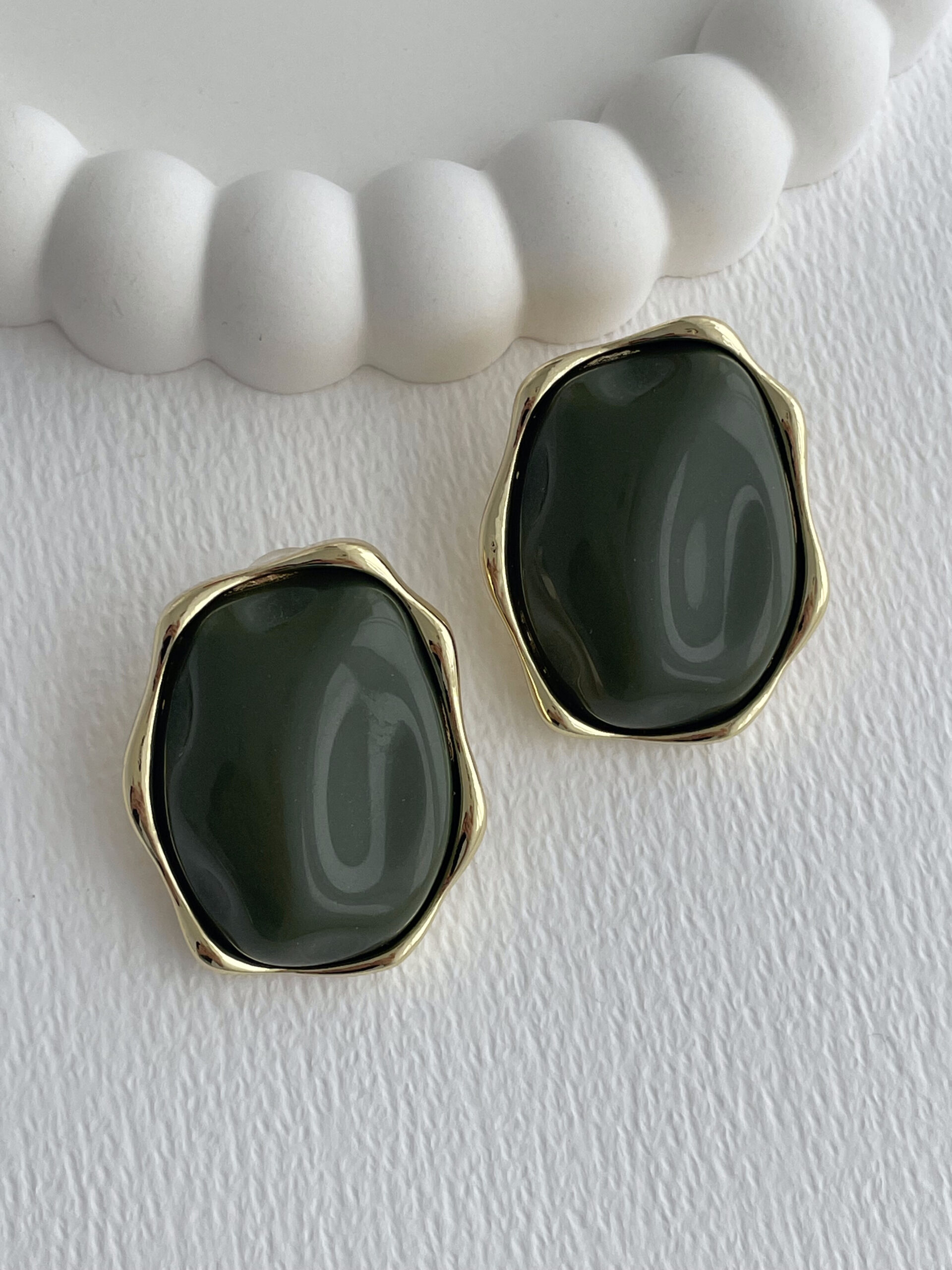 Özel Seri Haki Yeşil Kemik Detay Soyut Tasarım Gold Küpe
