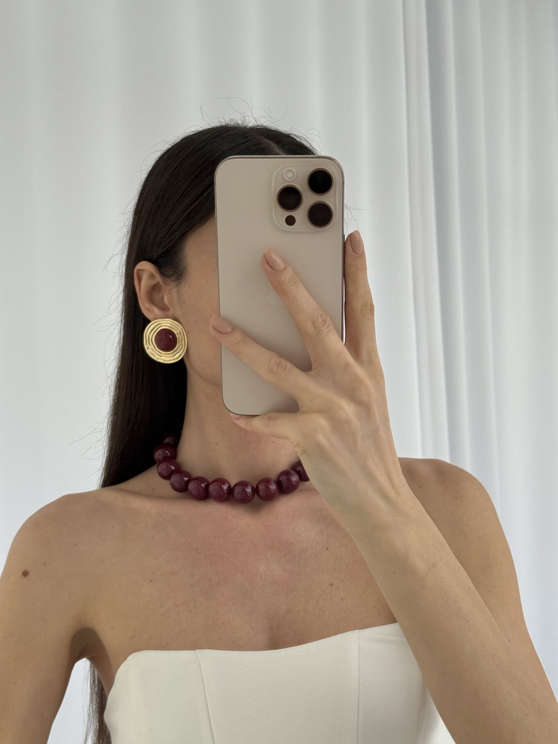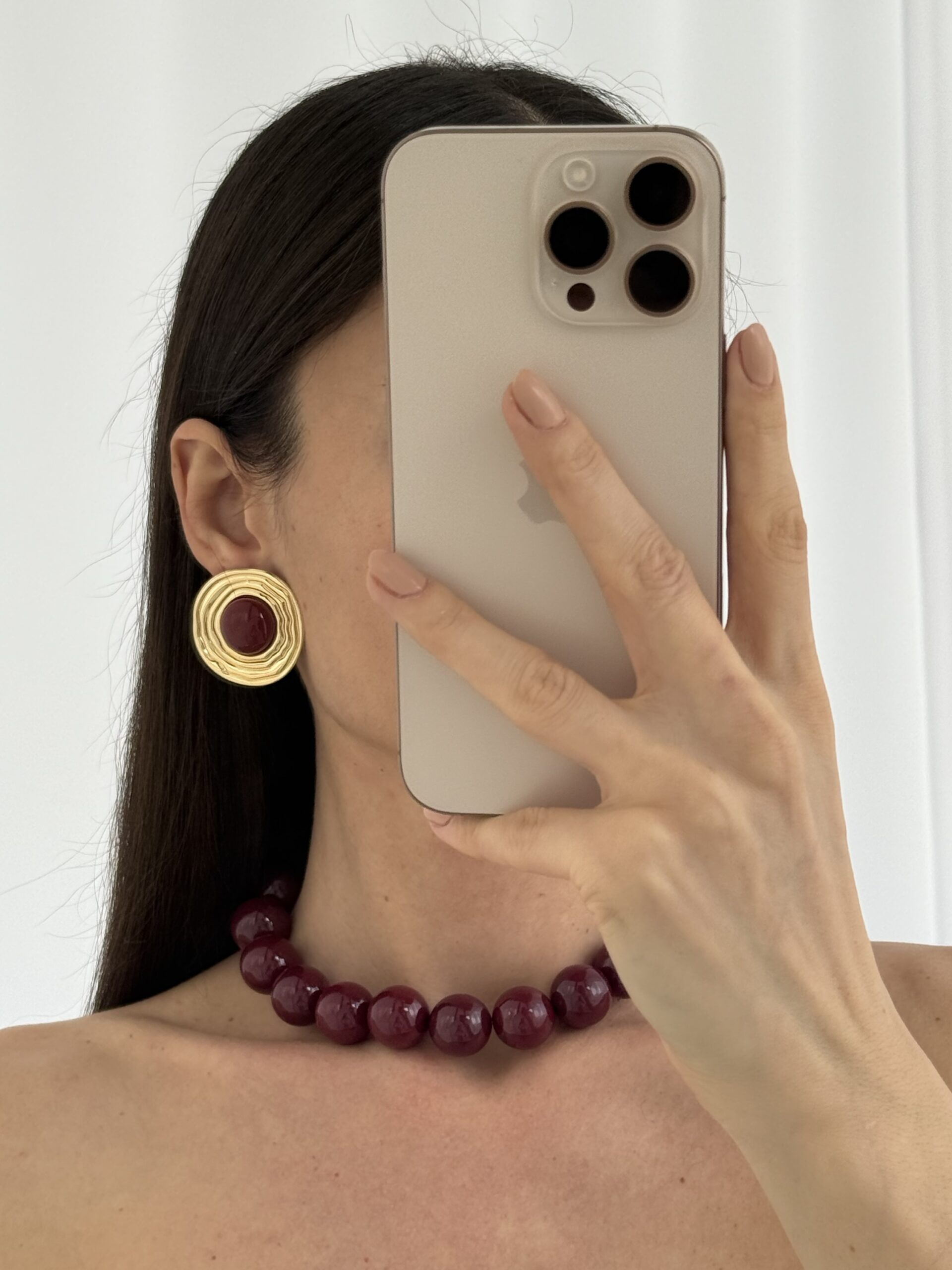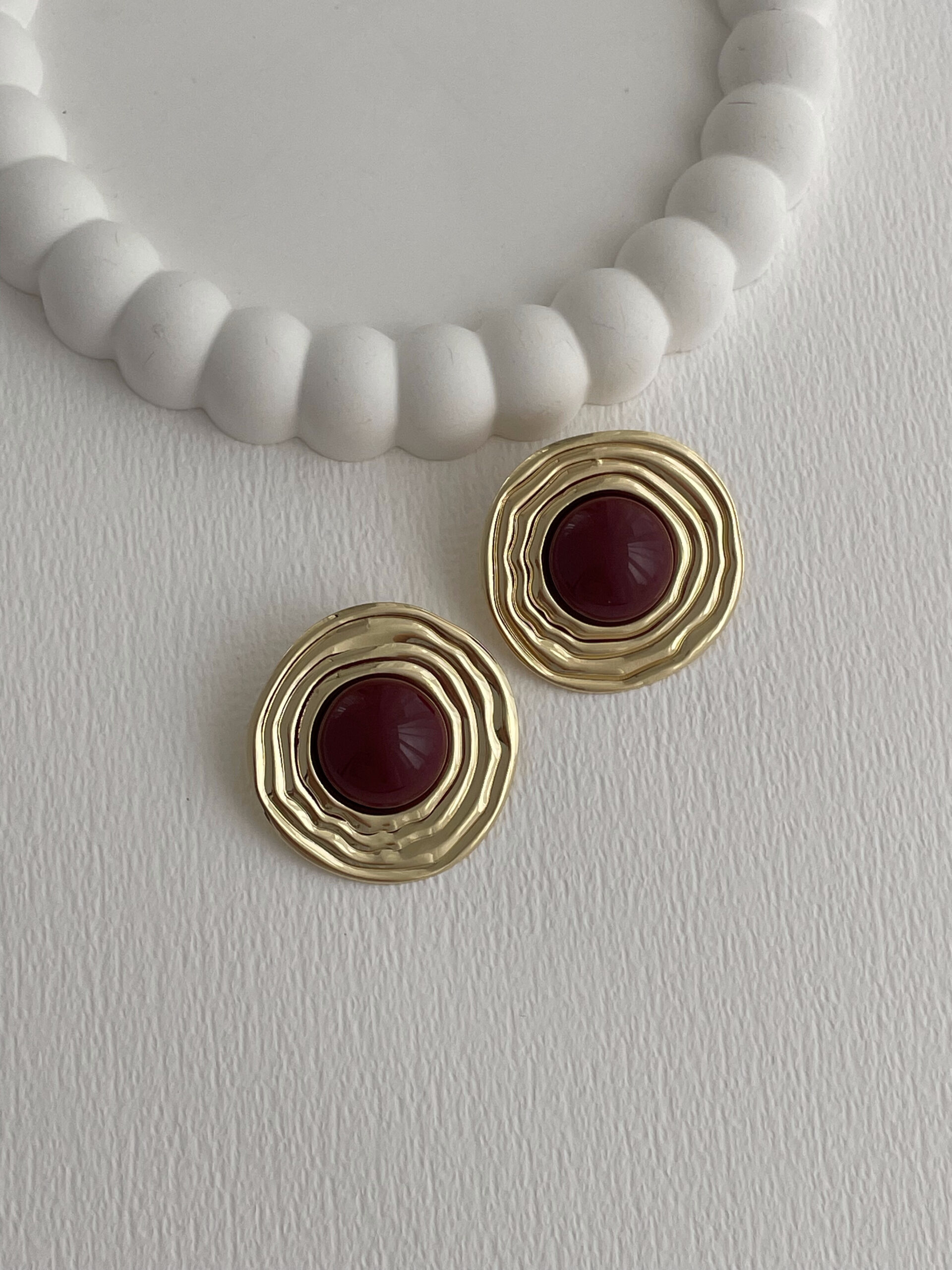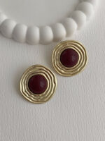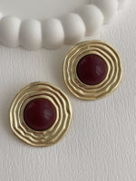 Özel Seri Halka Desen Bordo Mineli Gold Küpe