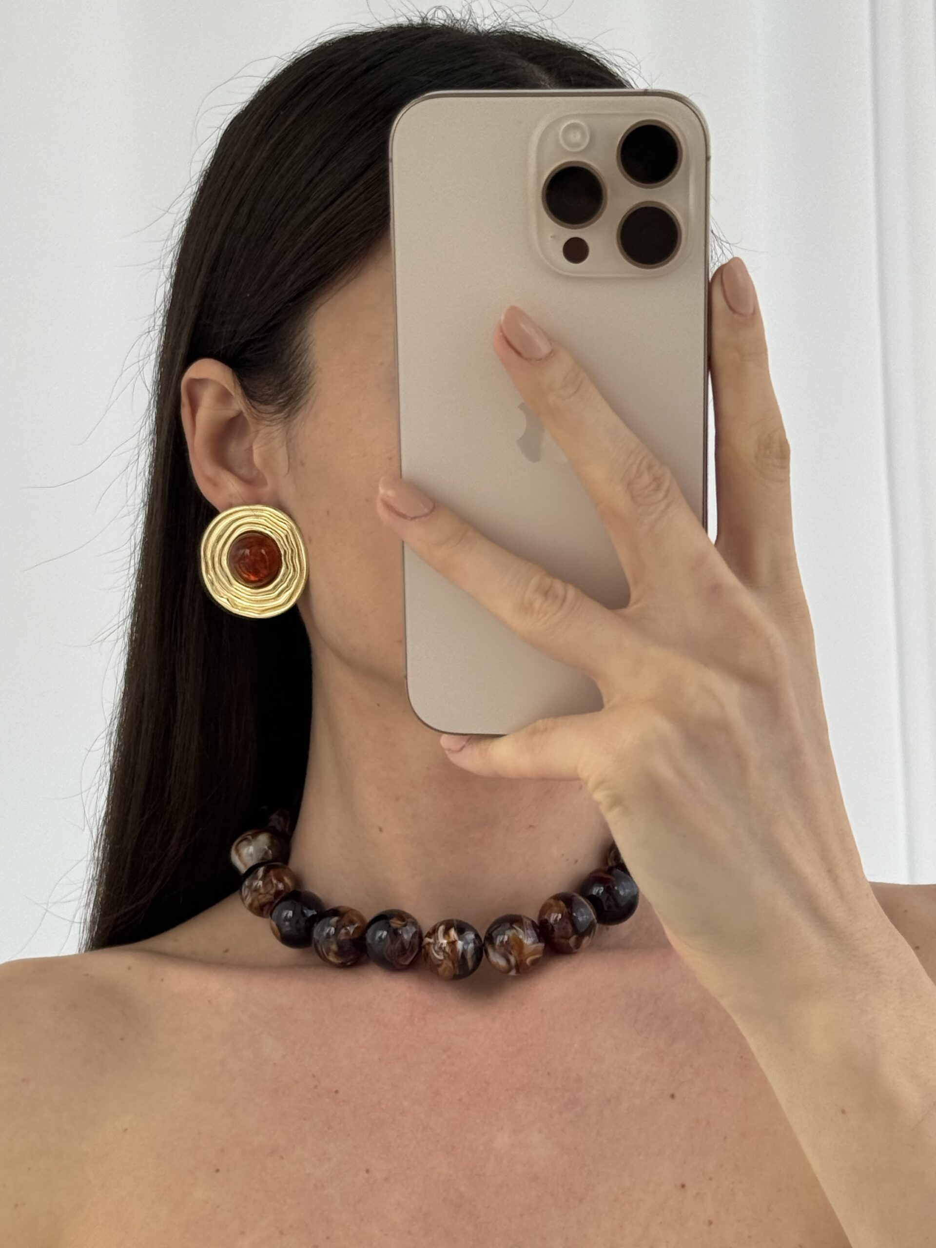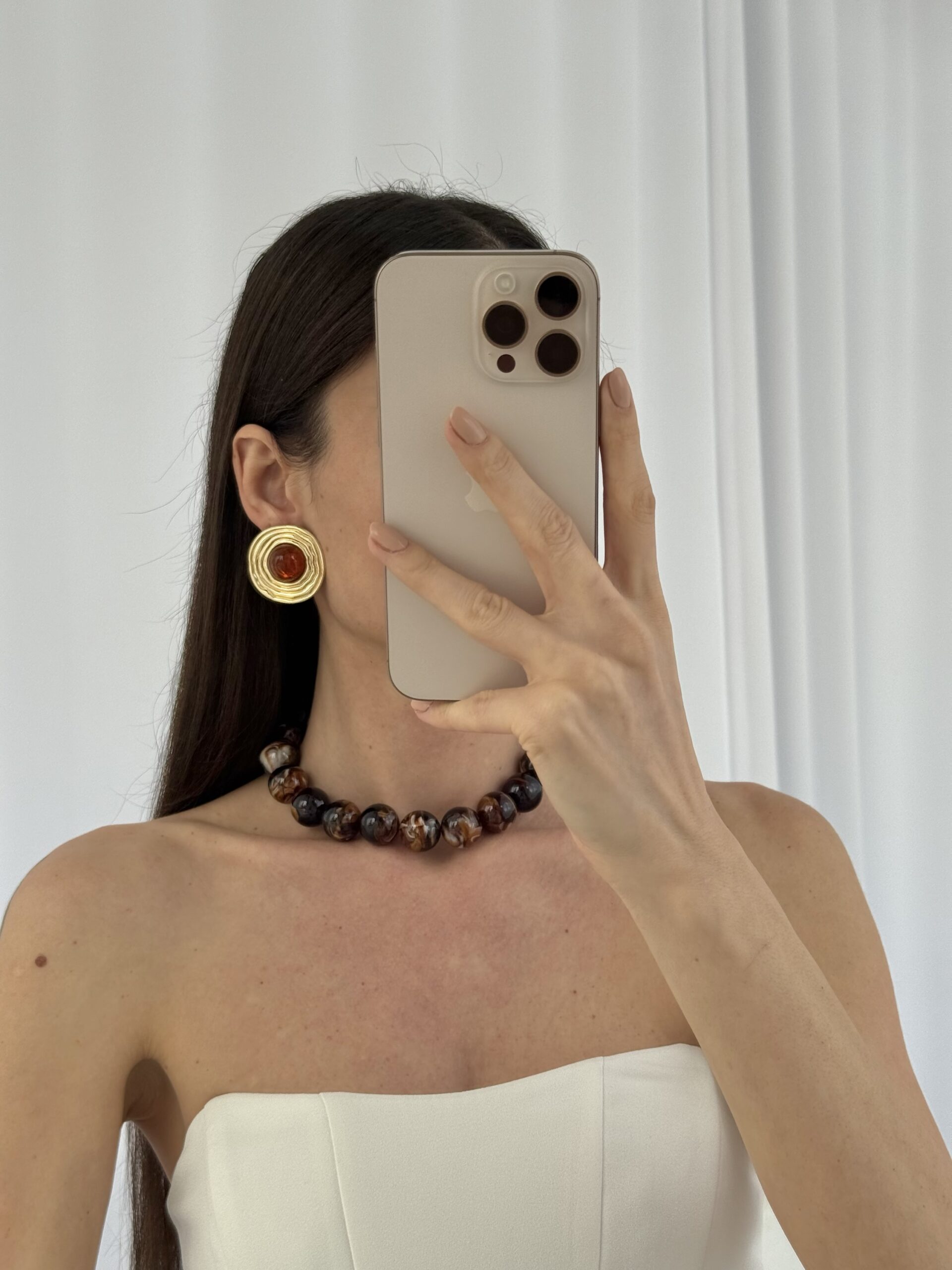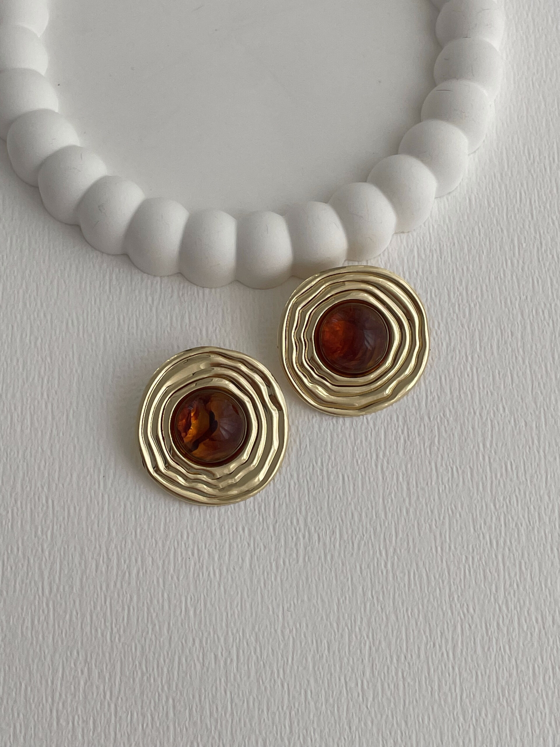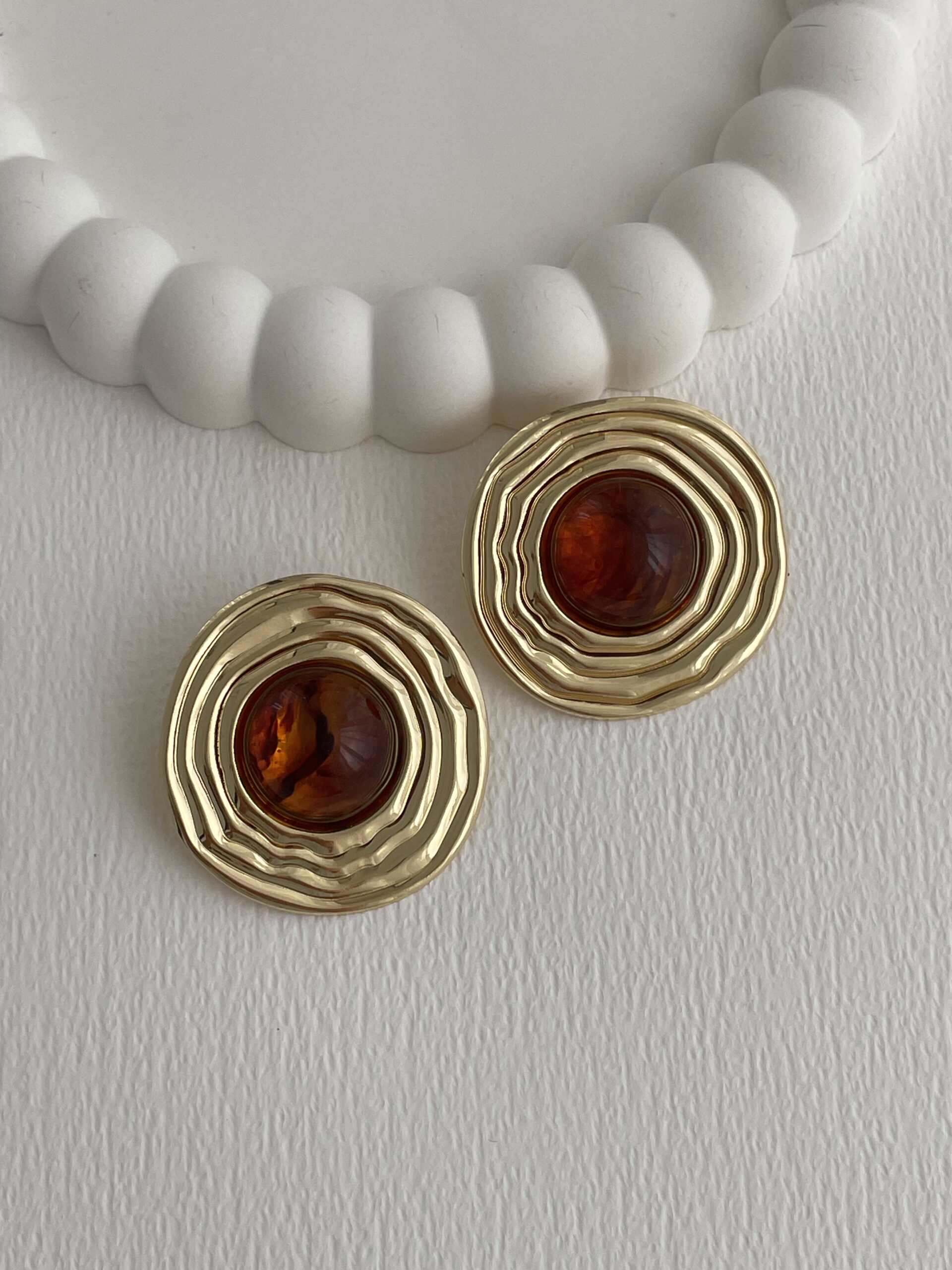 Özel Seri Halka Desen Kahverengi Mineli Gold Küpe