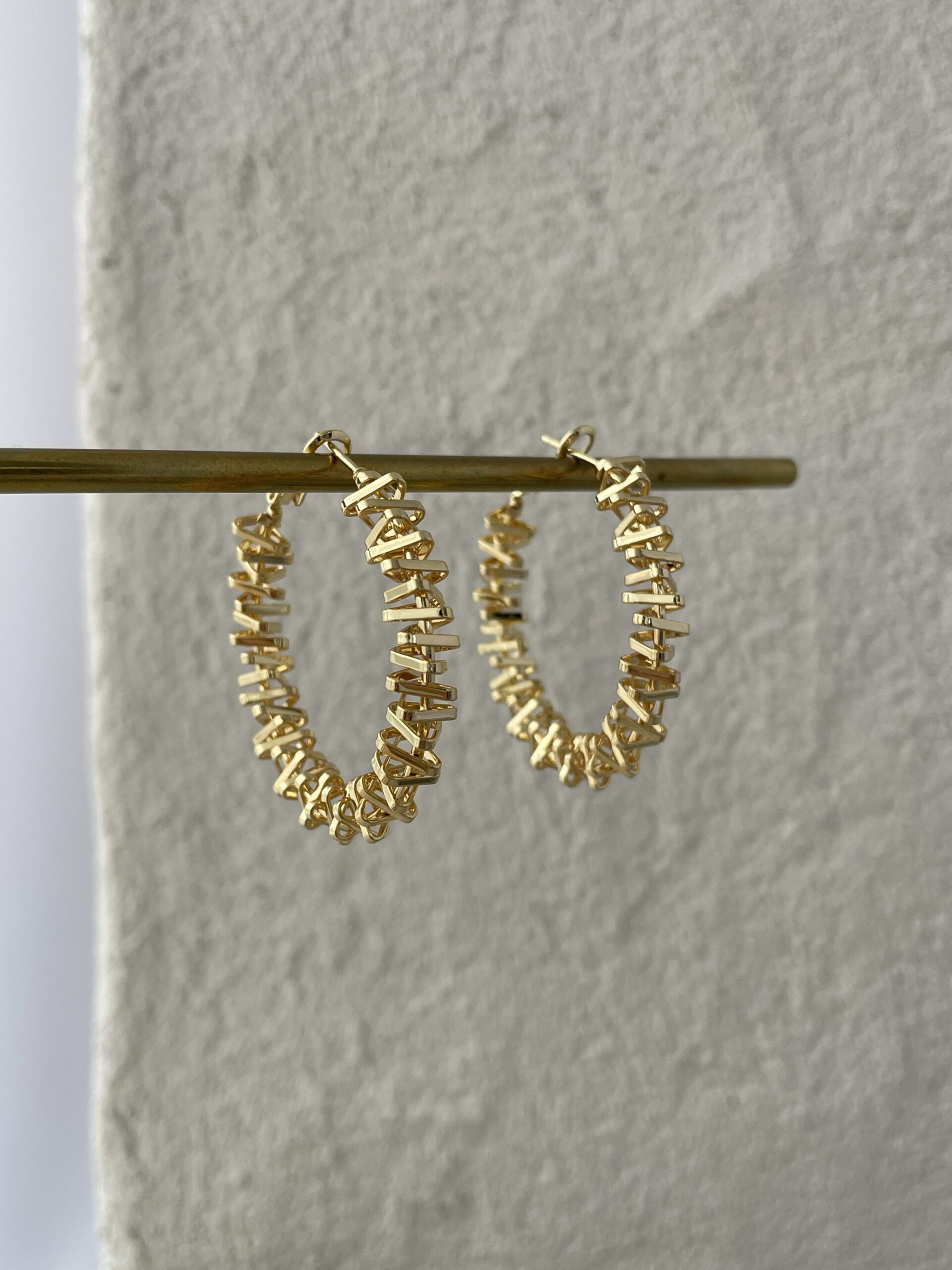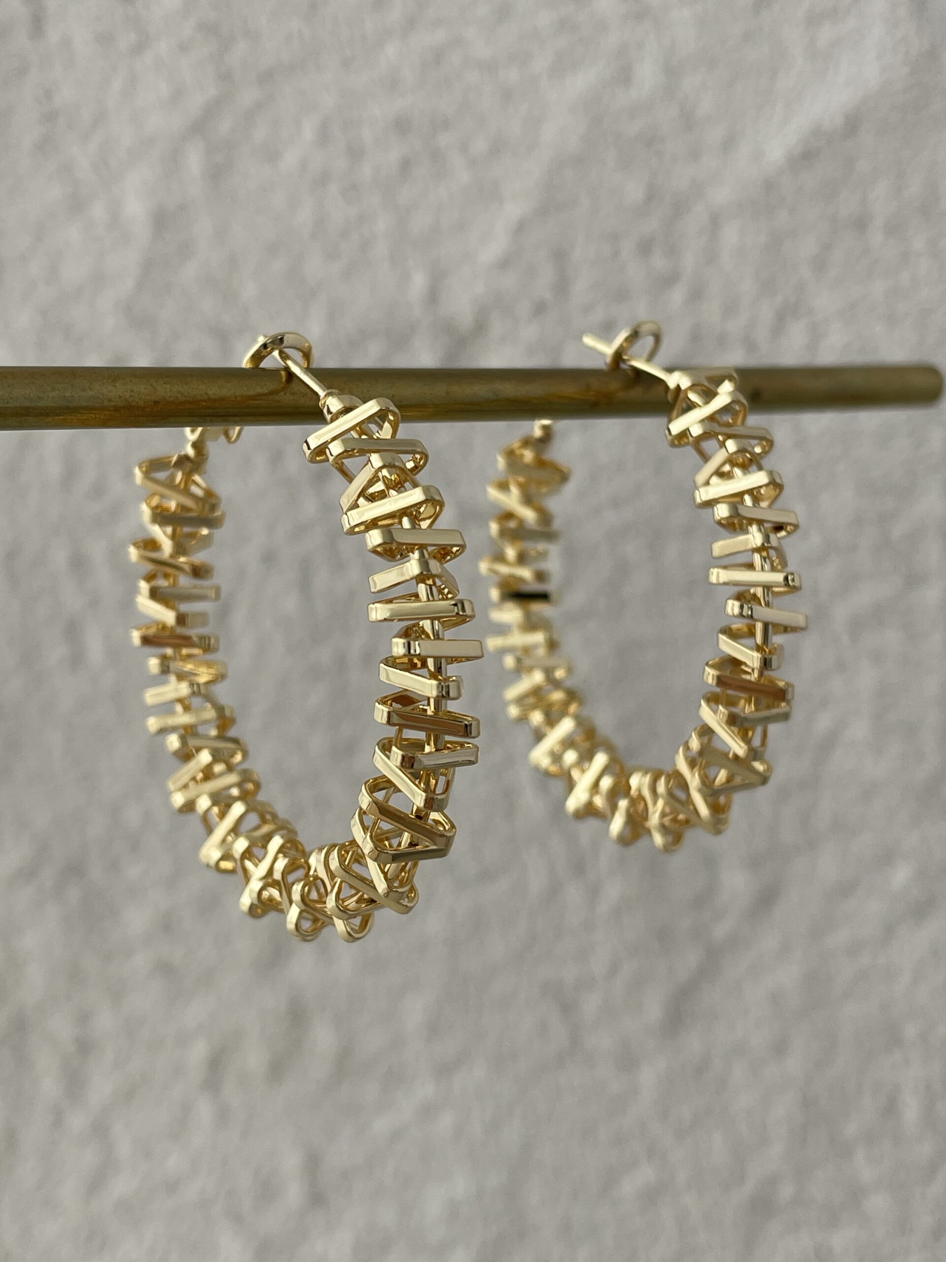 Özel Seri Halka Kare Tasarım Gold Küpe