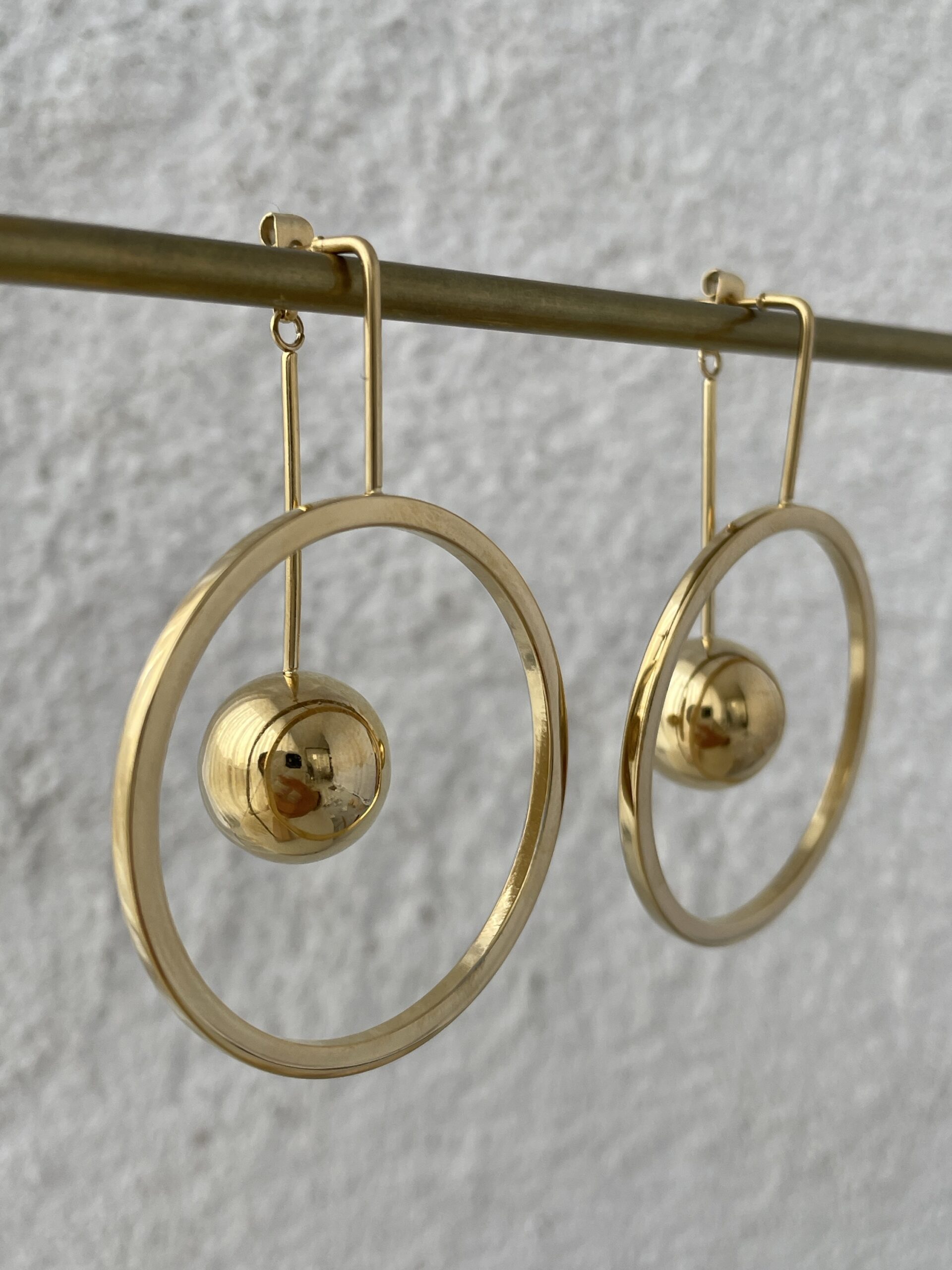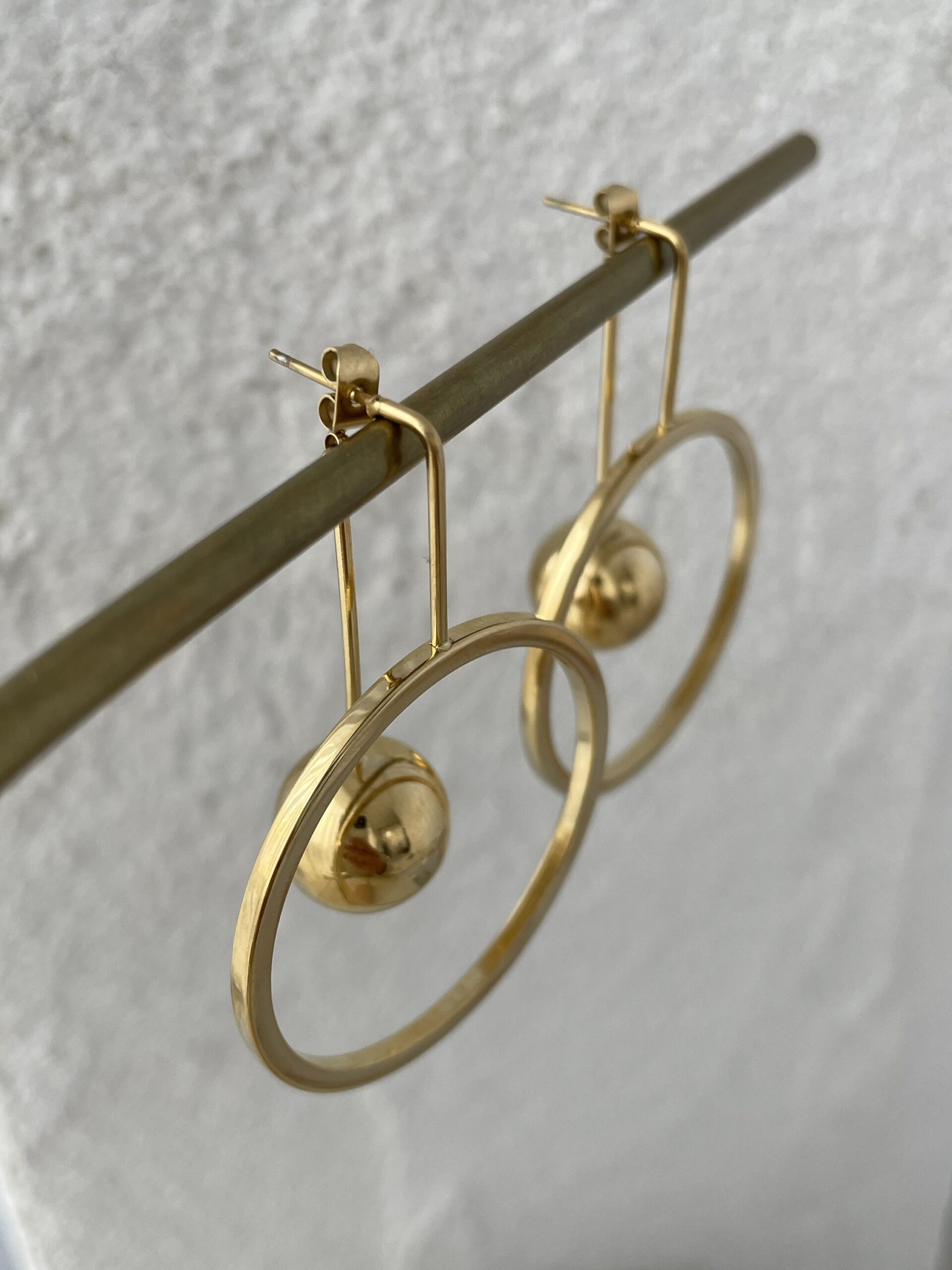 Çelik Halka Tasarım Top Detay Gold Küpe
