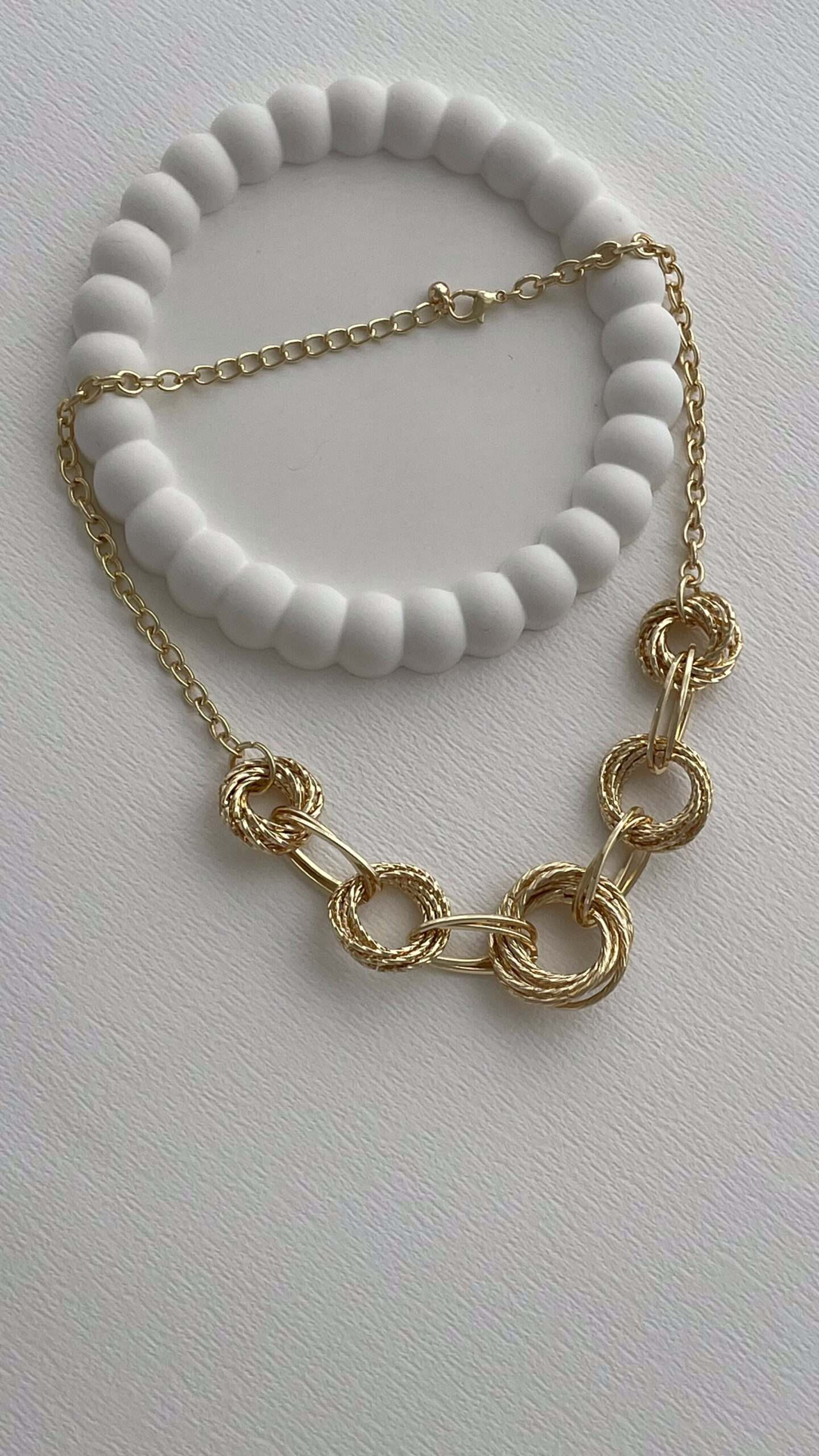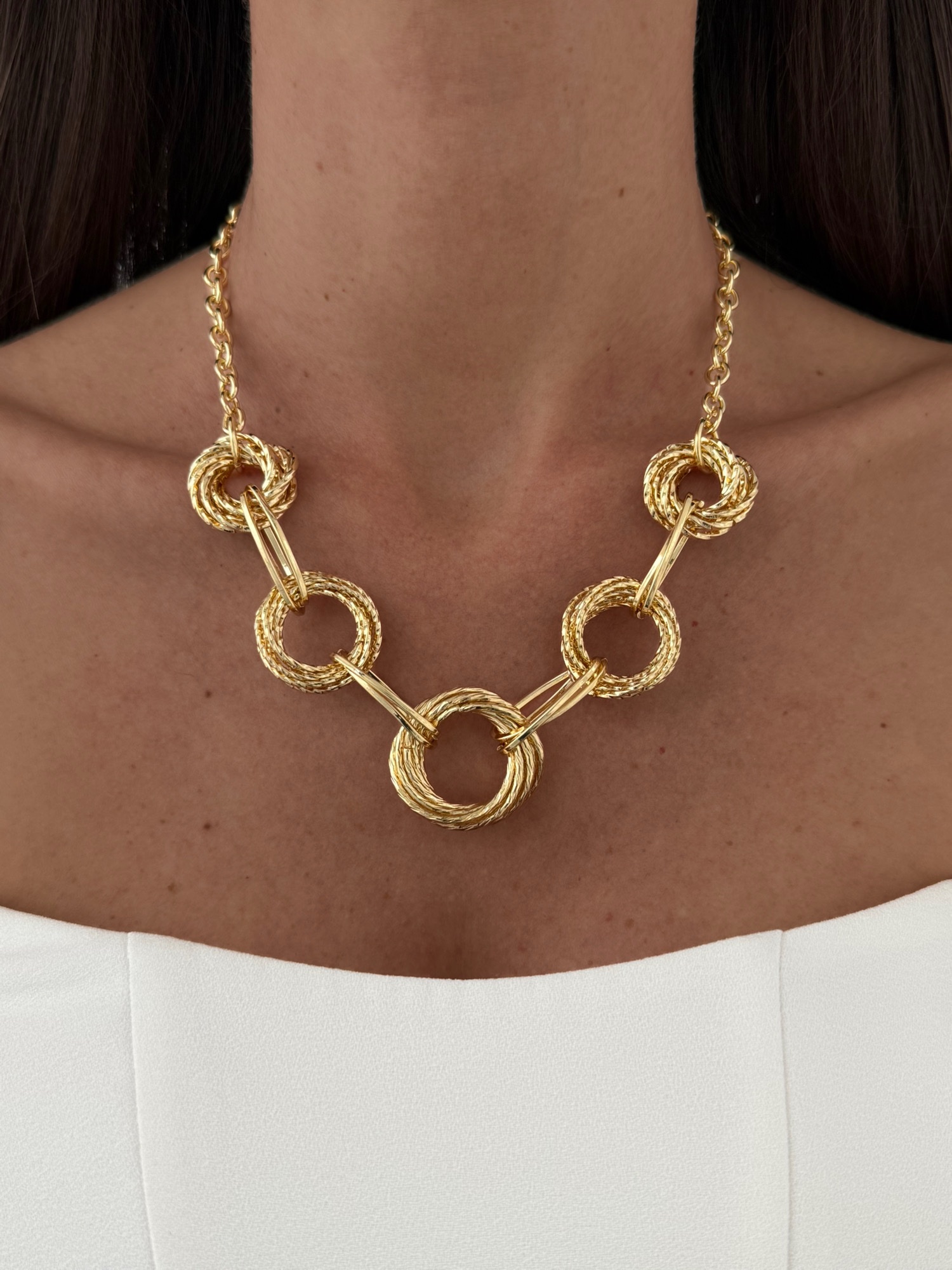 Özel Seri İç İçe Halka Detay Gold Kolye