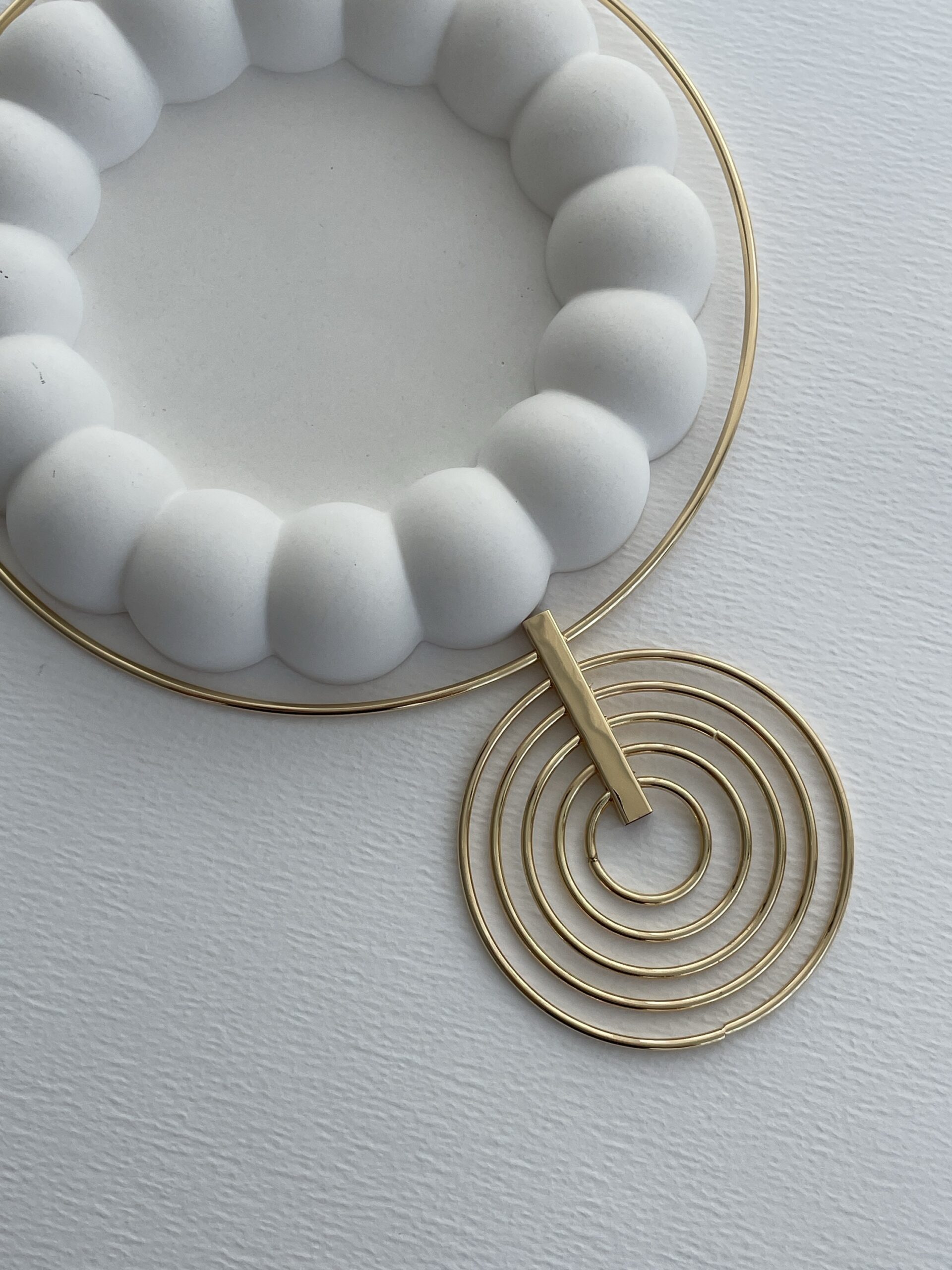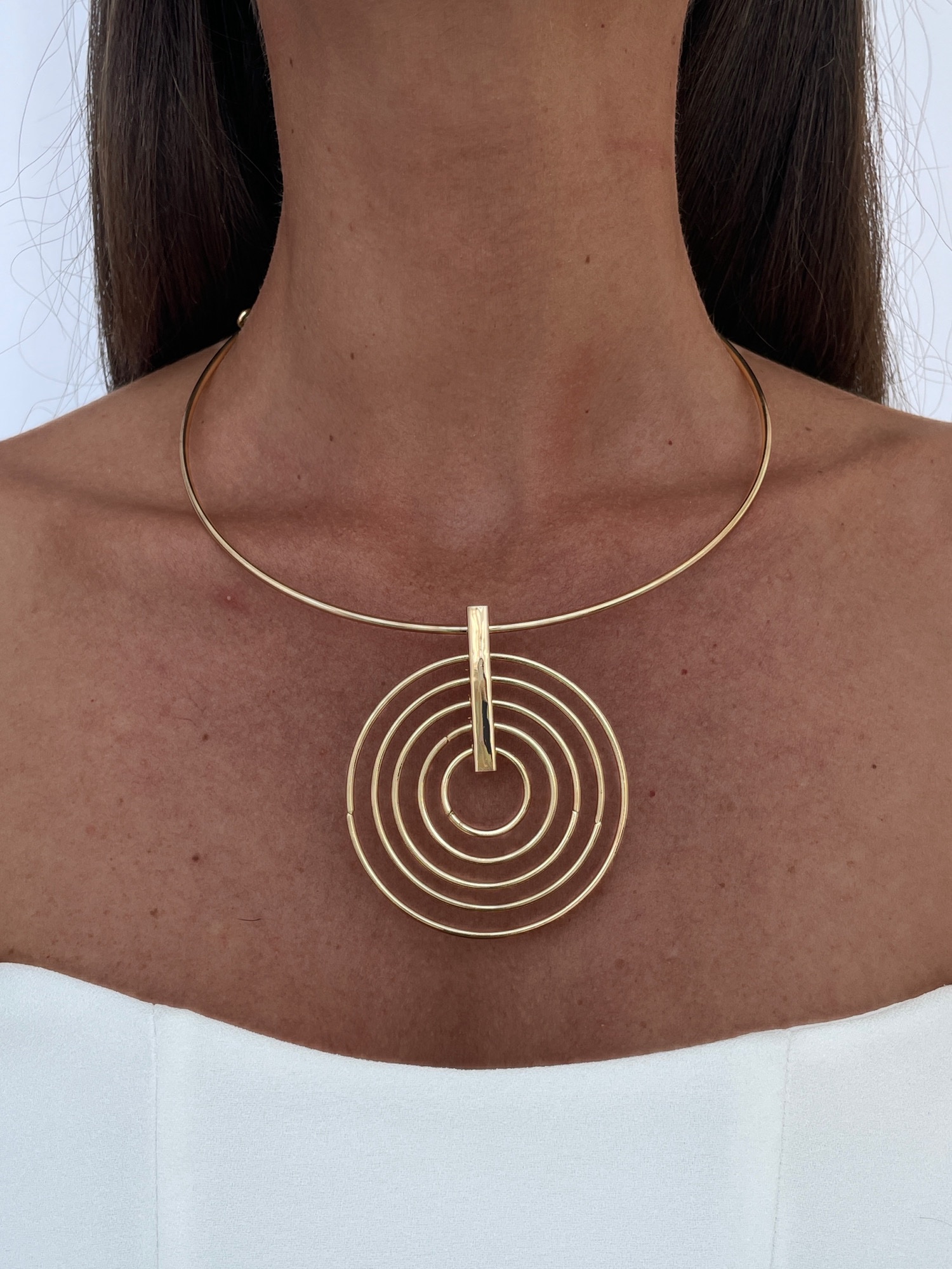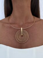 Özel Seri İç İçe Halka Tasarım Gold Choker Kolye
