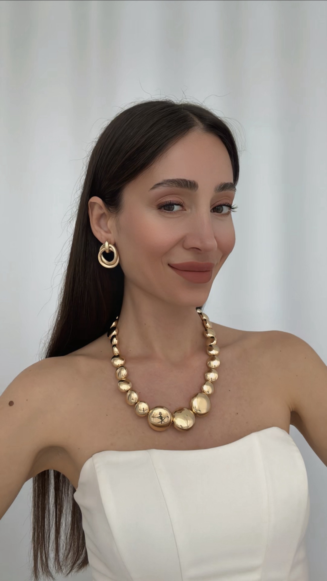 Özel Seri İç İçe Halka Tasarım Gold Küpe