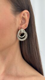 Özel Seri İç İçe Halka Topçuk Detay Gümüş Küpe