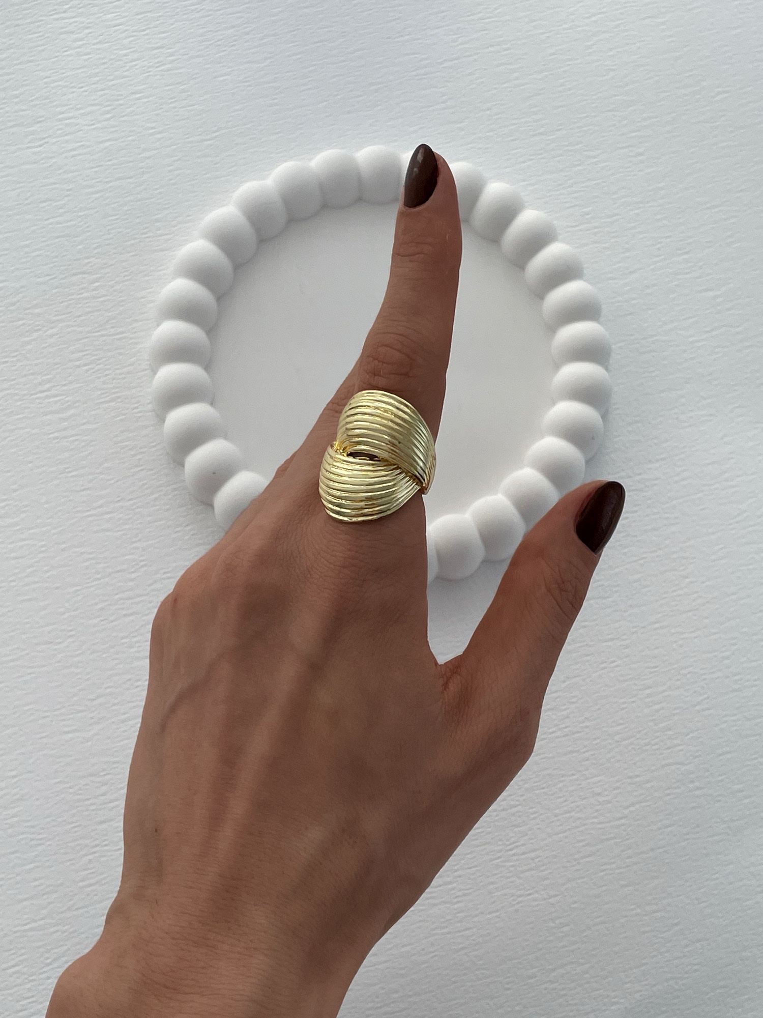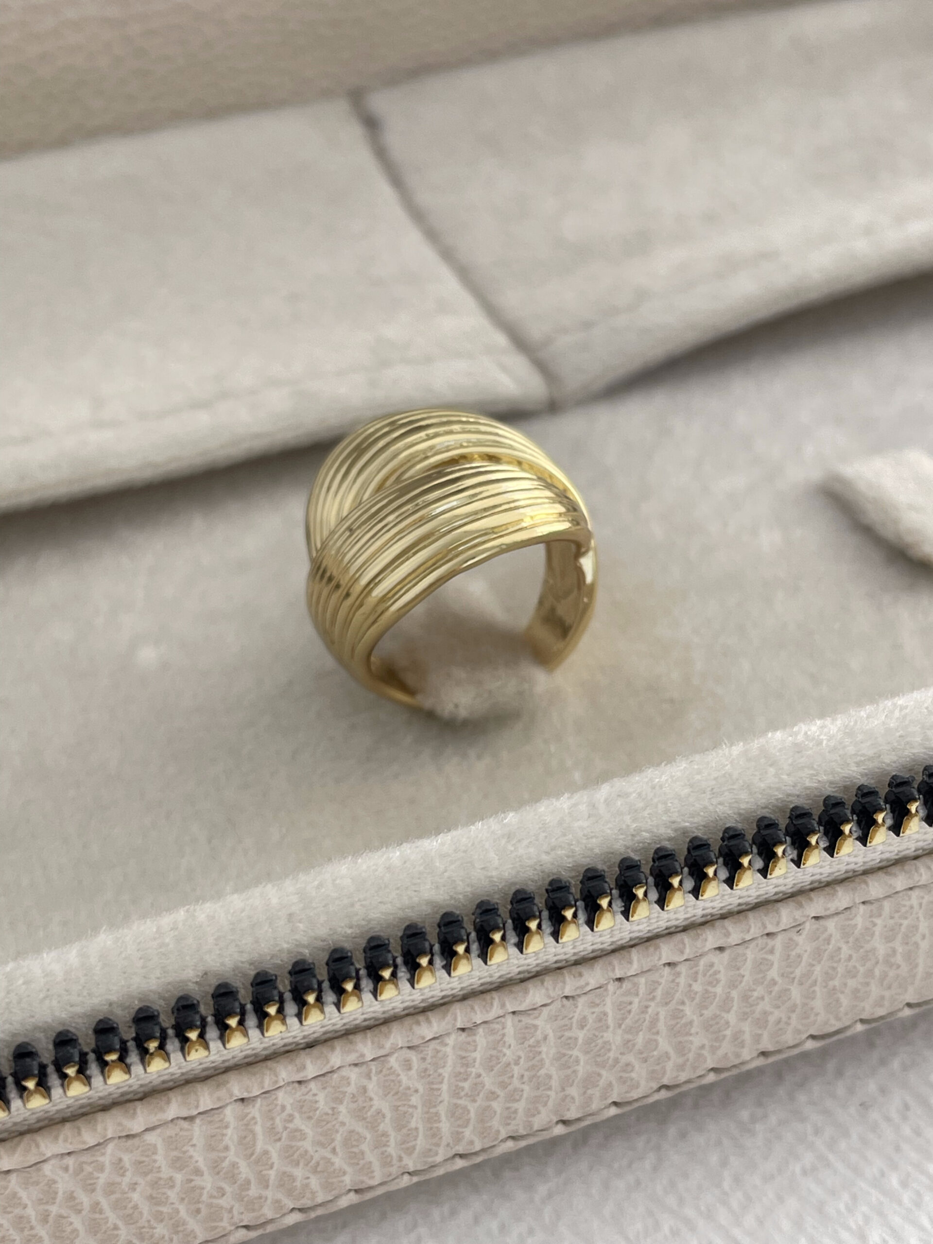 Özel Seri İç İçe Tırtık Tasarım Gold Yüzük