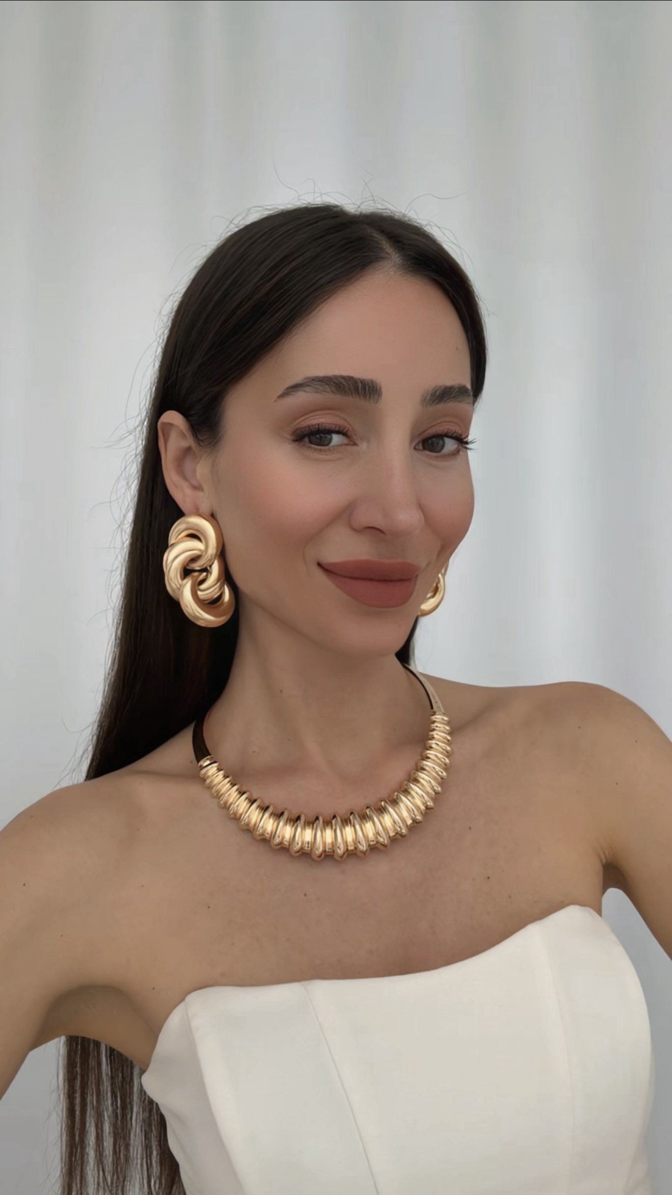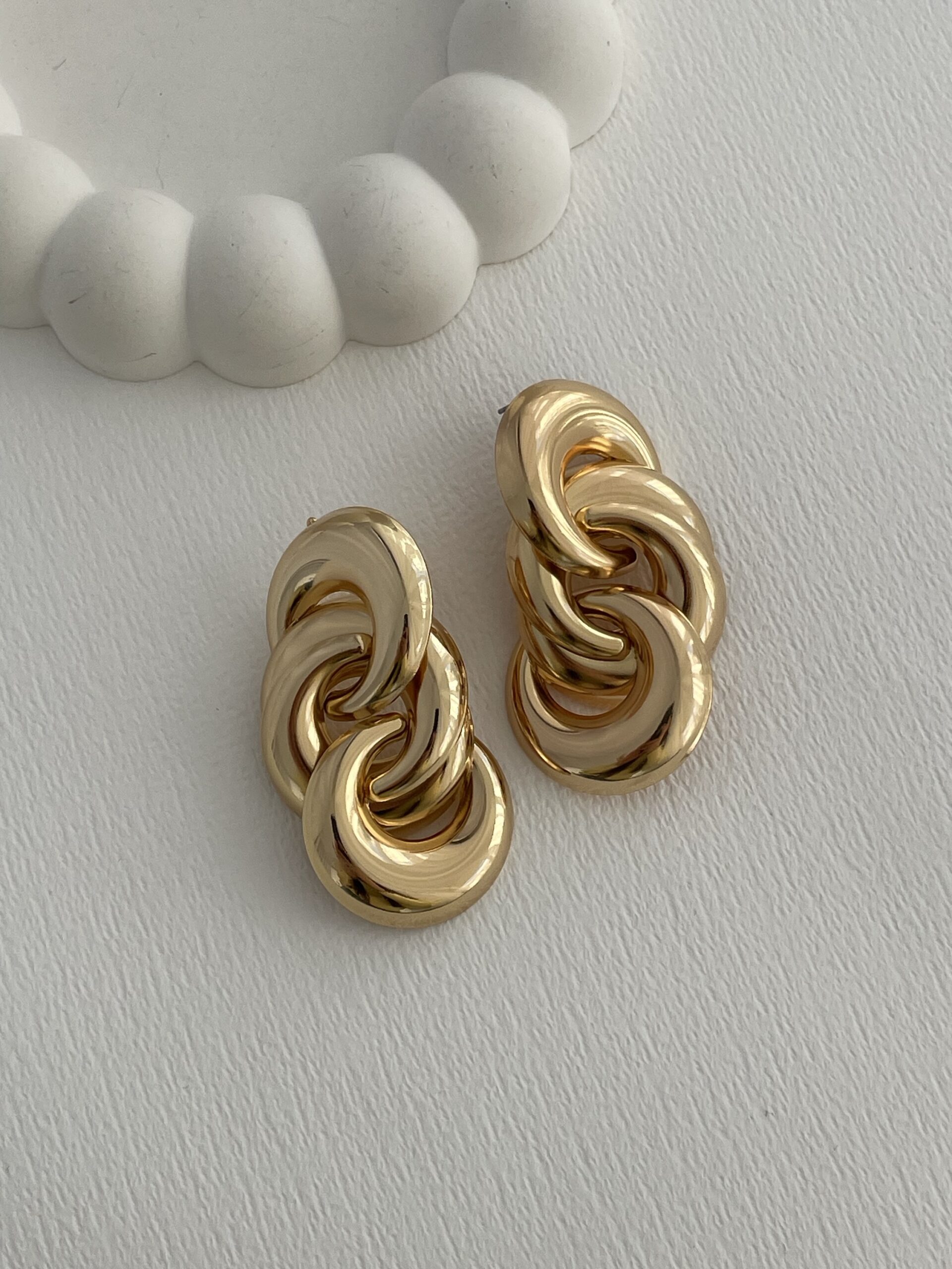 Özel Seri İç İçe Üç Halka Tasarım Gold Küpe