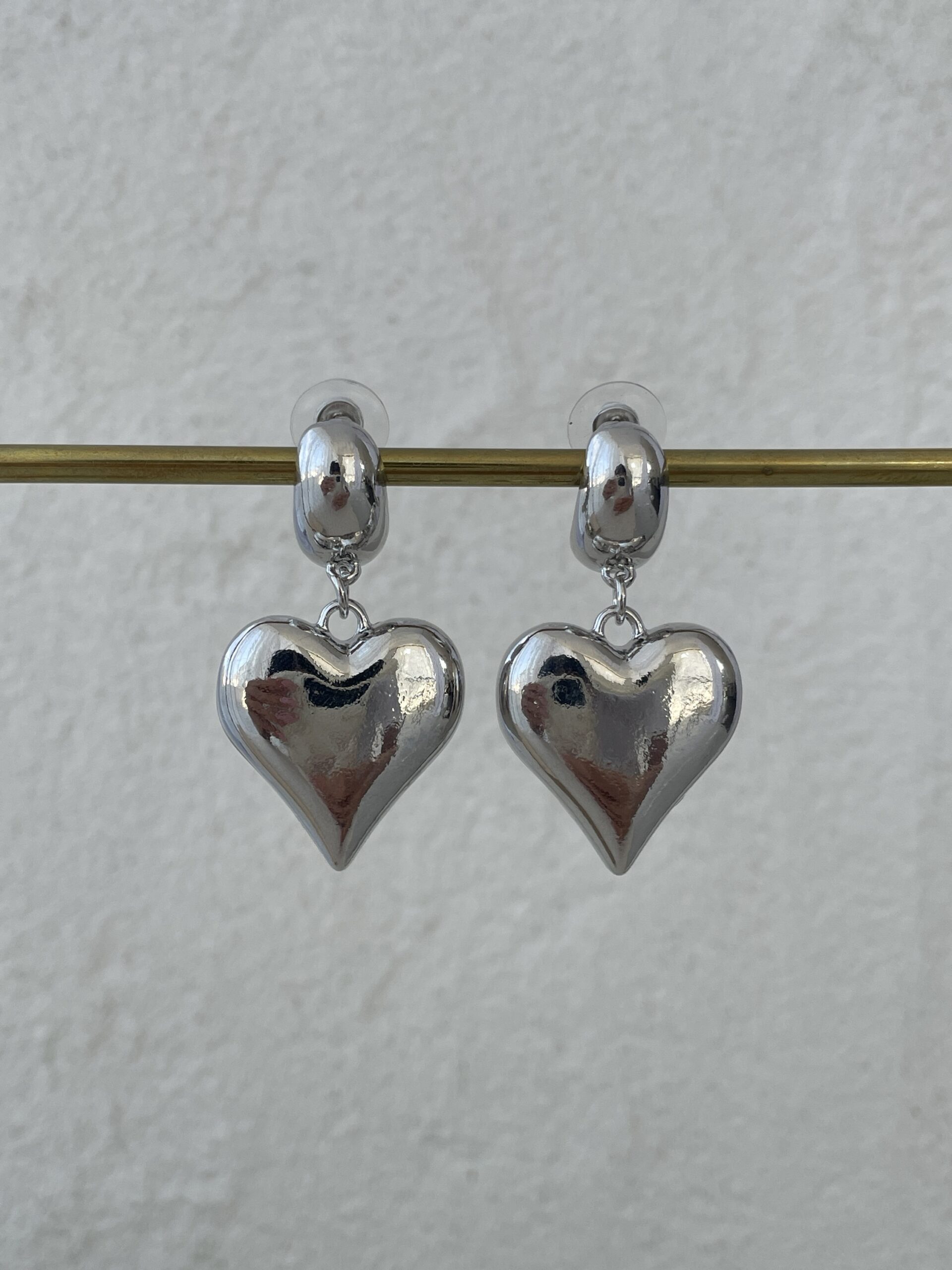 Özel Seri İçi Dolu Gümüş Kalp Tasarım Küpe