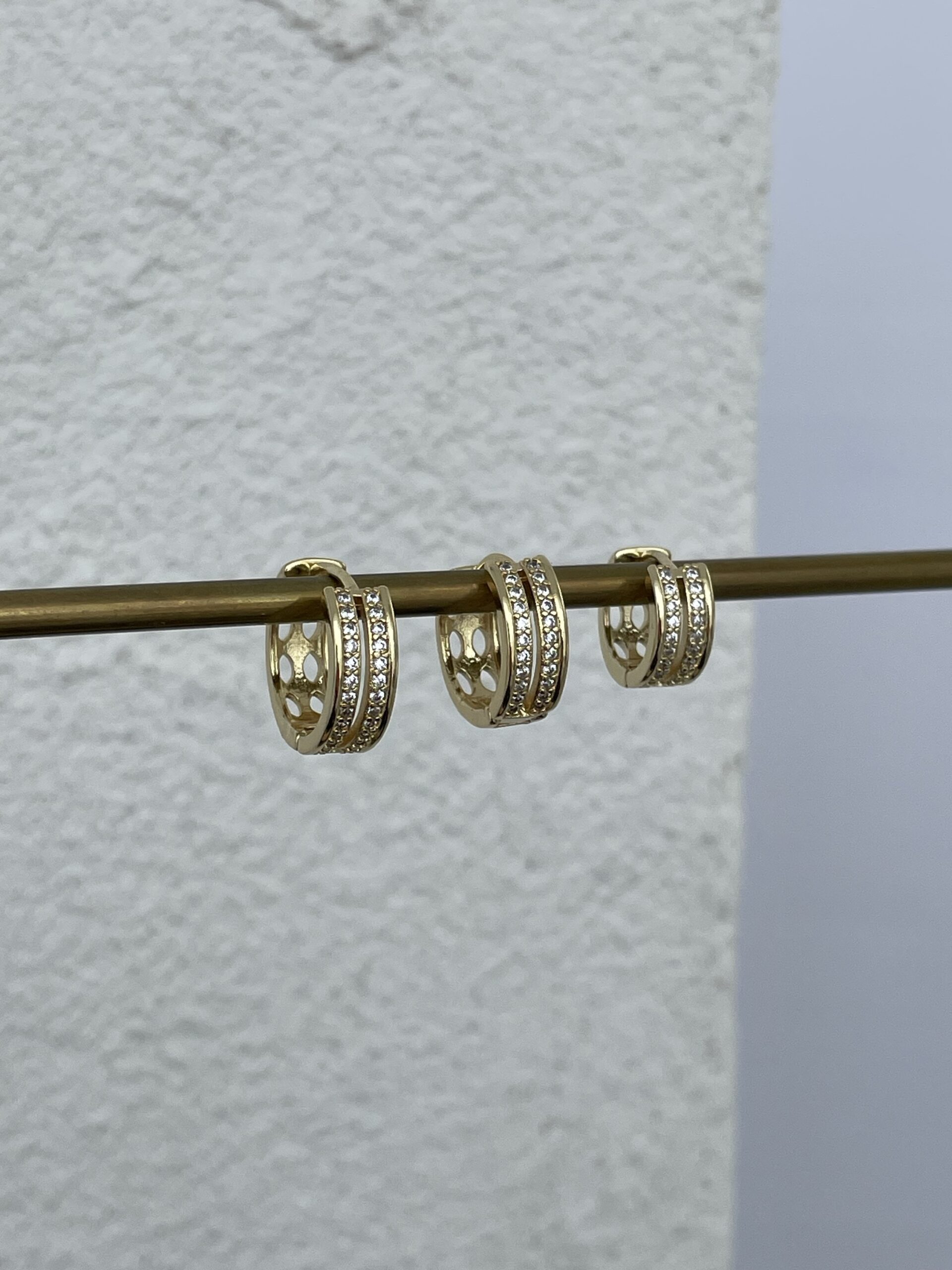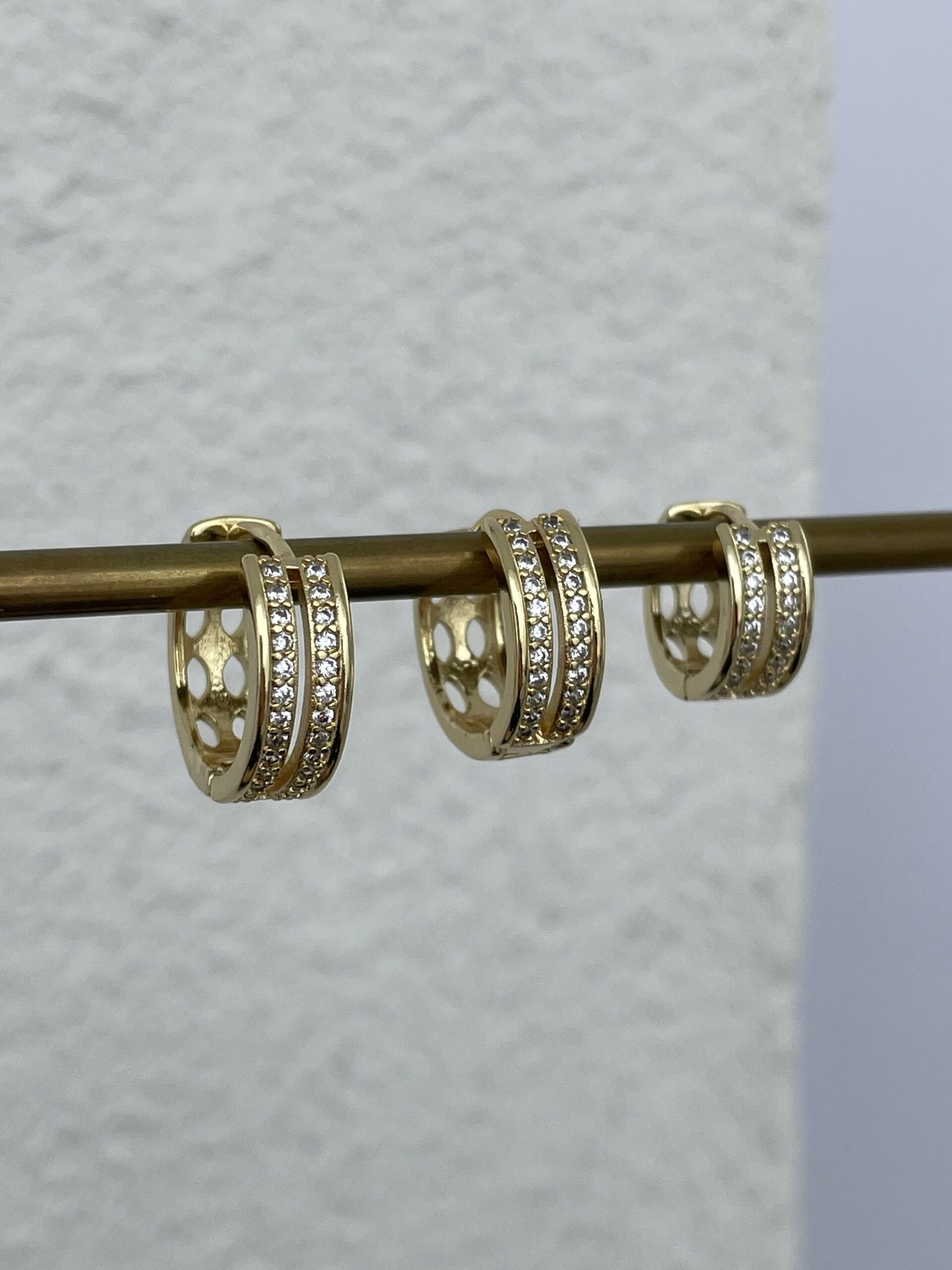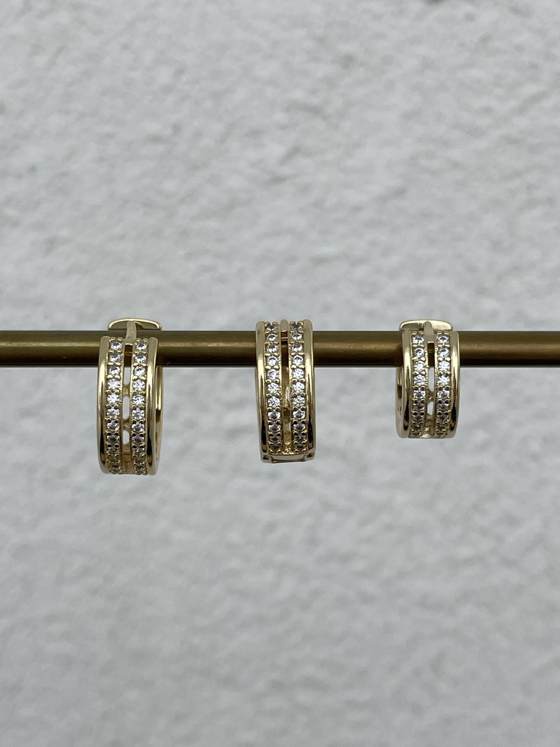 Özel Seri İki Sıra Zirkon Taşlı Üçlü Halka Gold Küpe Seti