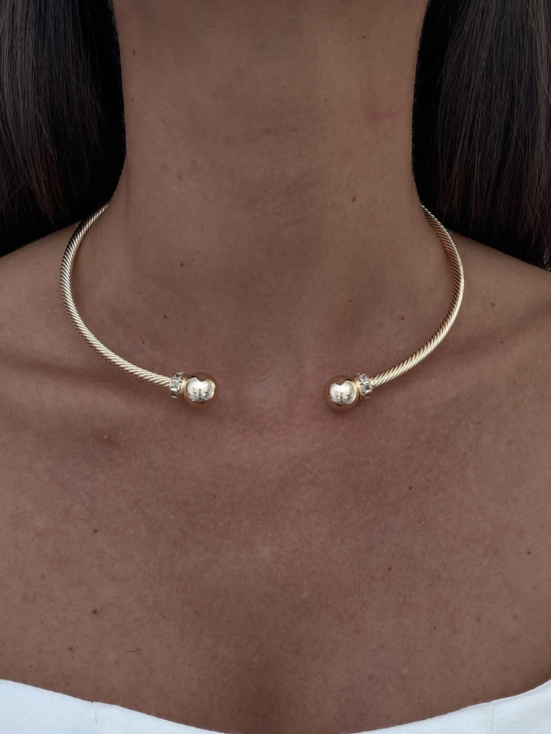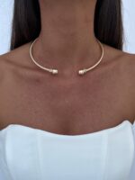 Özel Seri İki Ucu Zirkon Taşlı Gold Choker Kolye