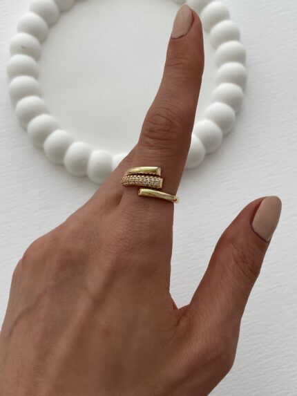 Özel Seri İkili Baget Taş Tasarım Ayarlanabilir Gold Yüzük