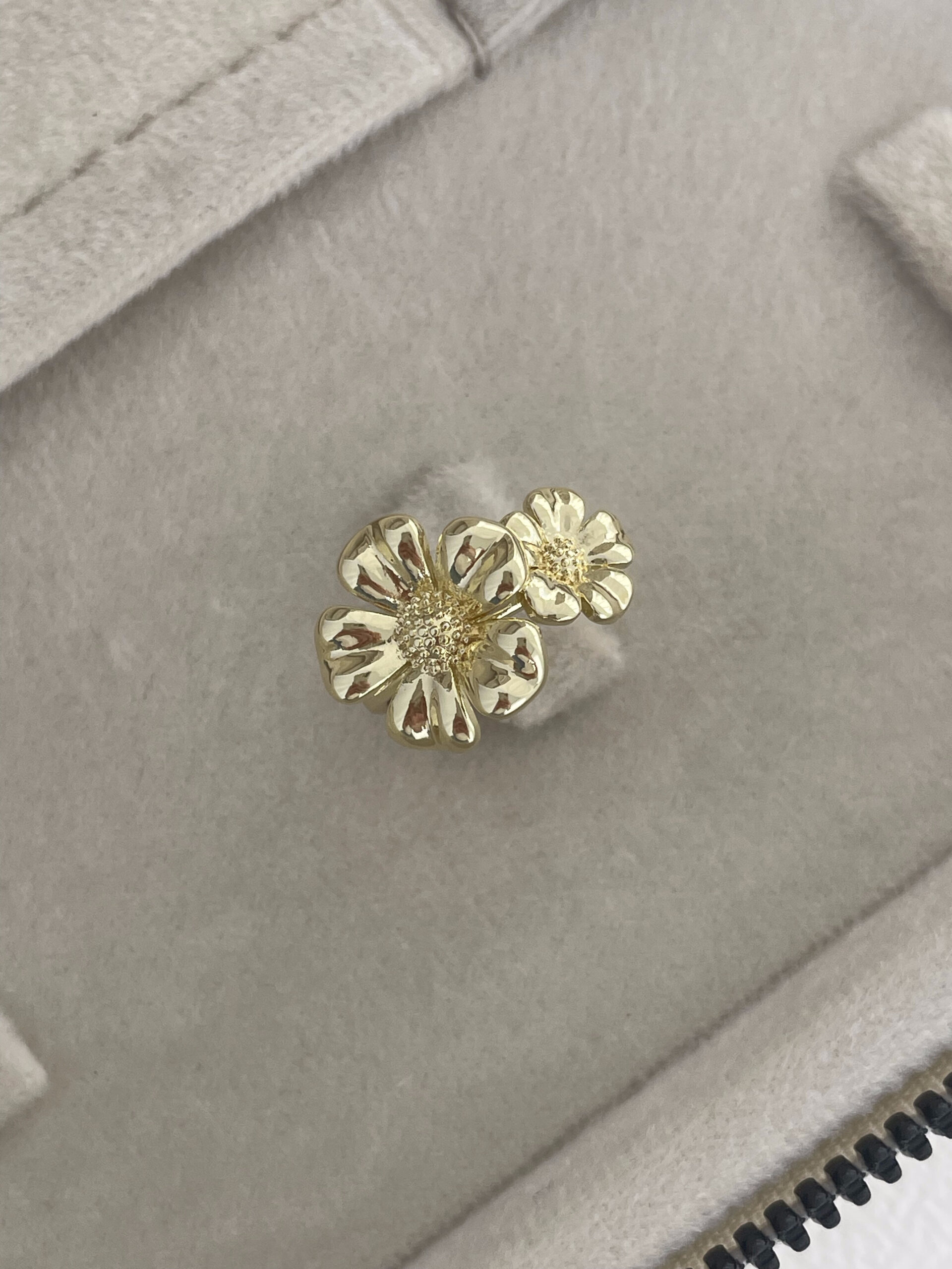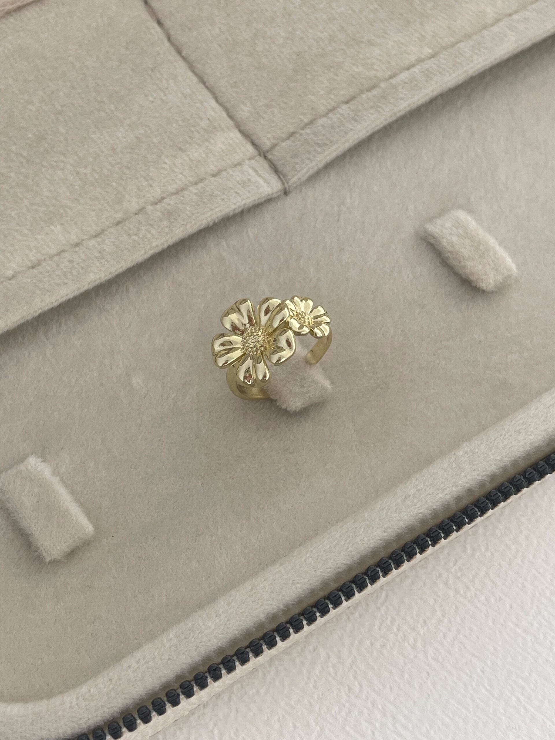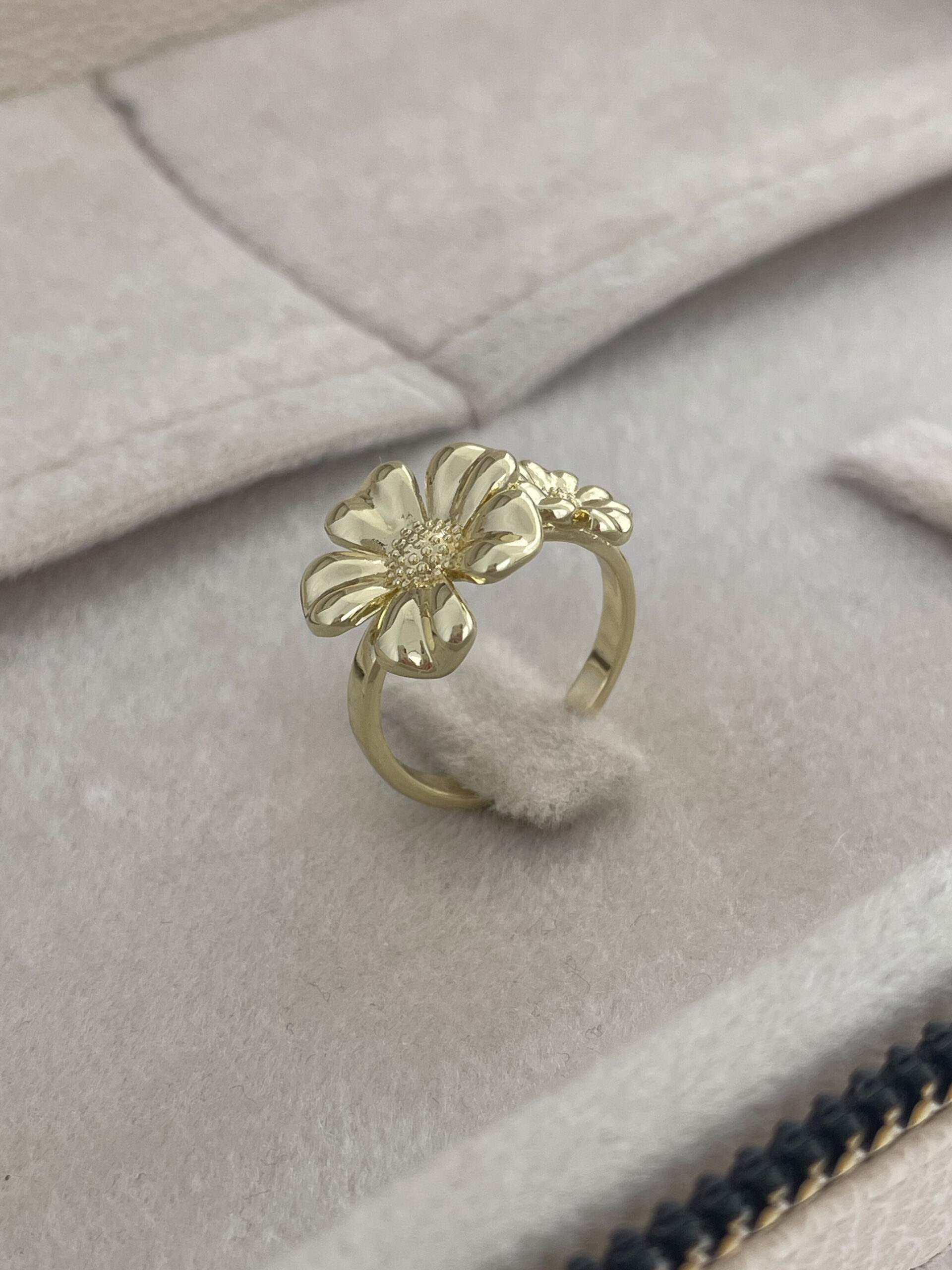 Özel Seri İkili Çiçek Tasarım Ayarlanabilir Gold Yüzük