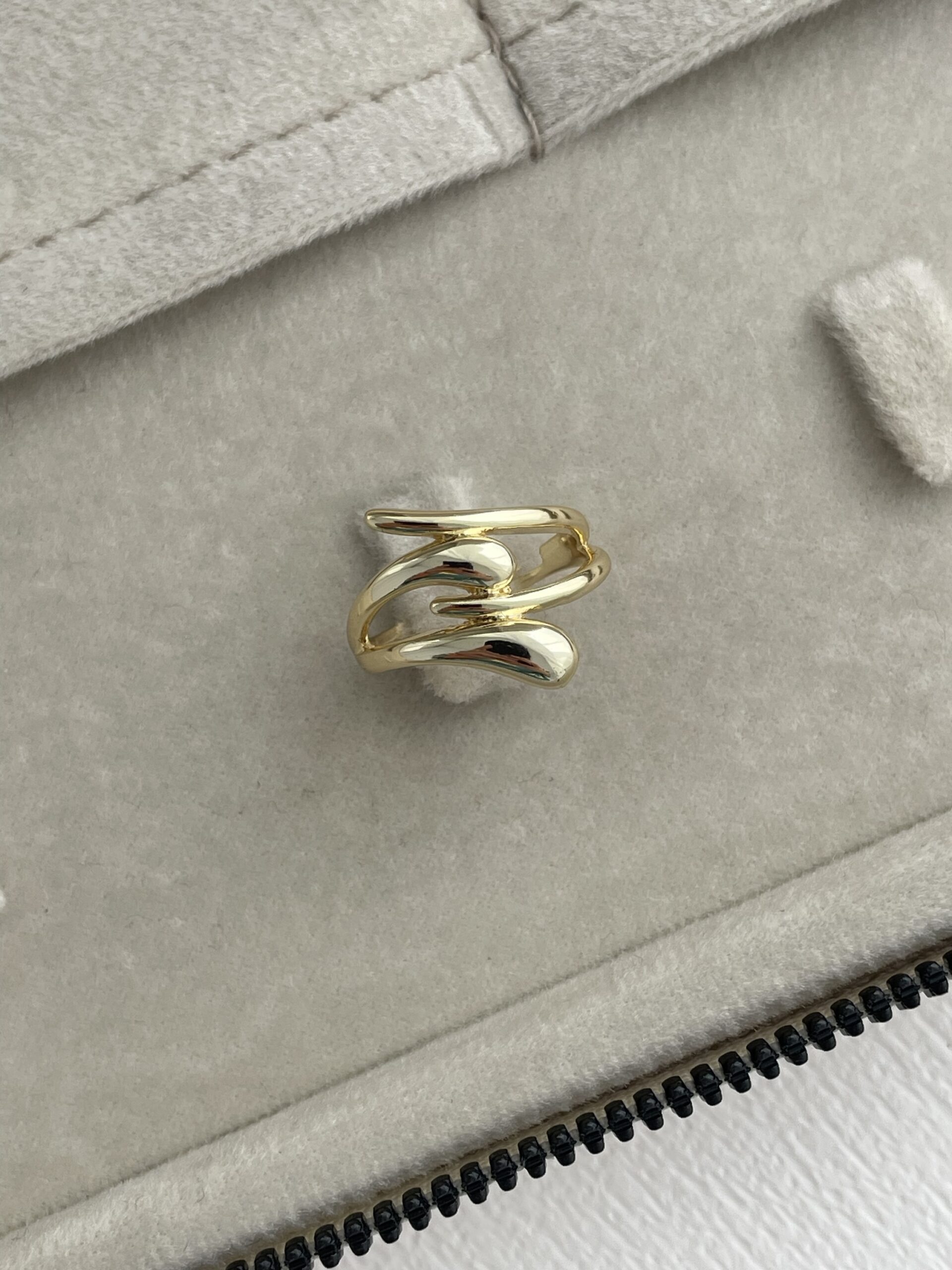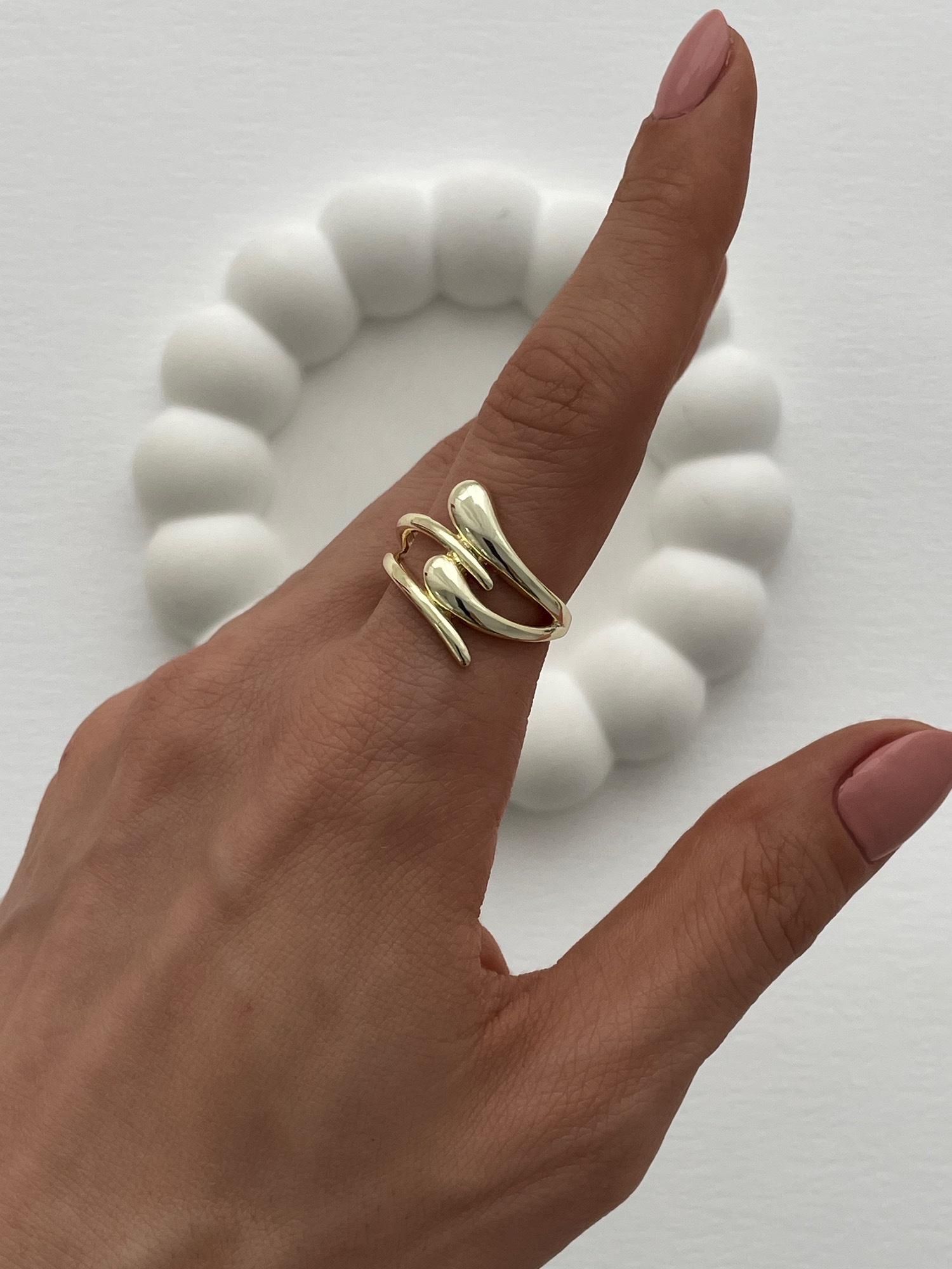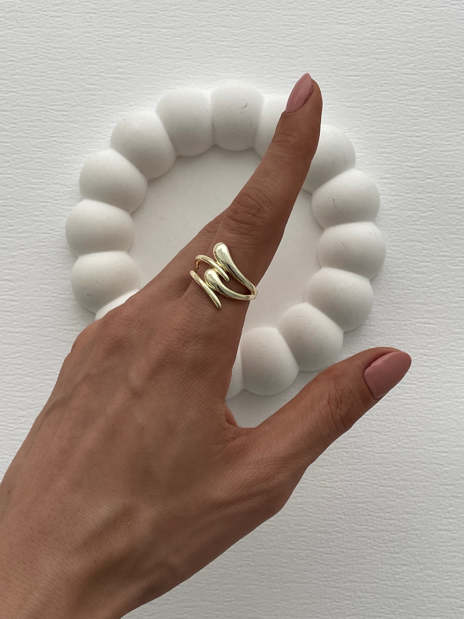Özel Seri İkili Damla Tasarım Ayarlanabilir Gold Yüzük