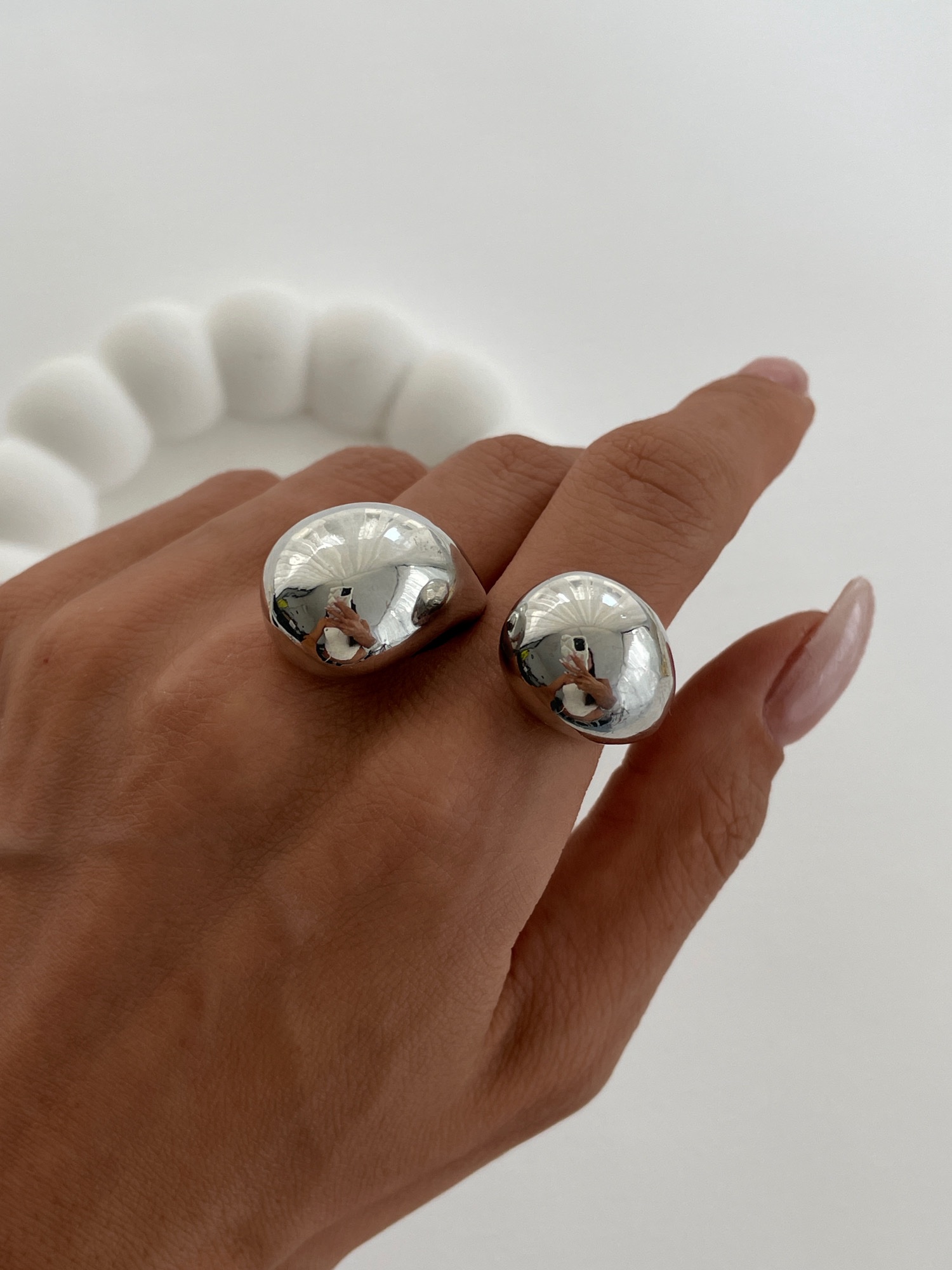 Özel Seri İkili Damla Tasarım Büyük Ayarlanabilir Gümüş Yüzük