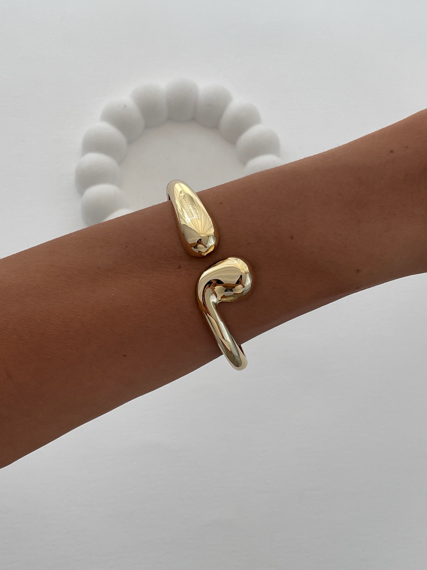 Özel Seri İkili Damla Tasarım Gold Kelepçe Bileklik