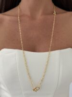 Özel Seri İkili Düğme Tasarım Gold Kolye