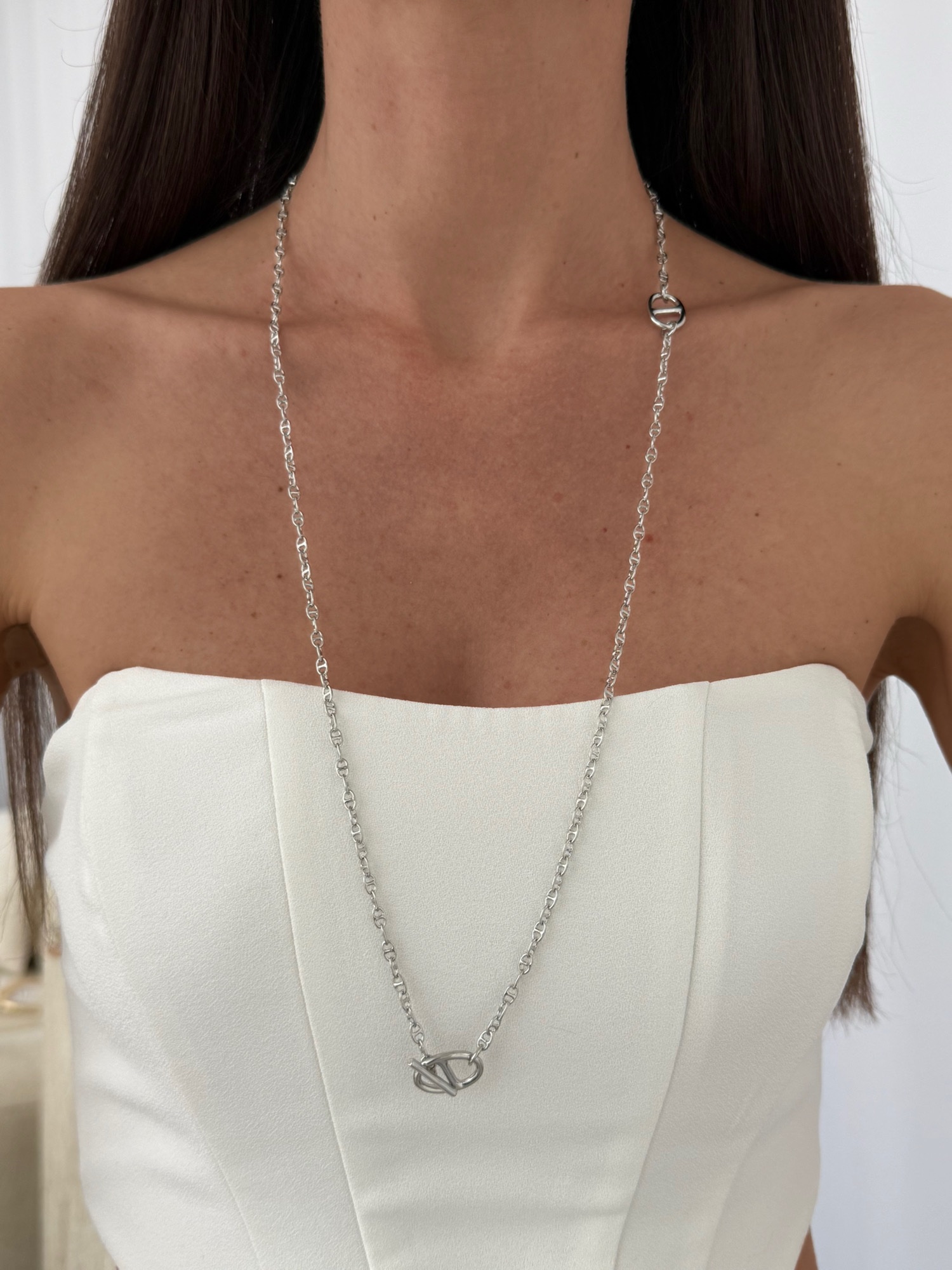 Özel Seri İkili Düğme Tasarım Gümüş Kolye