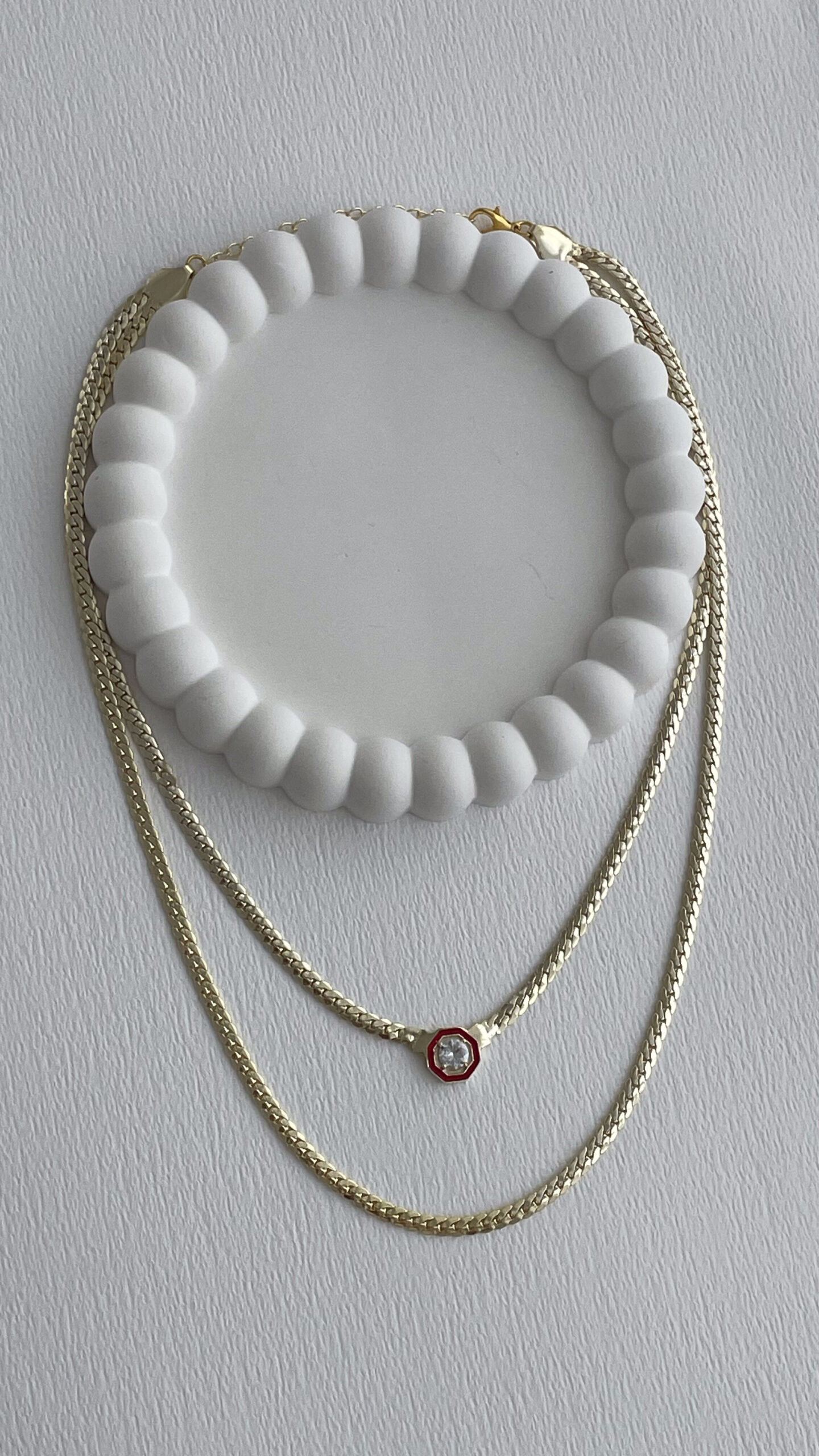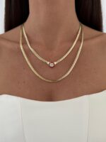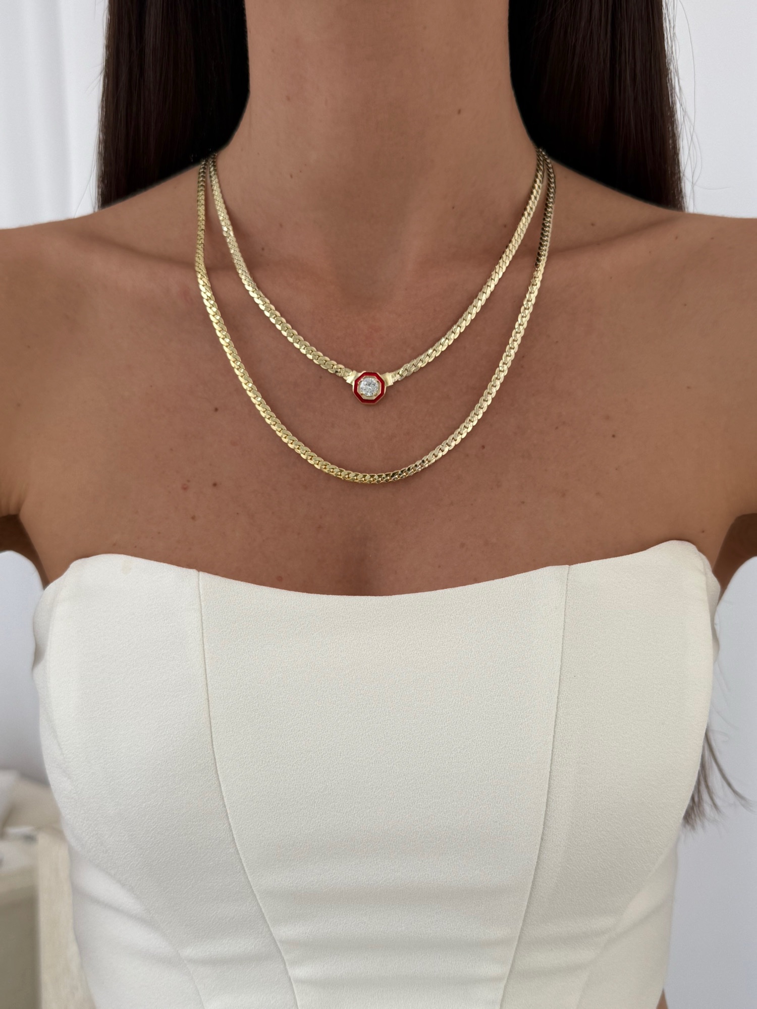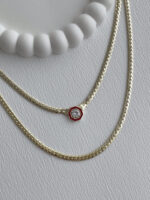 Özel Seri İkili Ezme Gurmet Zincir Kırmızı Çağla Model Gold Kolye